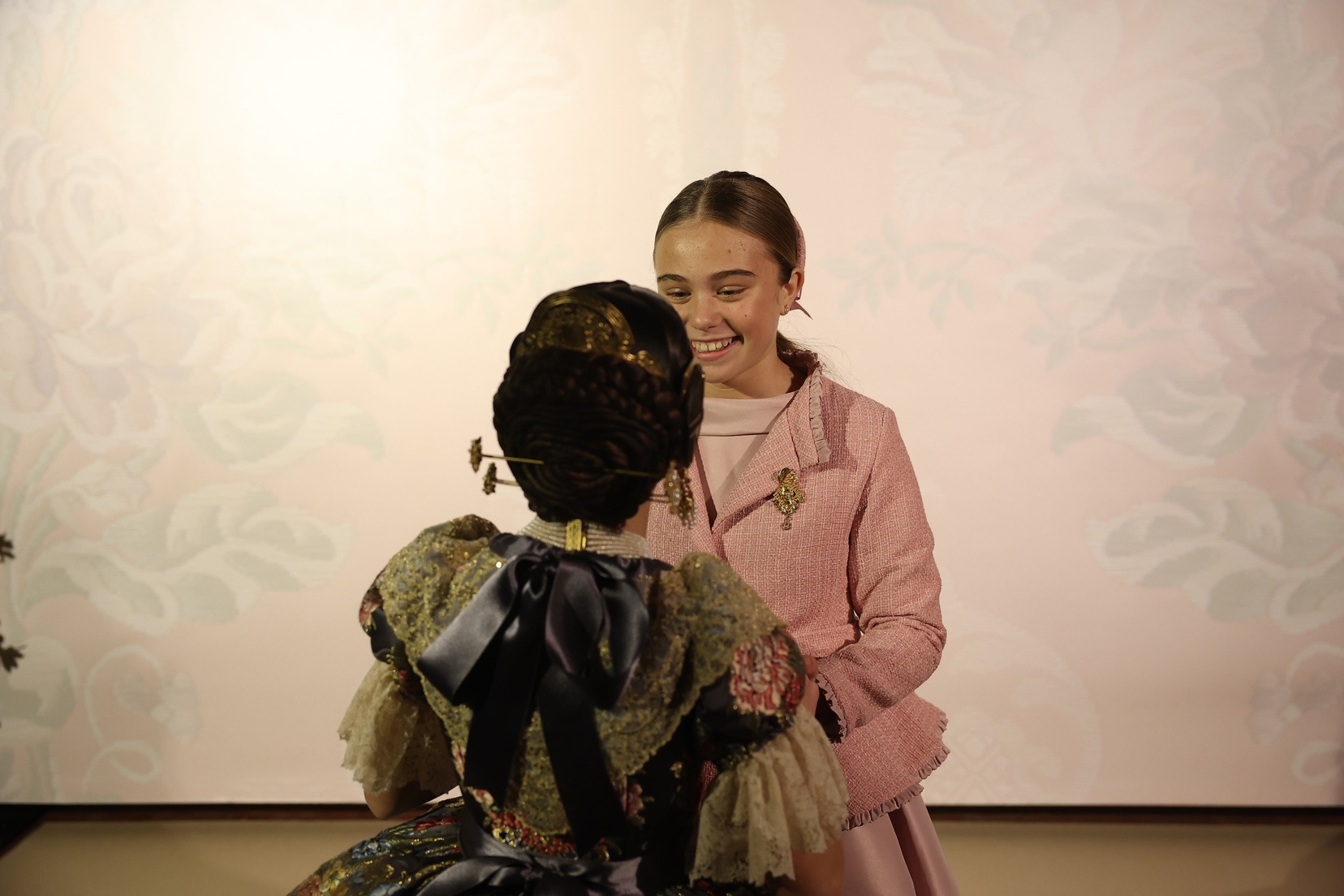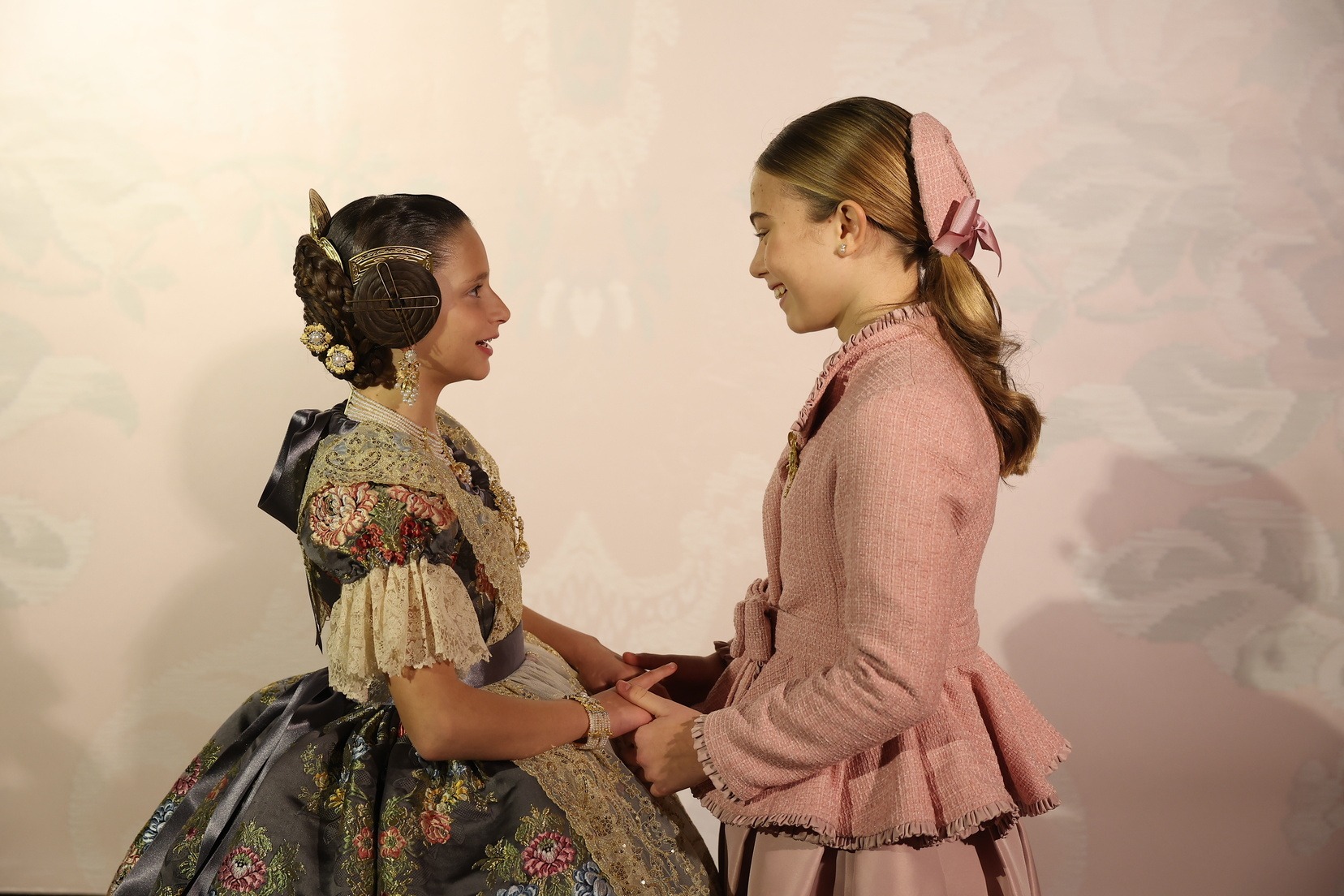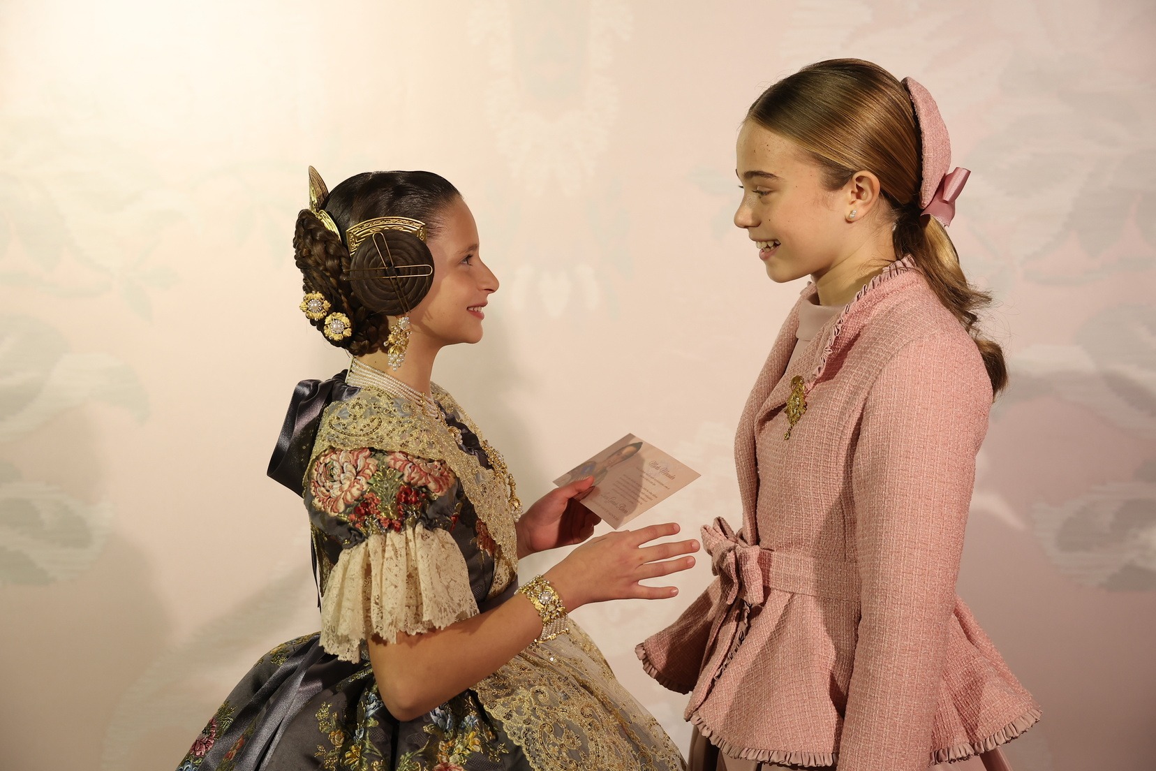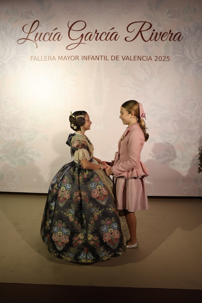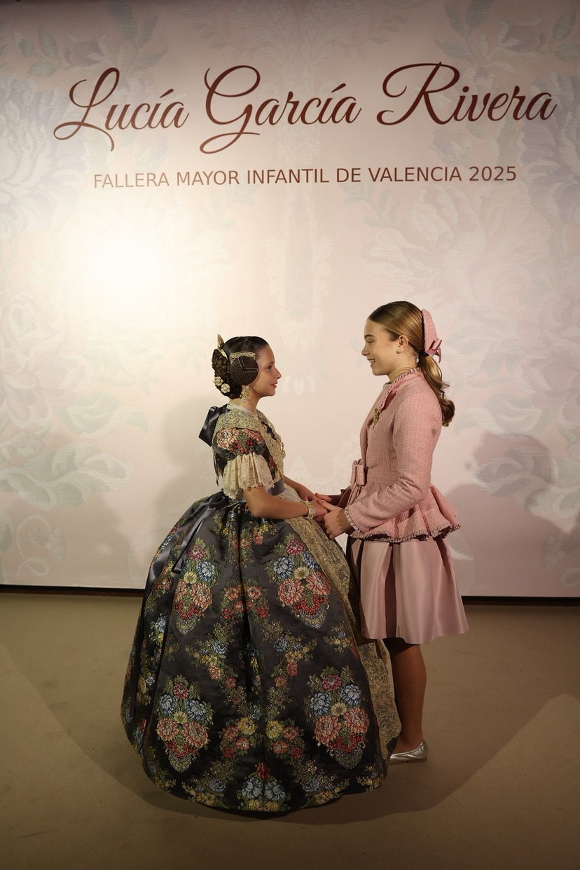 El acto ha contado también con la presencia de Marta Mercader Roig, la actual Fallera Mayor Infantil de Valencia, con quien Lucía ha compartido un momento que ha simbolizado el relevo entre ejercicios y la continuidad de la representación infantil dentro de la fiesta.