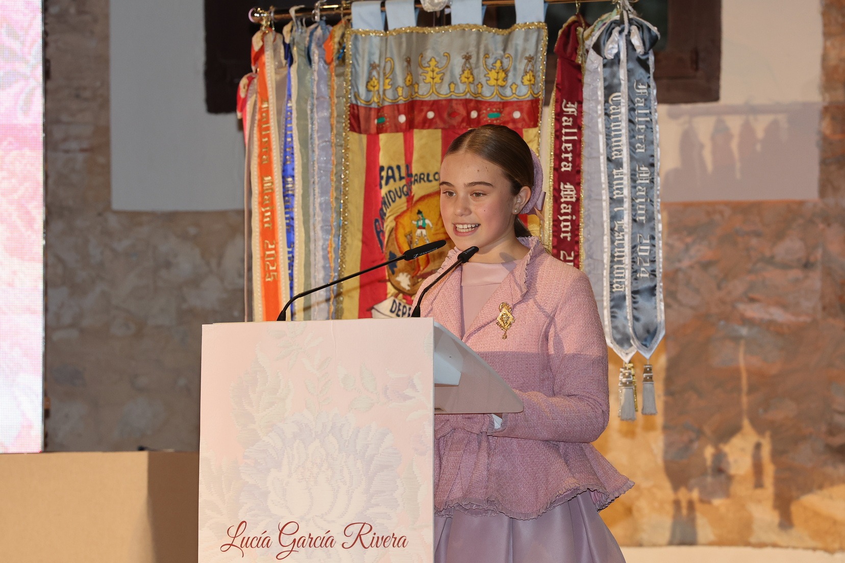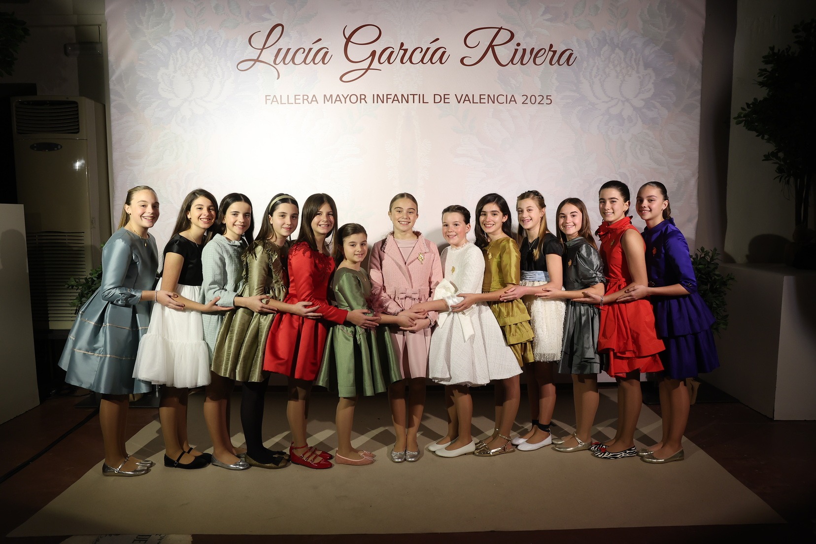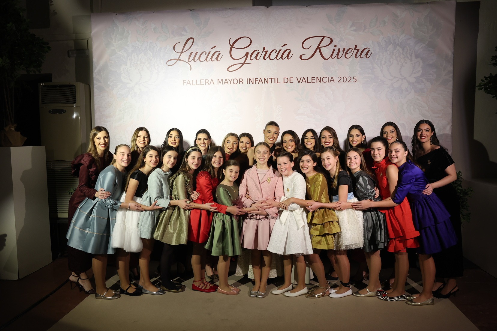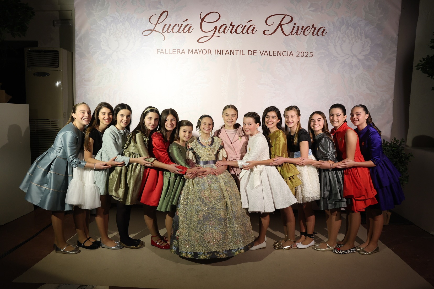 El acto ha contado también con la presencia de Marta Mercader Roig, la actual Fallera Mayor Infantil de Valencia, con quien Lucía ha compartido un momento que ha simbolizado el relevo entre ejercicios y la continuidad de la representación infantil dentro de la fiesta.