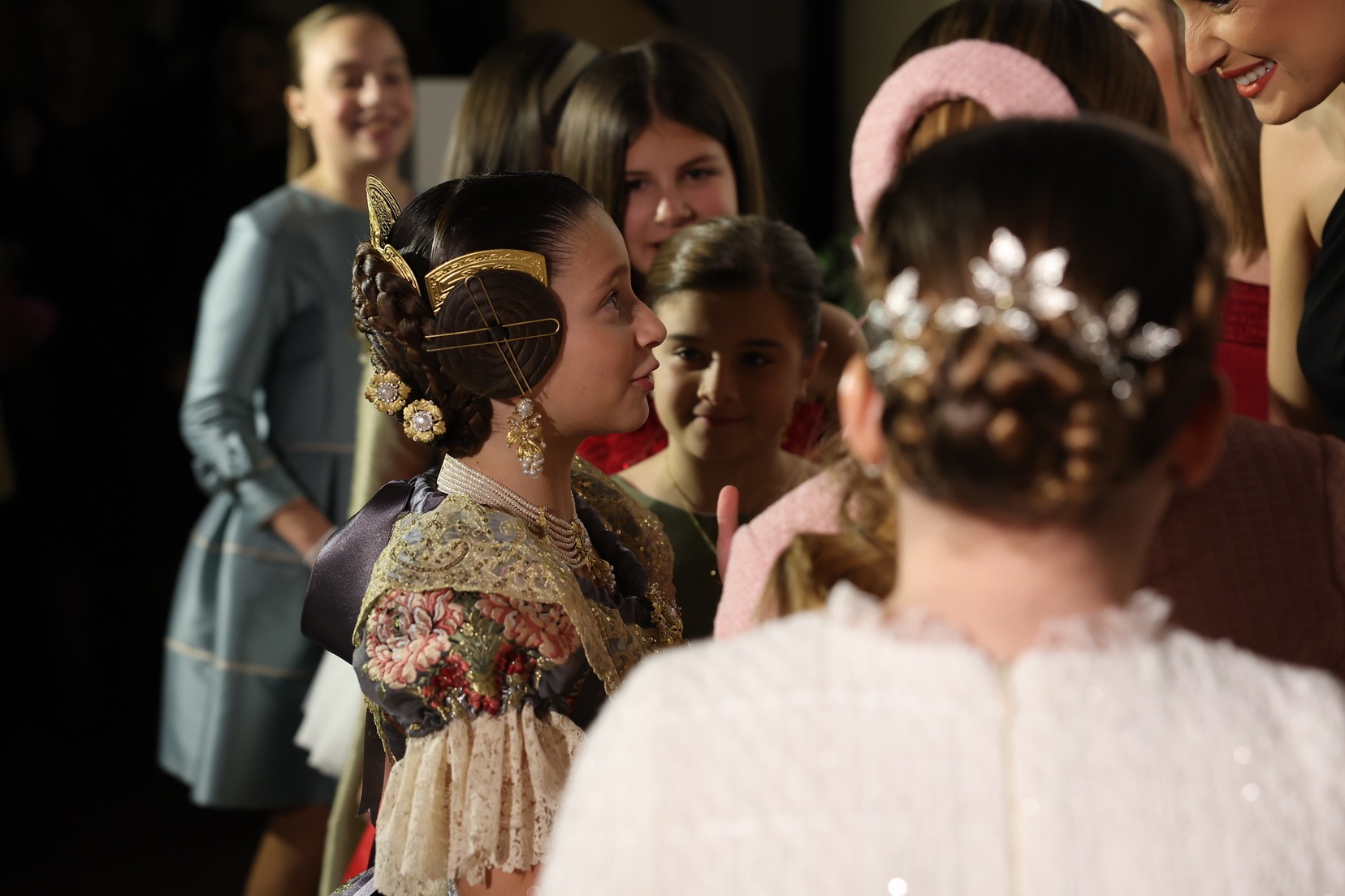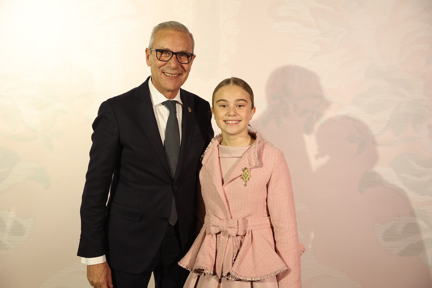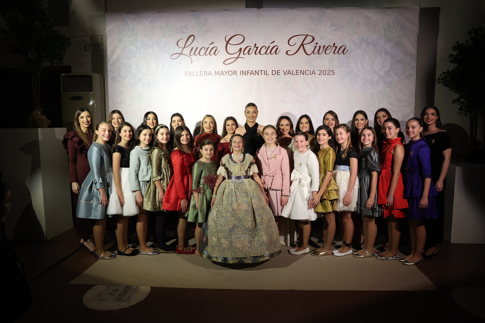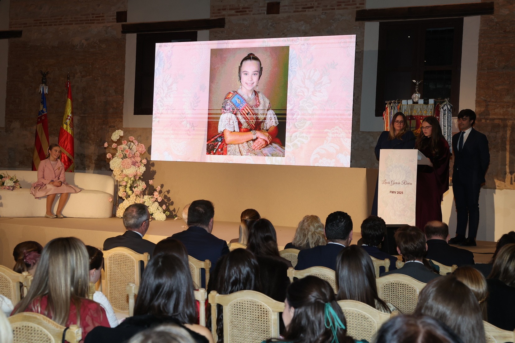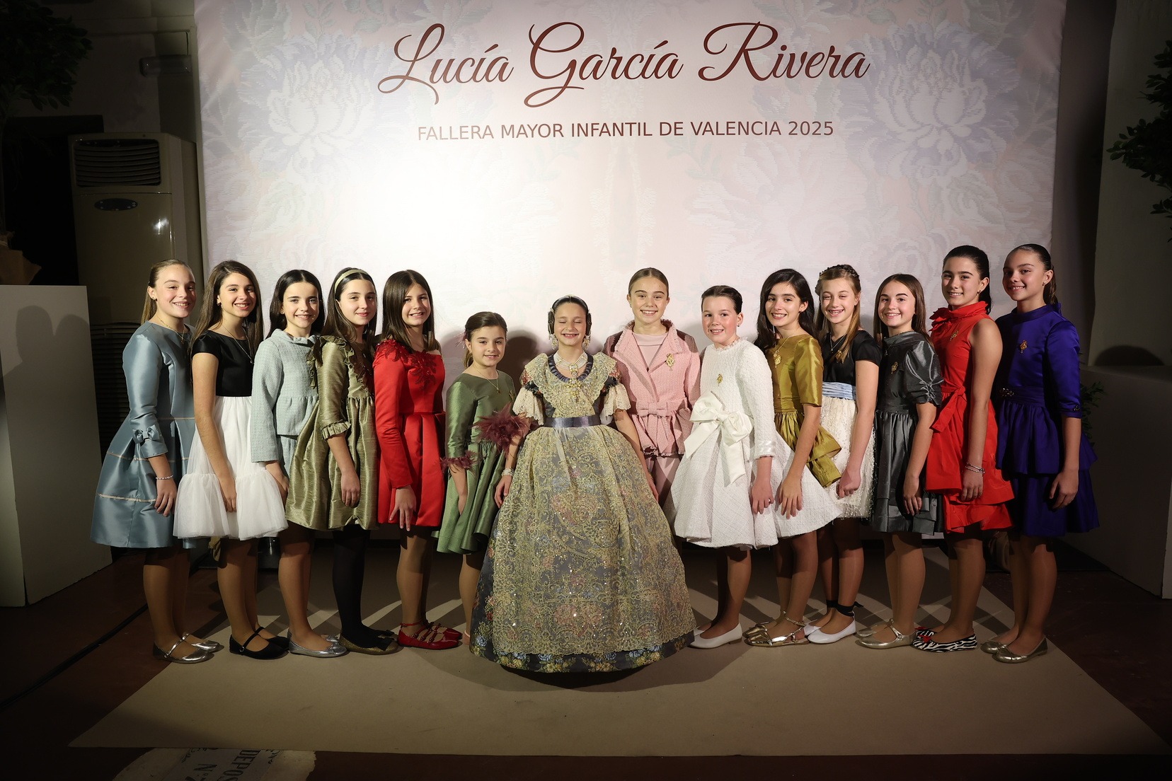 El acto ha contado también con la presencia de Marta Mercader Roig, la actual Fallera Mayor Infantil de Valencia, con quien Lucía ha compartido un momento que ha simbolizado el relevo entre ejercicios y la continuidad de la representación infantil dentro de la fiesta.