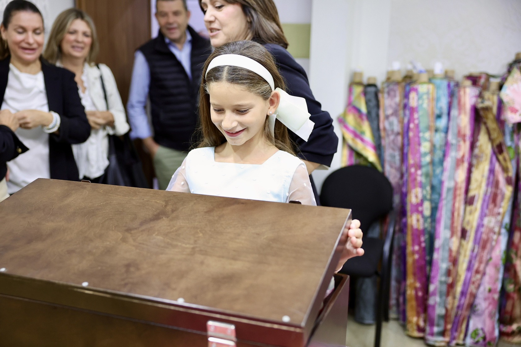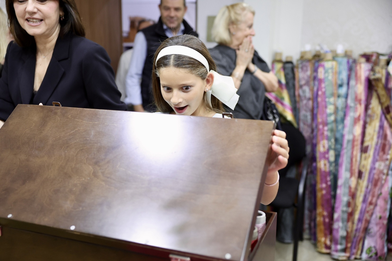 A primera hora de la mañana, la Fallera Mayor de Valencia, Carmen Prades, junto con sus padres y el secretario general, Nico Garcés, han estado junto a los profesionales del telar para elegir tanto su primer traje oficial como el segundo. A continuación, ha sido el turno de Marta Mercader, Fallera Mayor Infantil de Valencia, que junto a sus padres y a Nico ha elegido su espolín oficial.
