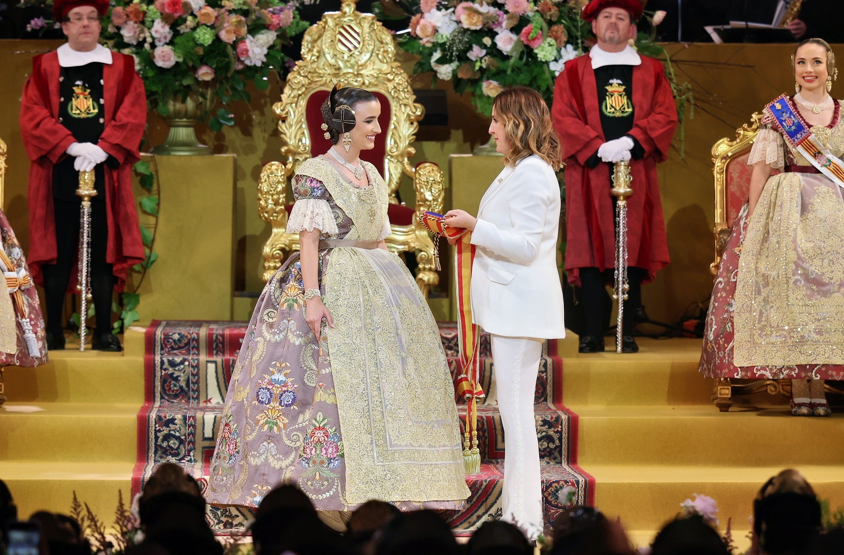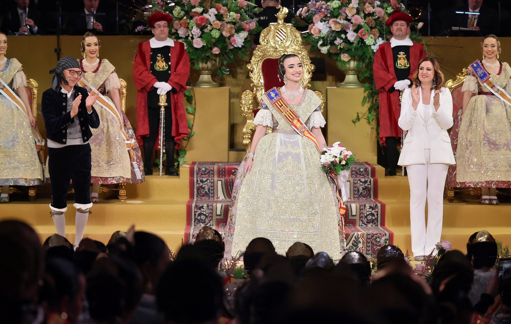 Con las solemnes palabras “Valencians i valencianes. De naixement o dret. Estants o habitants de la ciutat de València. És hora de que els fallers vos presentem a la nostra Regina per a rendir-la els honors que la seua distinció mereix. Pel conjunt de virtuts que atresora i que la fan dignísima portadora de nostra més alta representació, retem homenatge d’amor i pleitesia a la Fallera Major de València…».” se ha dado paso a uno de los momentos más esperados del calendario fallero: la presentación oficial de Carmen Prades Gil como Fallera Mayor de Valencia.
