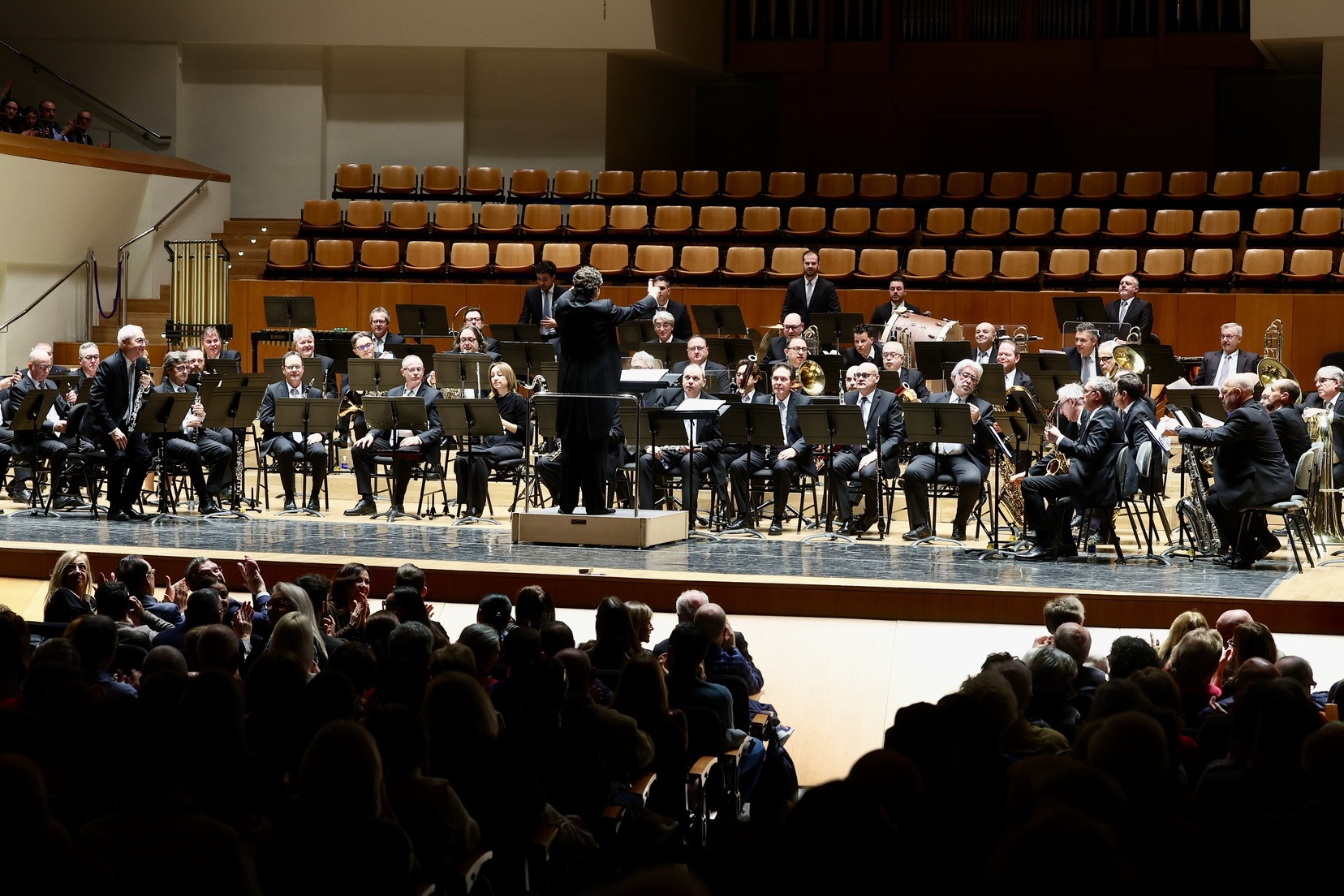 La Sala Iturbi del Palau de la Música ha acogido esta mañana la presentación de los pasodobles dedicados a las Falleras Mayores de Valencia, Carmen Prades y Marta Mercader, en un concierto interpretado por la Banda Sinfónica Municipal de Valencia dirigido por Cristóbal Soler, que bajo el nombre de «Pasodobles y valses» ha fusionado la tradición fallera con el repertorio sinfónico internacional. Además, ha contado con la colaboración del alumnado del Conservatorio Superior de Danza de Valencia «Nacho Duato», quienes han dado vida visual a piezas icónicas como el «Vals de las flores» de Tchaikovsky o el preludio de «El Bateo» de Federico Chueca.