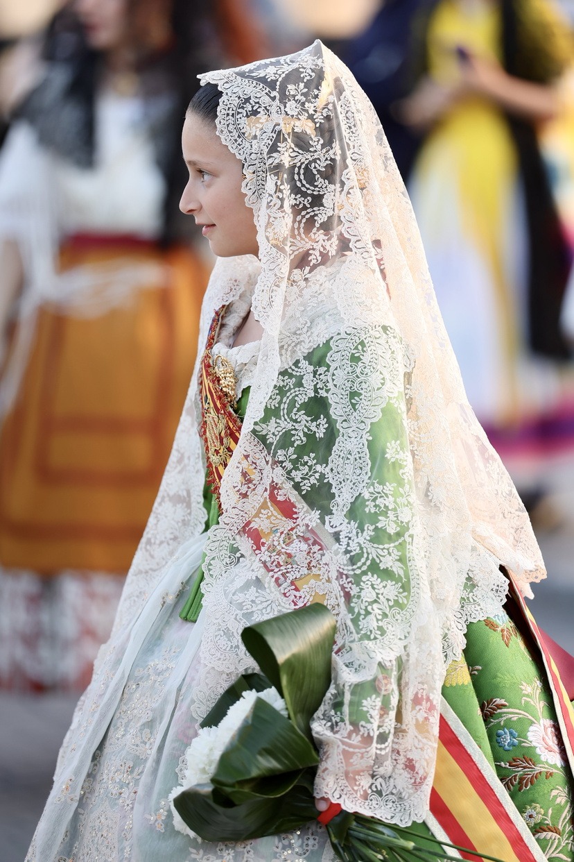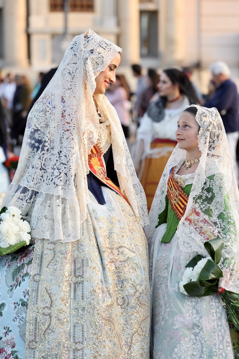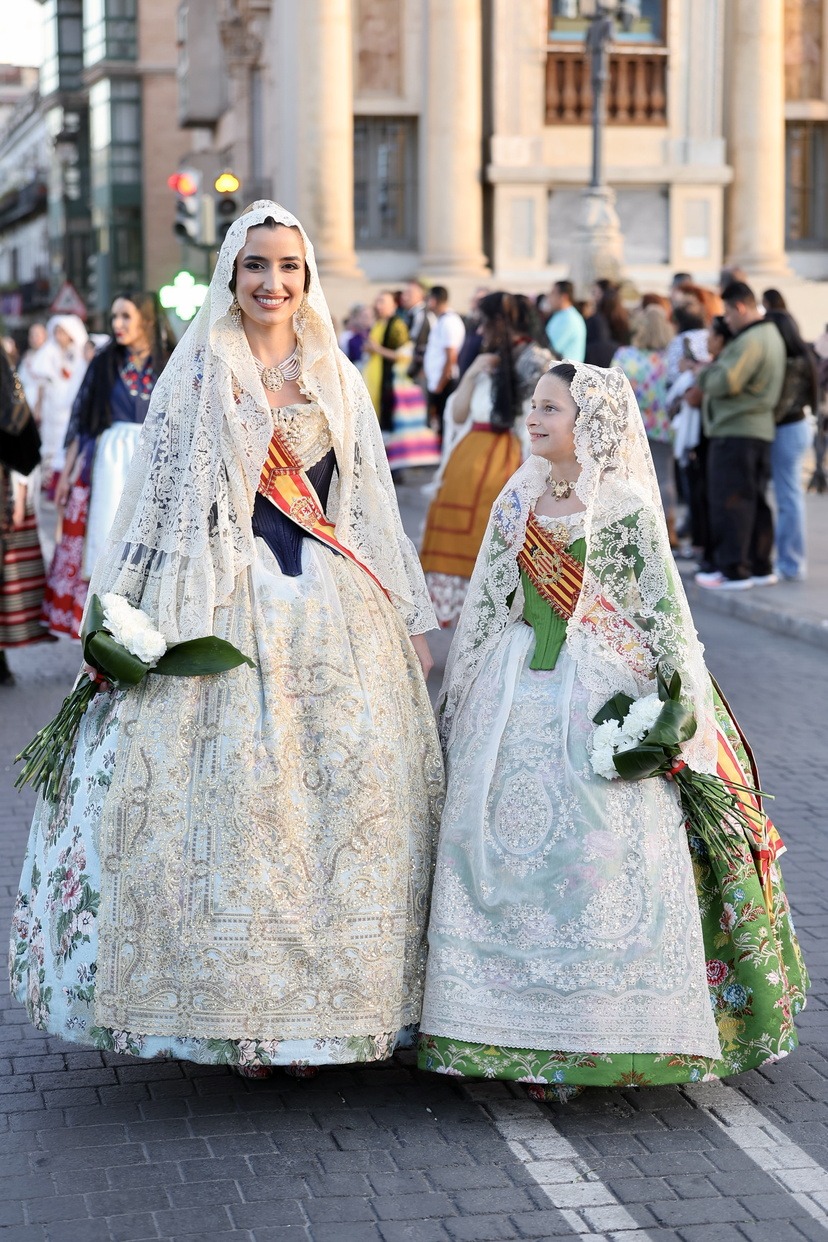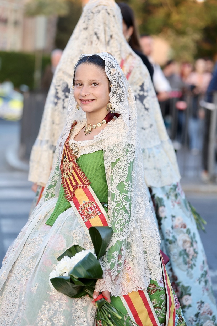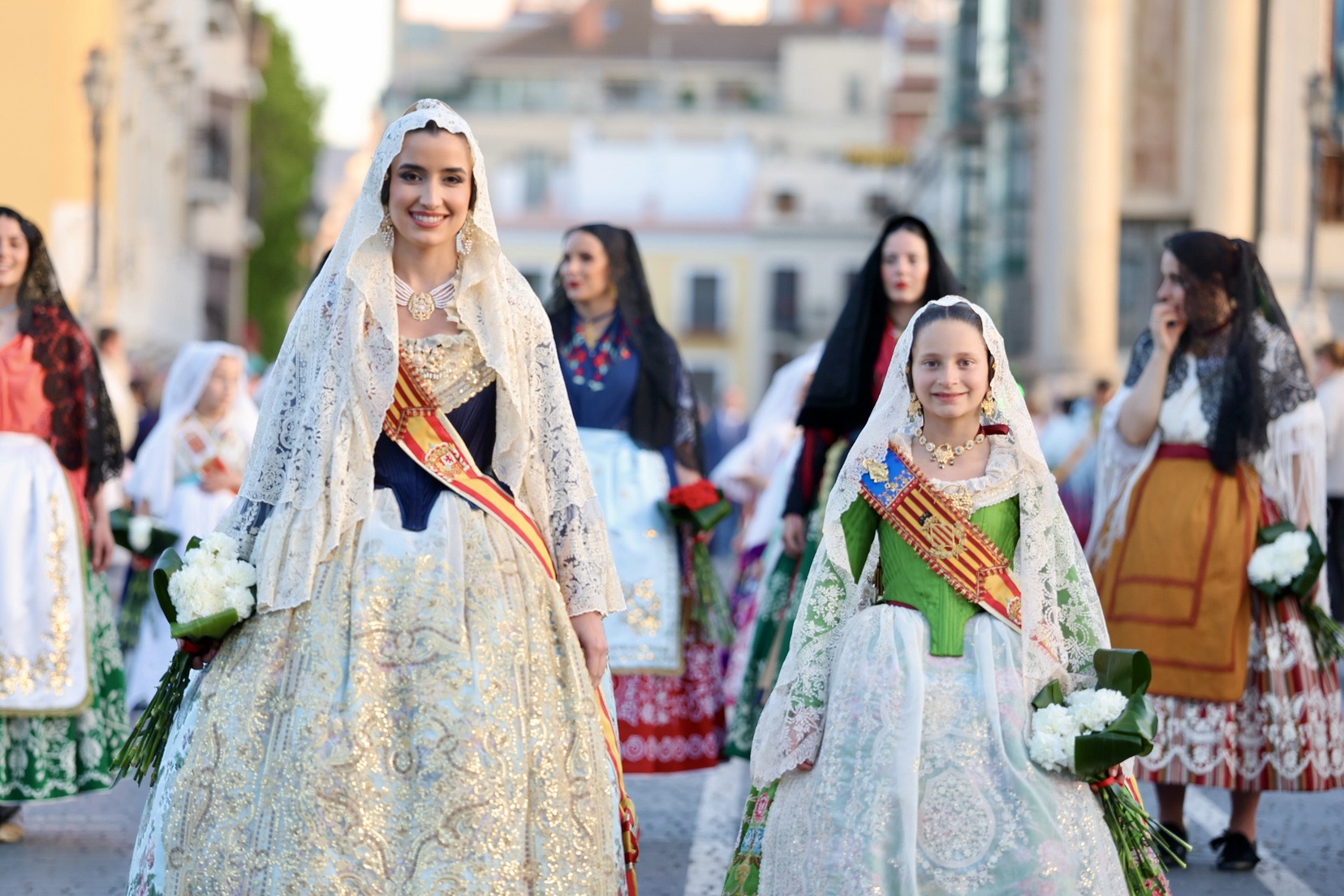 Ambas han acompañado a Ángela Muñoz y Leonor Antón, Reinas de la Huerta de Murcia, en este acto que ha finalizado en la plaza del Cardenal Belluga, a los pies de la Catedral, y que cada año reúne a miles de participantes. Más de medio centenar de peñas huertanas, junto a grupos folclóricos y colectivos tradicionales, han desfilado ataviados con el traje típico hasta el lugar de la Ofrenda para depositar sus ramos de flores, principalmente claveles, formando un tapiz floral en honor a su patrona.