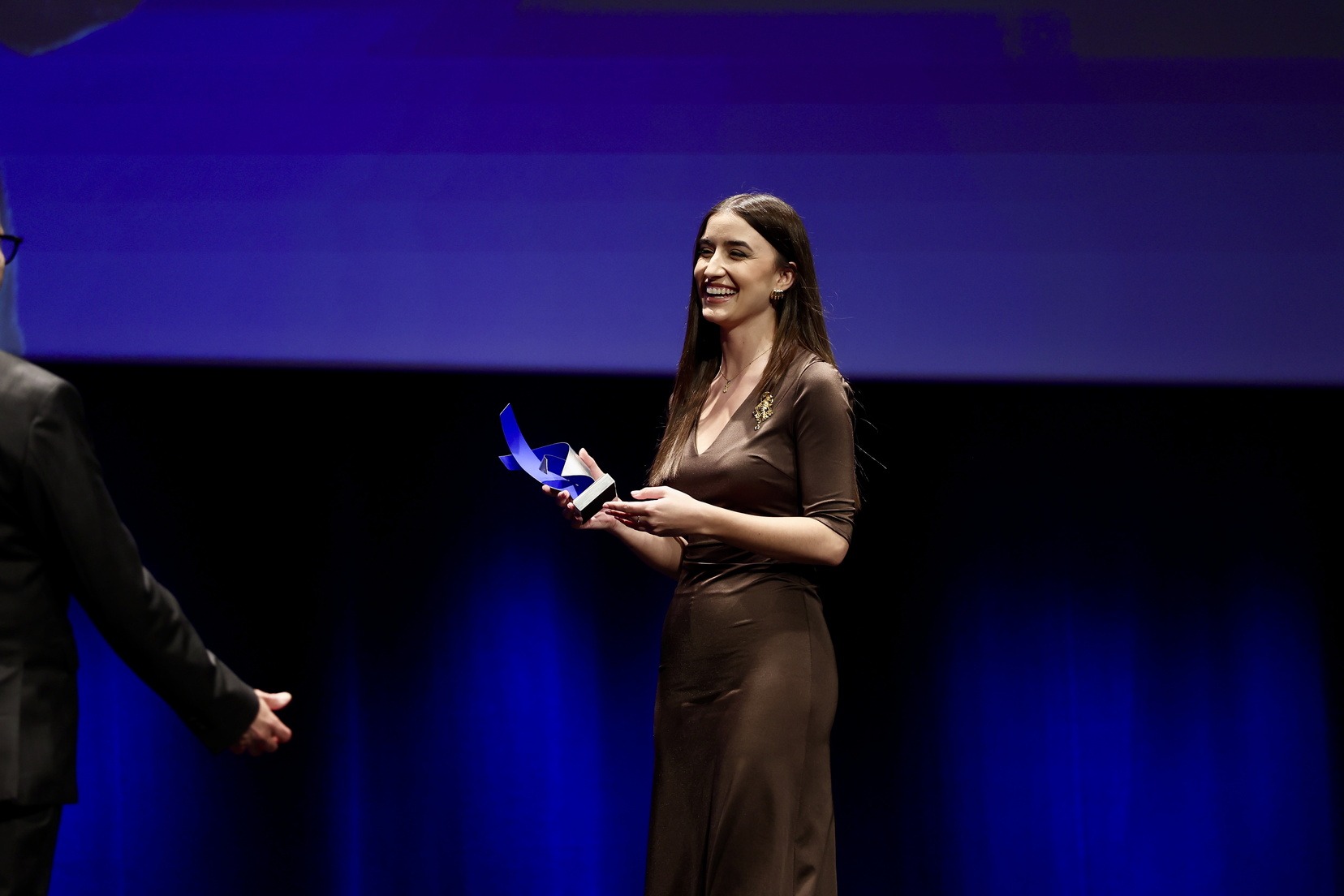 La Fallera Mayor de Valencia, Carmen Prades Gil, ha sido la encargada de entregar el premio a la promoción cultural y social, un reconocimiento que ha recaído en el Gremio de Artistas Falleros de Valencia por su contribución esencial al patrimonio cultural valenciano.