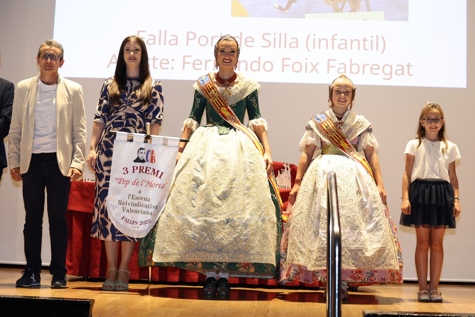 La Fallera Mayor Infantil de Valencia, Lucía García, y la Fallera Mayor de Valencia, Berta Peiró, han sido las encargadas de entregar los premios acompañadas por Óscar Rueda, presidente del Casal Bernat y Baldoví.