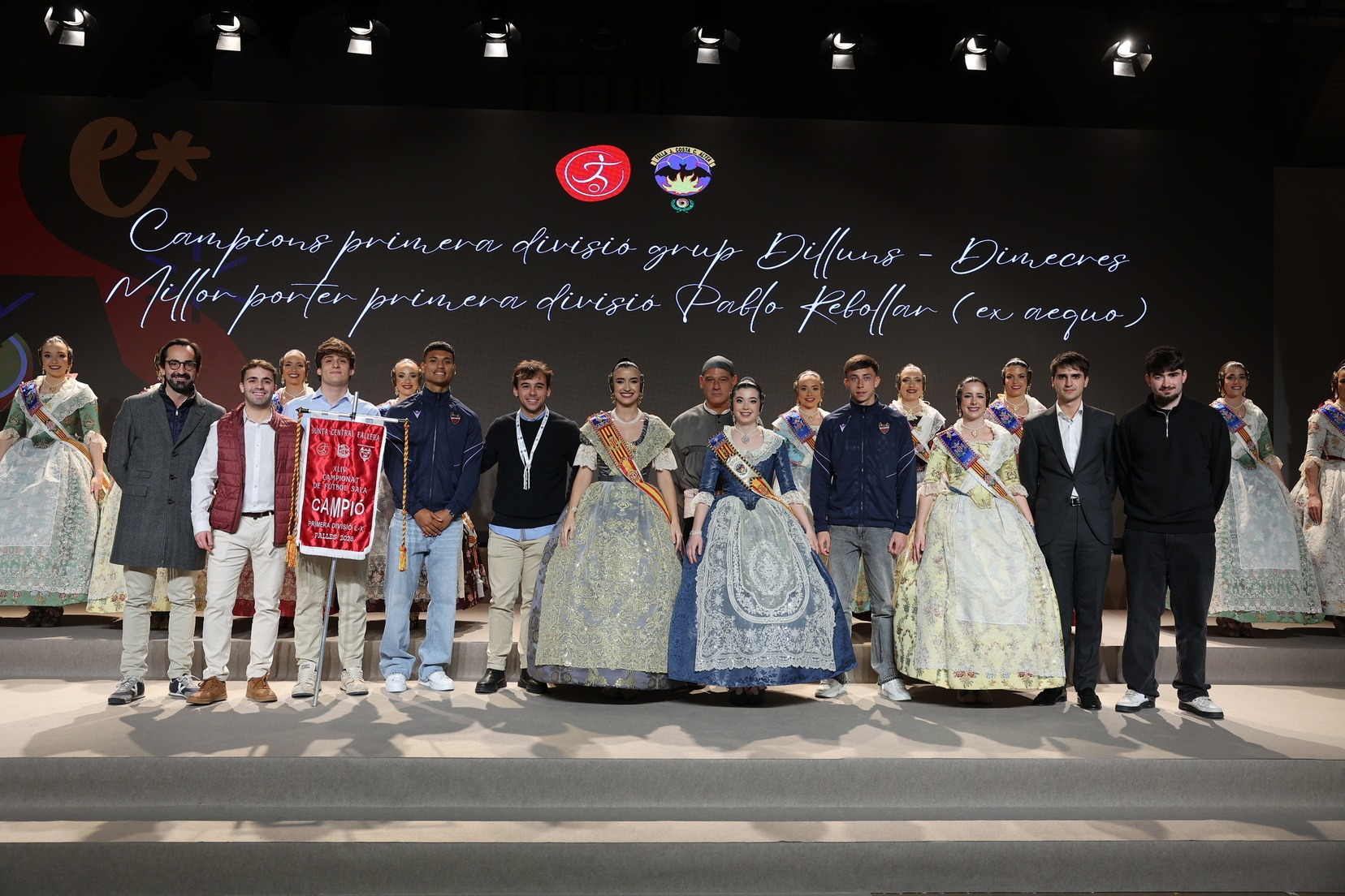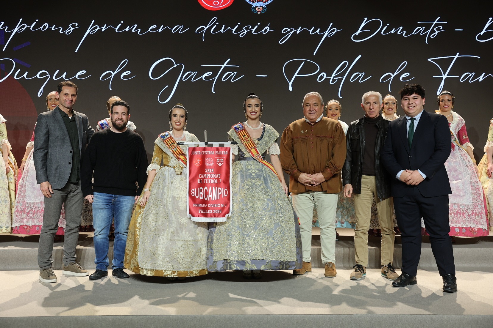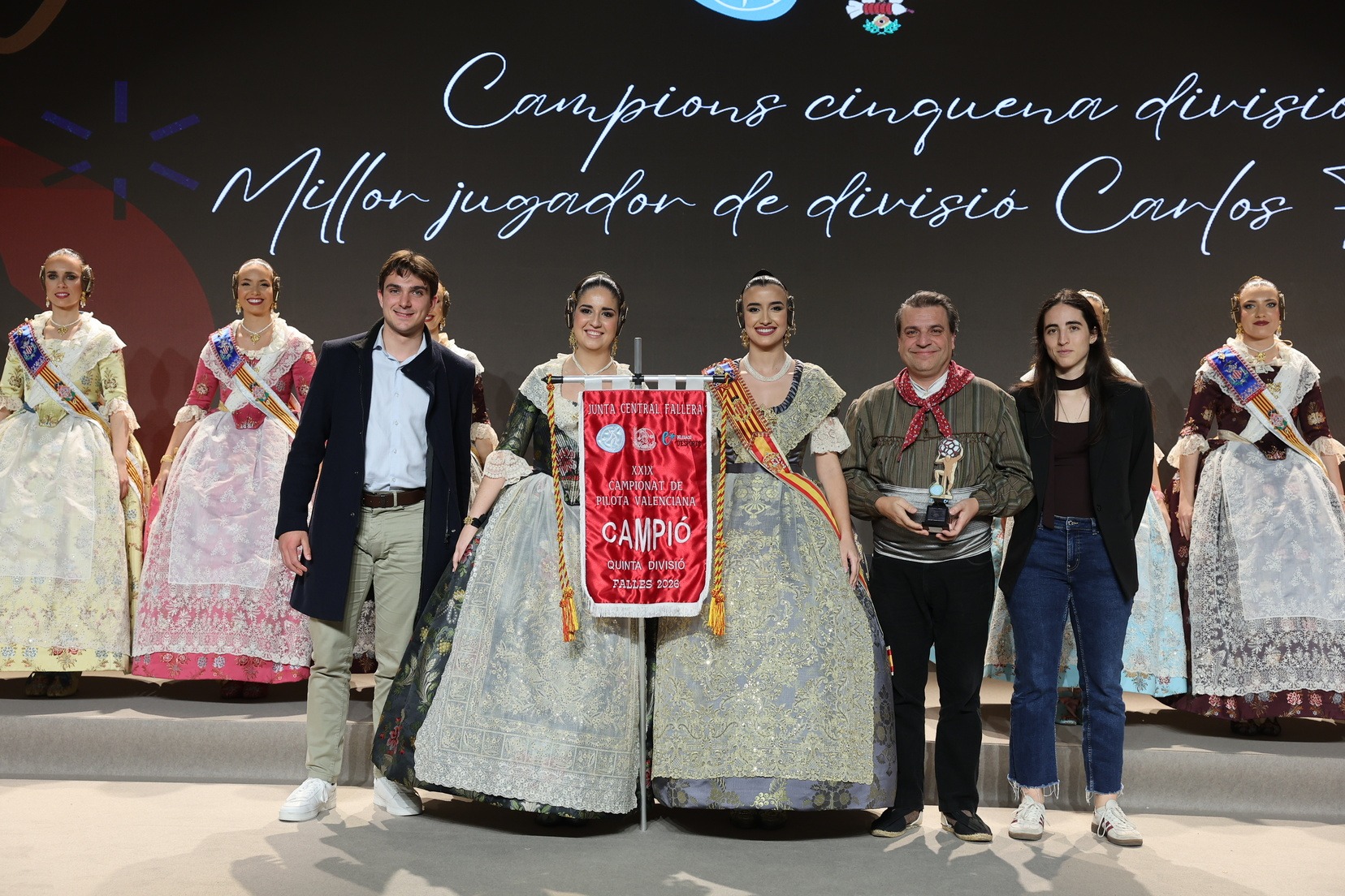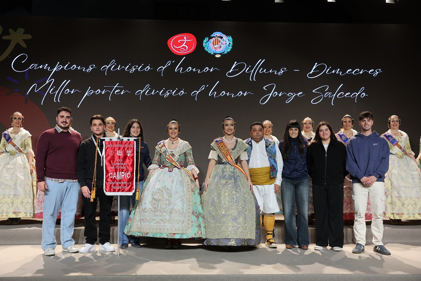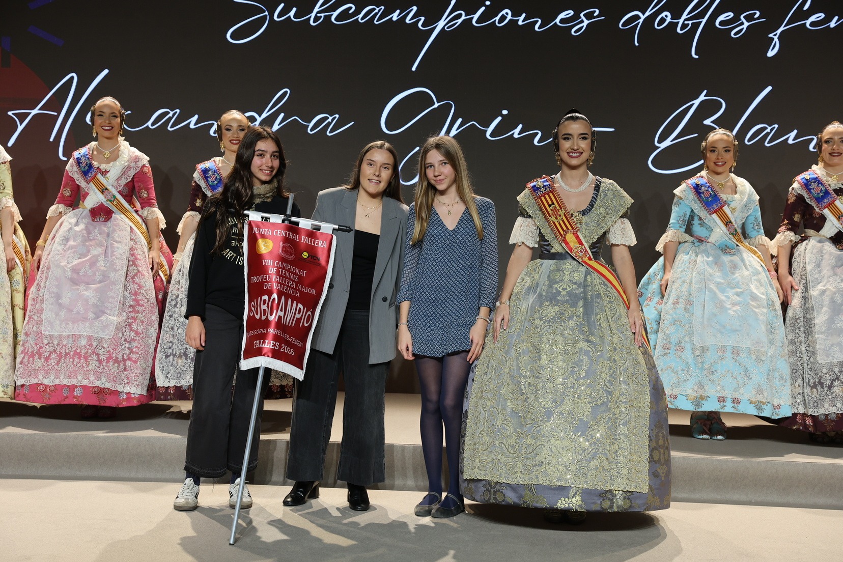 La Fallera Mayor de Valencia, Carmen Prades, acompañada por su Corte de Honor, ha presidido el acto y, además, ha sido la encargada de entregar los banderines y trofeos a las jugadoras y jugadores y a las comisiones ganadoras. Junto a ellas, además, patrocinadores y jugadores profesionales del deporte valenciano, que no han querido faltar a esta cita de reconocimiento al esfuerzo de los más de 5.000 falleros y falleras deportistas.