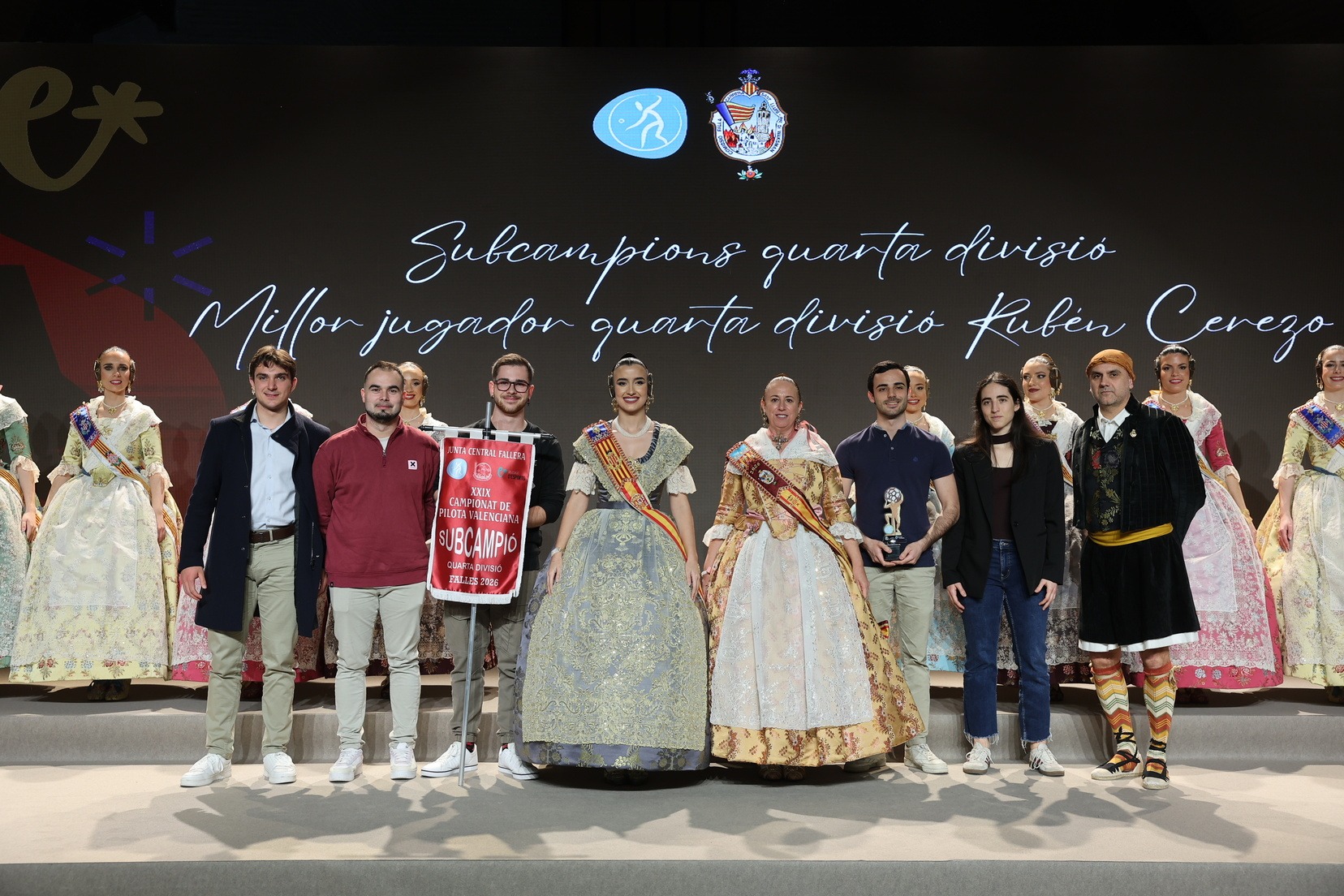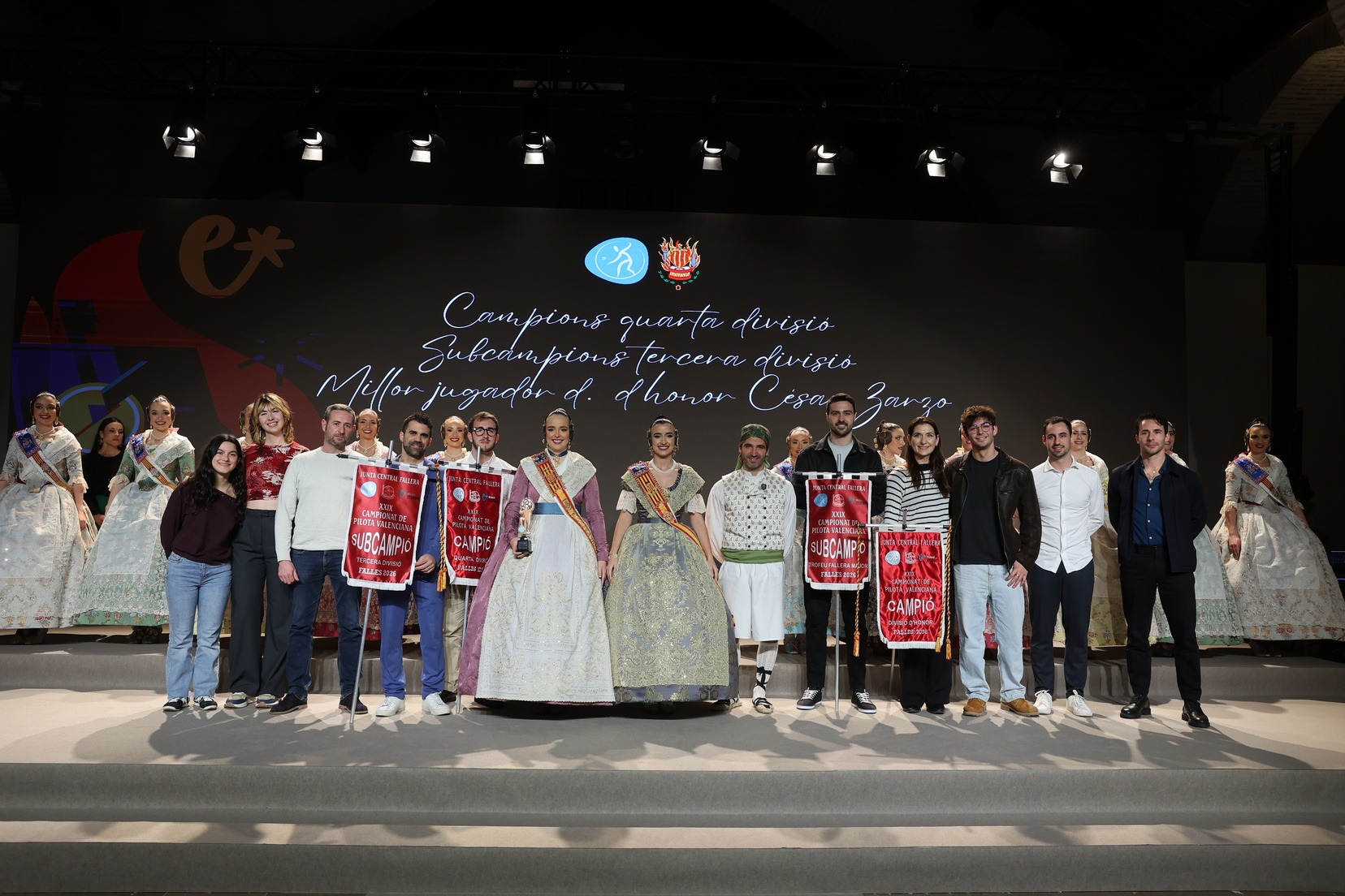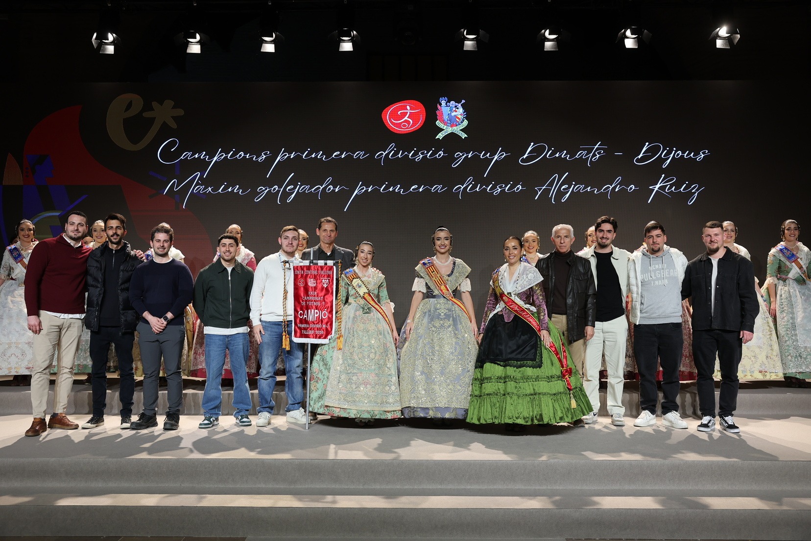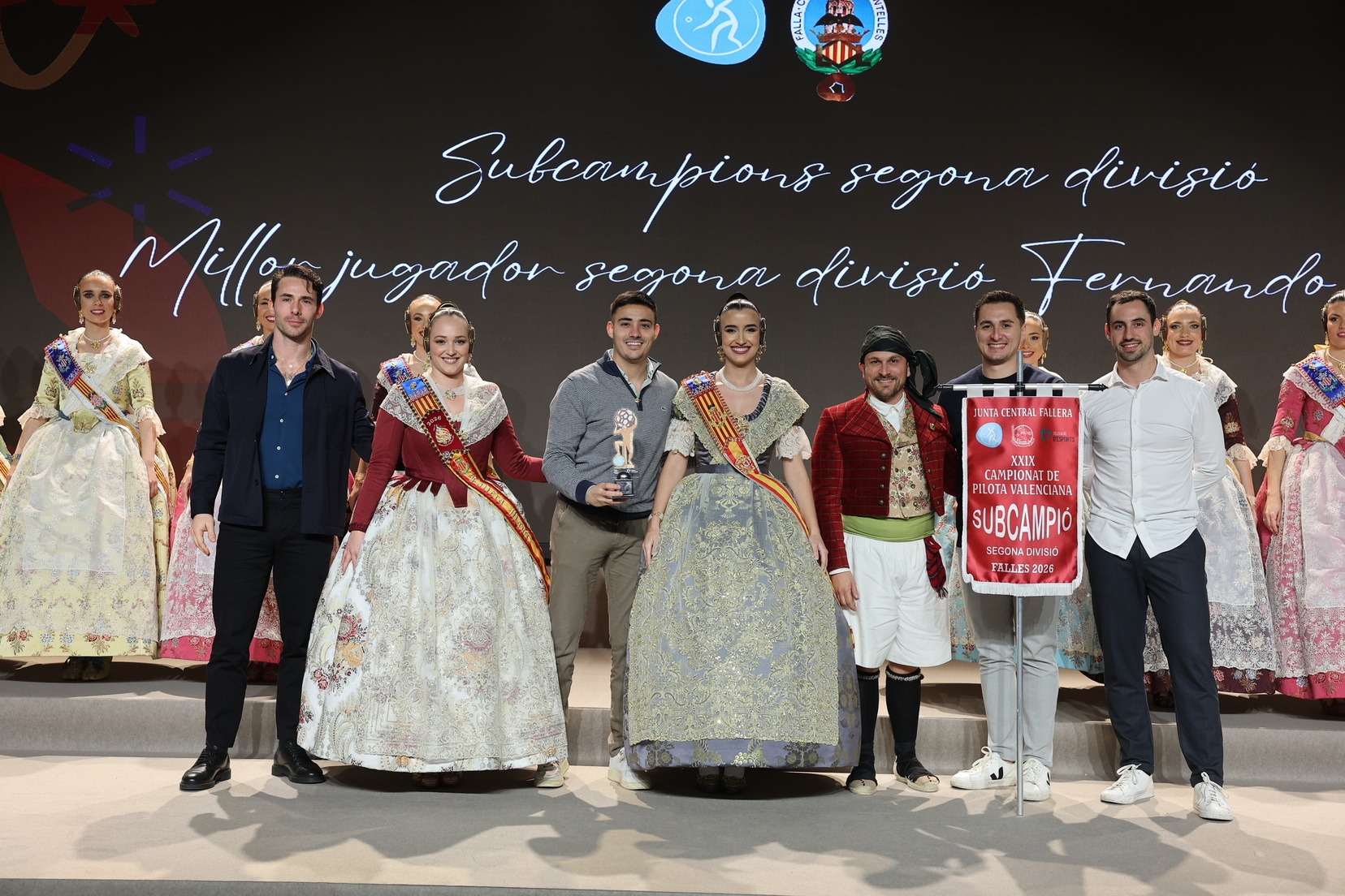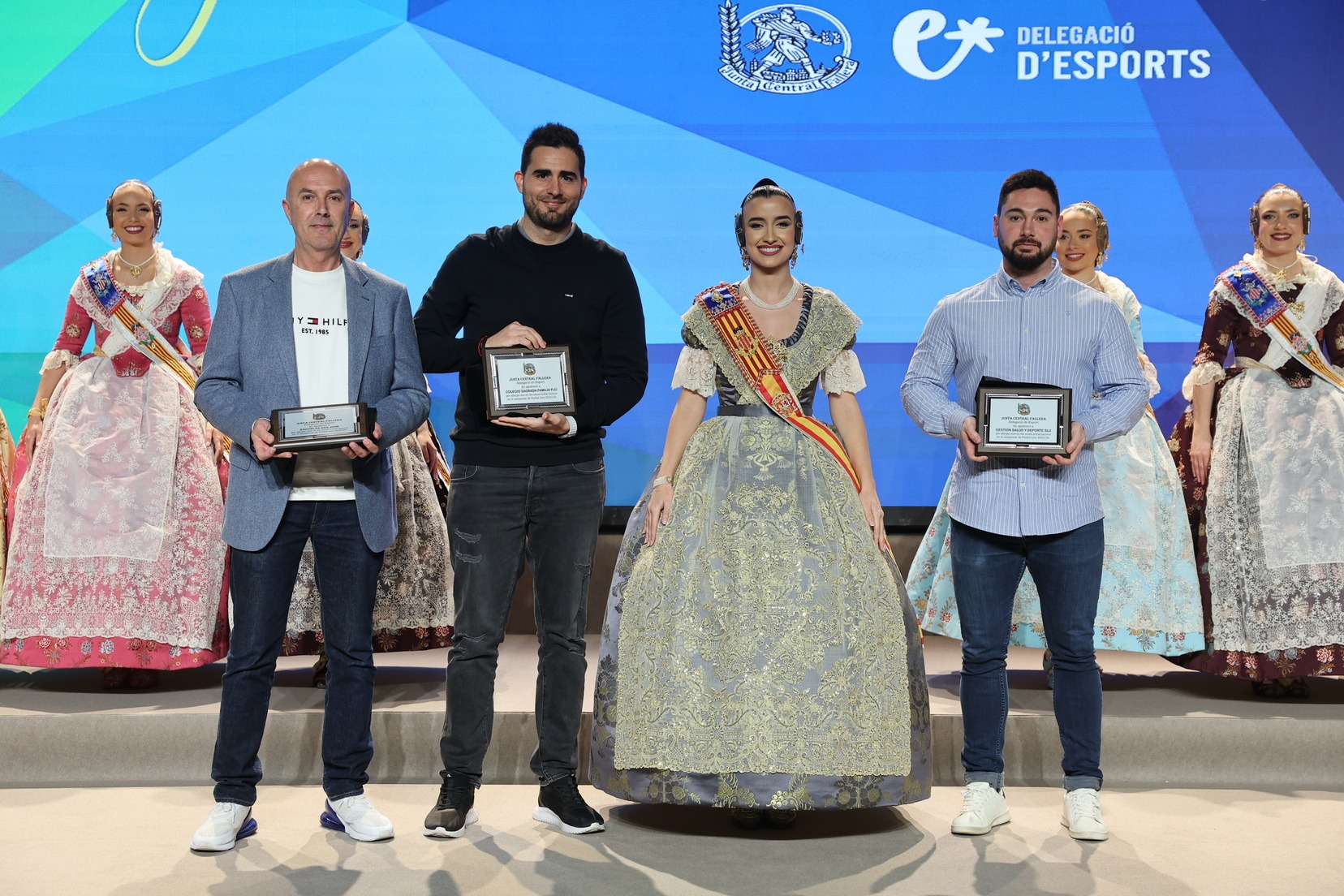 La Fallera Mayor de Valencia, Carmen Prades, acompañada por su Corte de Honor, ha presidido el acto y, además, ha sido la encargada de entregar los banderines y trofeos a las jugadoras y jugadores y a las comisiones ganadoras. Junto a ellas, además, patrocinadores y jugadores profesionales del deporte valenciano, que no han querido faltar a esta cita de reconocimiento al esfuerzo de los más de 5.000 falleros y falleras deportistas.