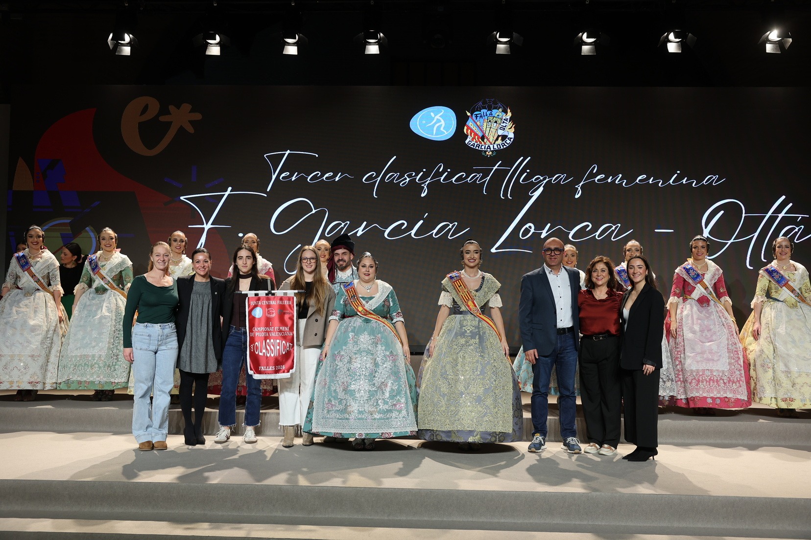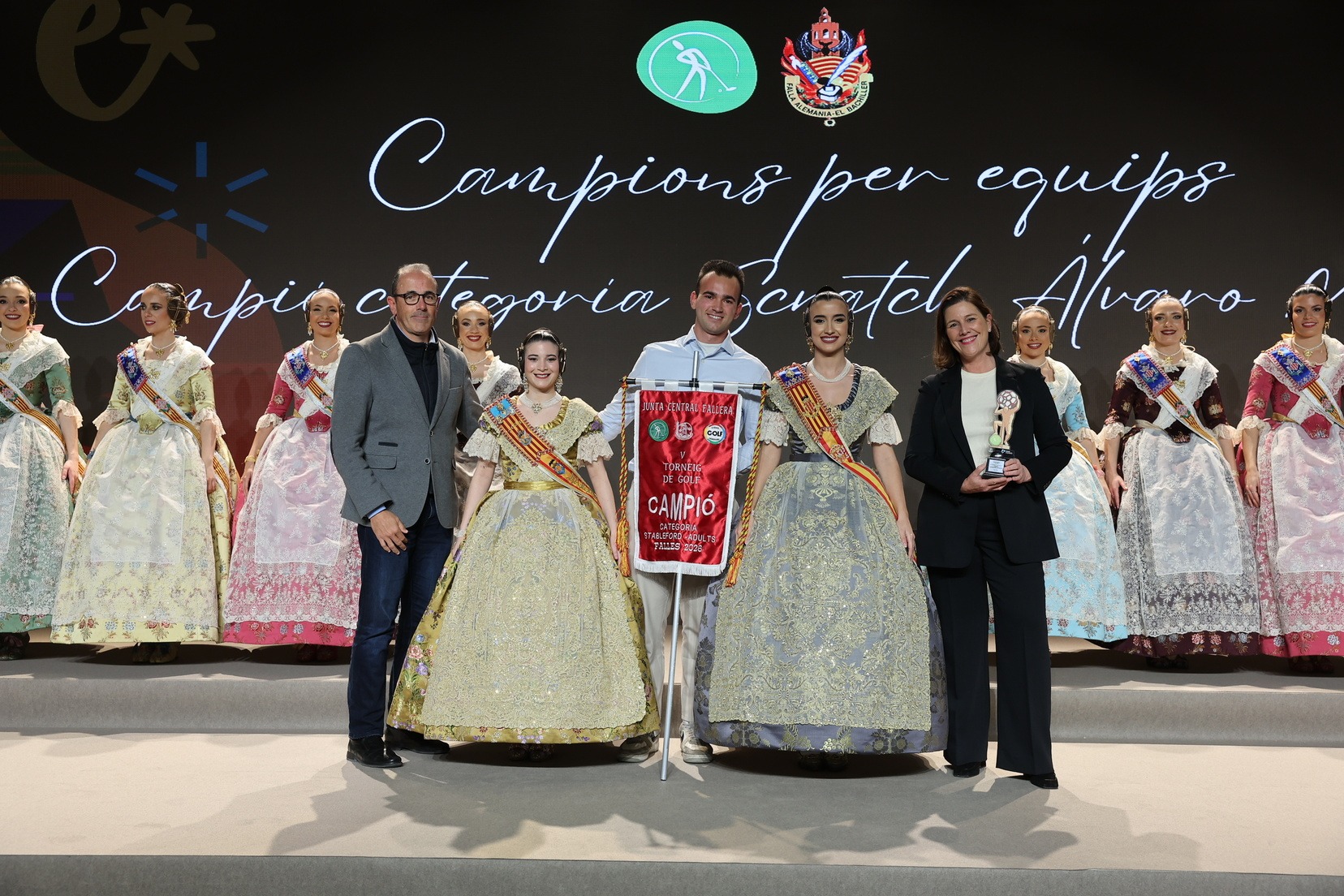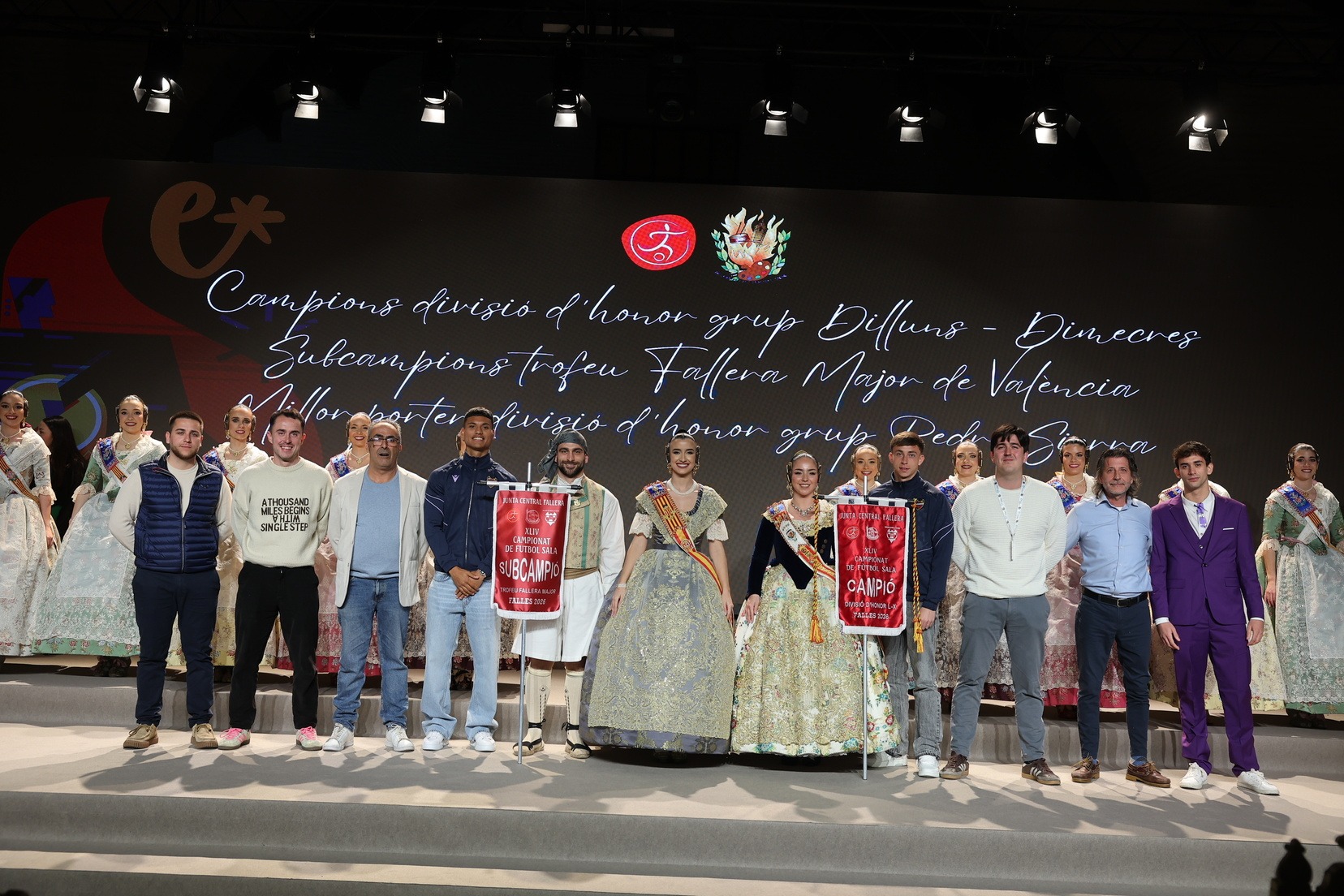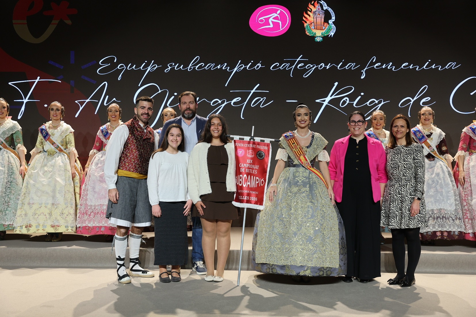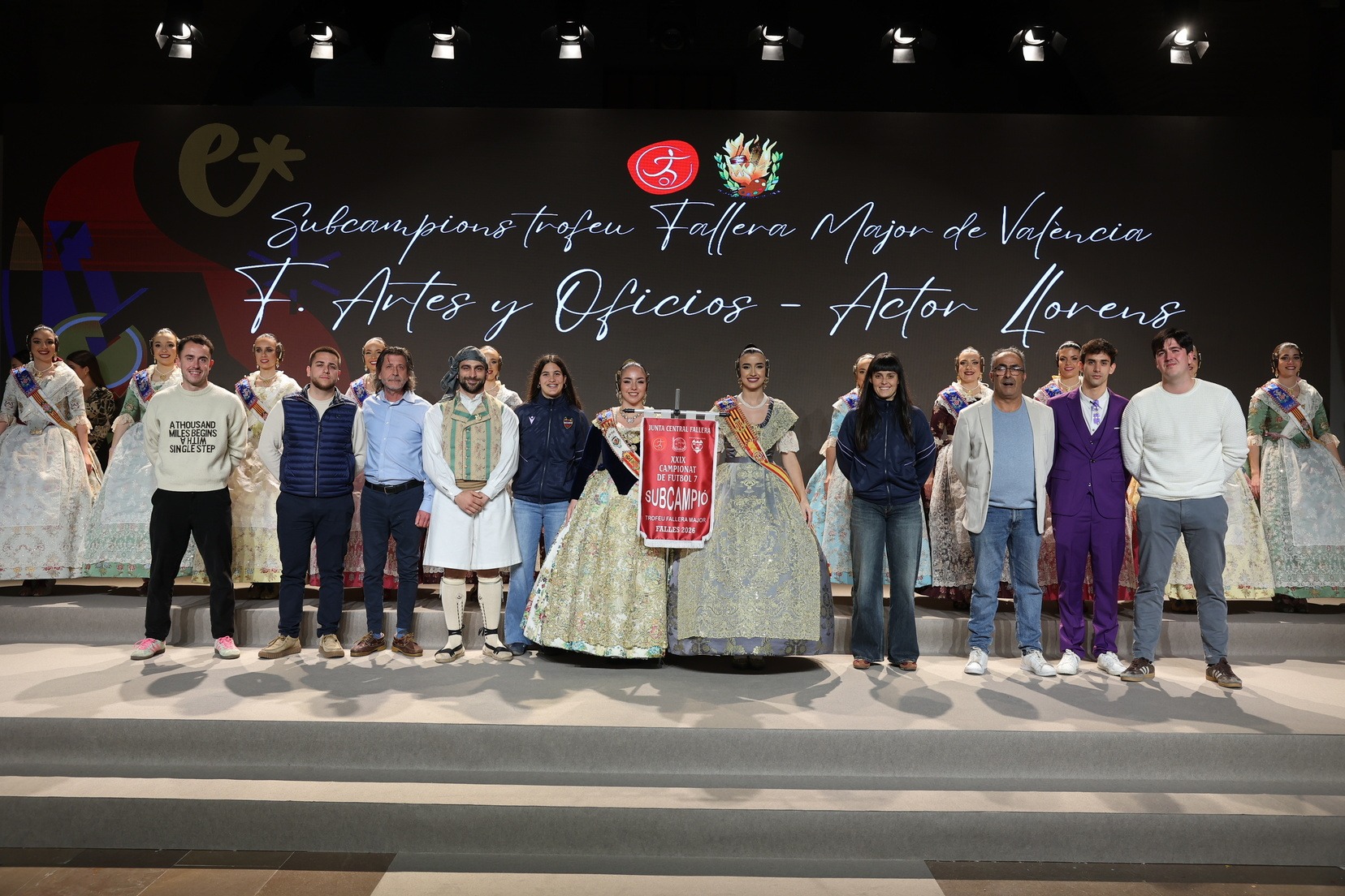 La Fallera Mayor de Valencia, Carmen Prades, acompañada por su Corte de Honor, ha presidido el acto y, además, ha sido la encargada de entregar los banderines y trofeos a las jugadoras y jugadores y a las comisiones ganadoras. Junto a ellas, además, patrocinadores y jugadores profesionales del deporte valenciano, que no han querido faltar a esta cita de reconocimiento al esfuerzo de los más de 5.000 falleros y falleras deportistas.