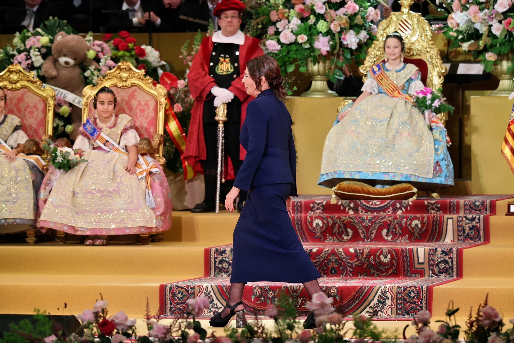 Fallera Mayor Infantil de Valencia, Marta Mercader Roig; Excelentísima alcaldesa de Valencia, señora doña María José Catalá; Honorable vicepresidenta del Consell, Susana Camarero; presidente de Junta Central Fallera, Don Santiago Ballester; Fallera Mayor de Valencia, Carmen Prades Gil; Cortes de Honor; Reina Infantil de las Fiestas de Castellón, Ana Colón; Bellea del Foc Infantil, Valentina Tárraga; autoridades, padres, madres, niñas y niños que sois el orgullo y el futuro de la fiesta, falleros todos…