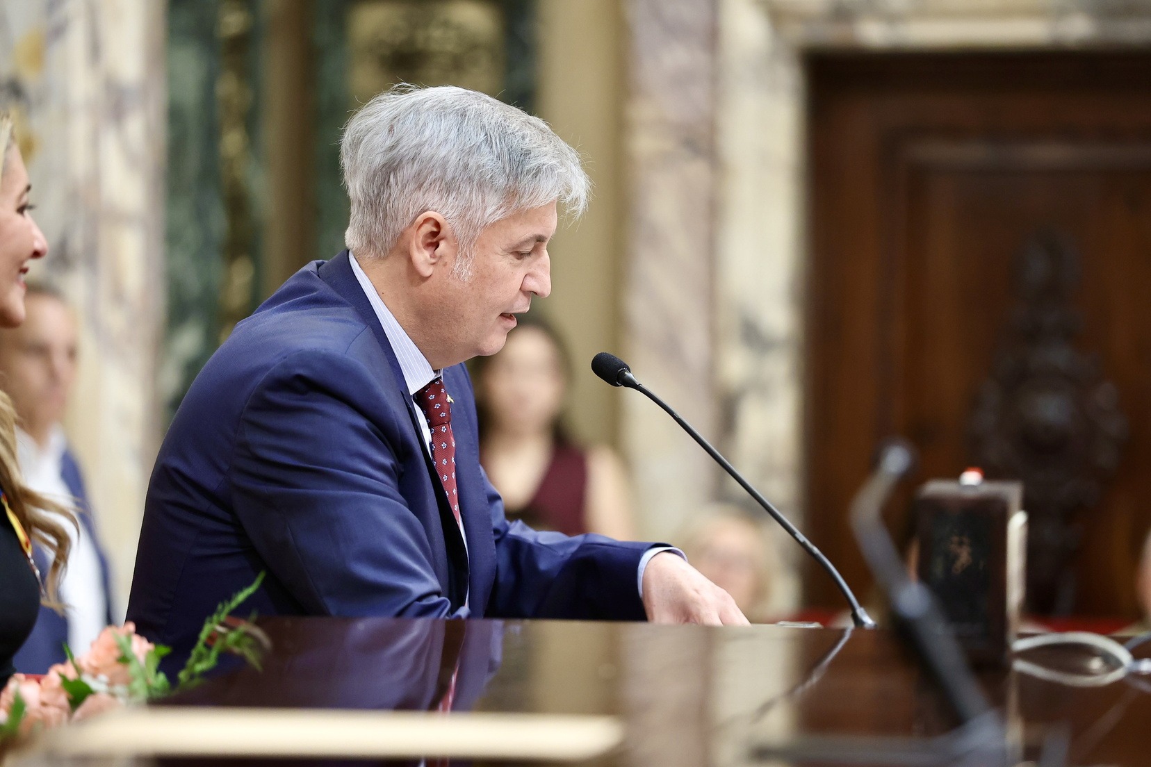 El acto ha estado presidido por Carmen Prades y Marta Mercader, Falleras Mayores de Valencia, acompañadas por la Reina de los Juegos Florales, María García Vallcanera. También asistieron la concejala de Fiestas y Tradiciones, Mónica Gil, y el presidente de Lo Rat Penat, José Vicente Navarro.