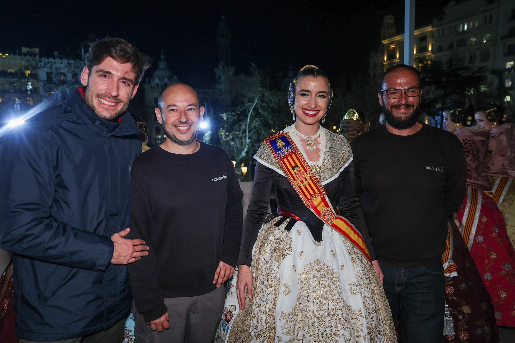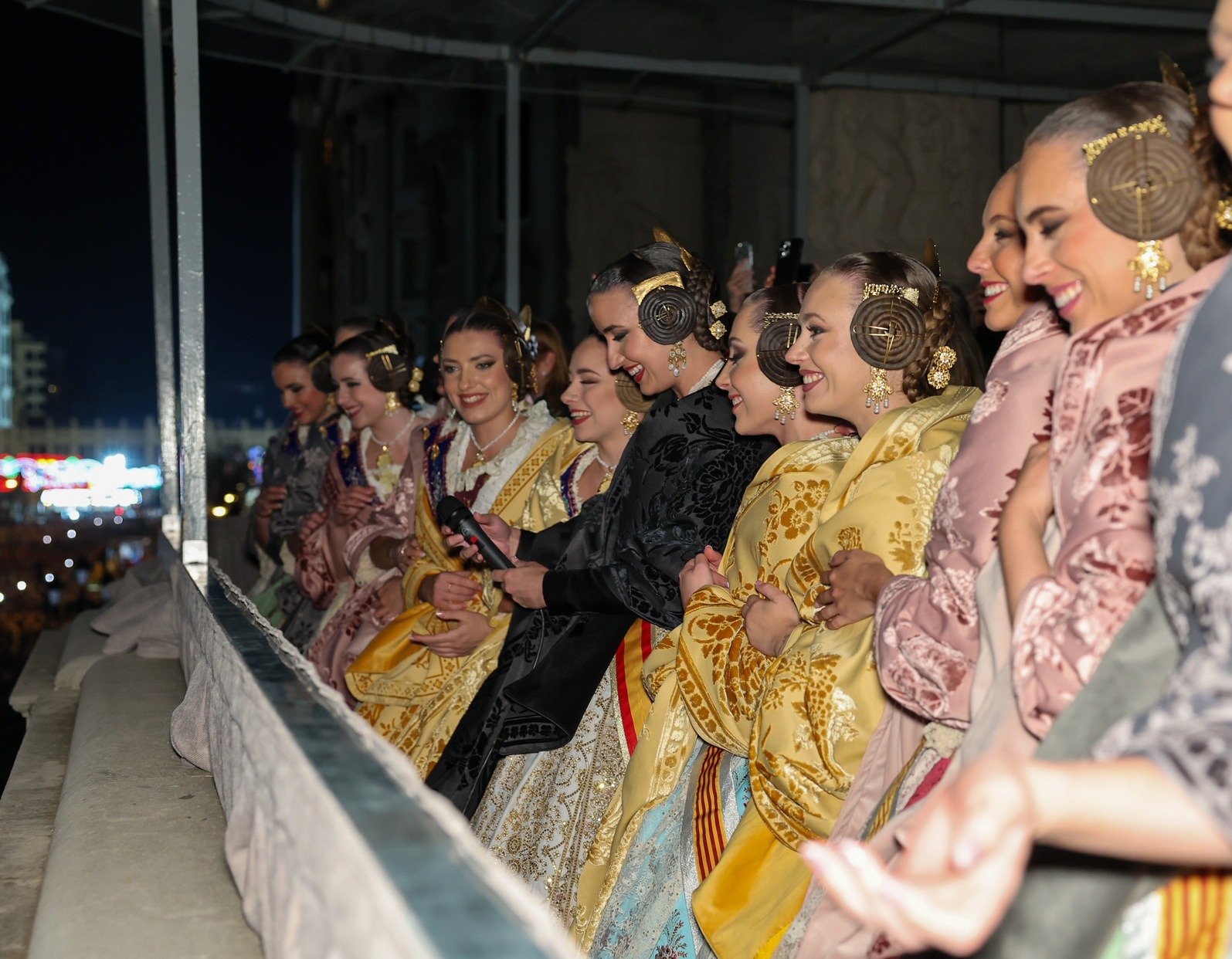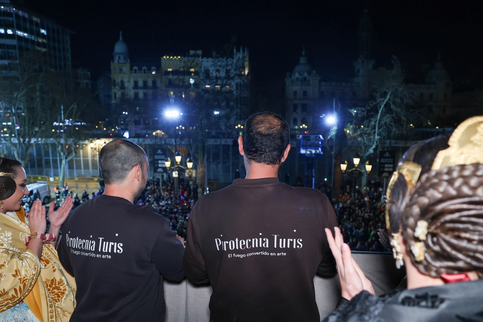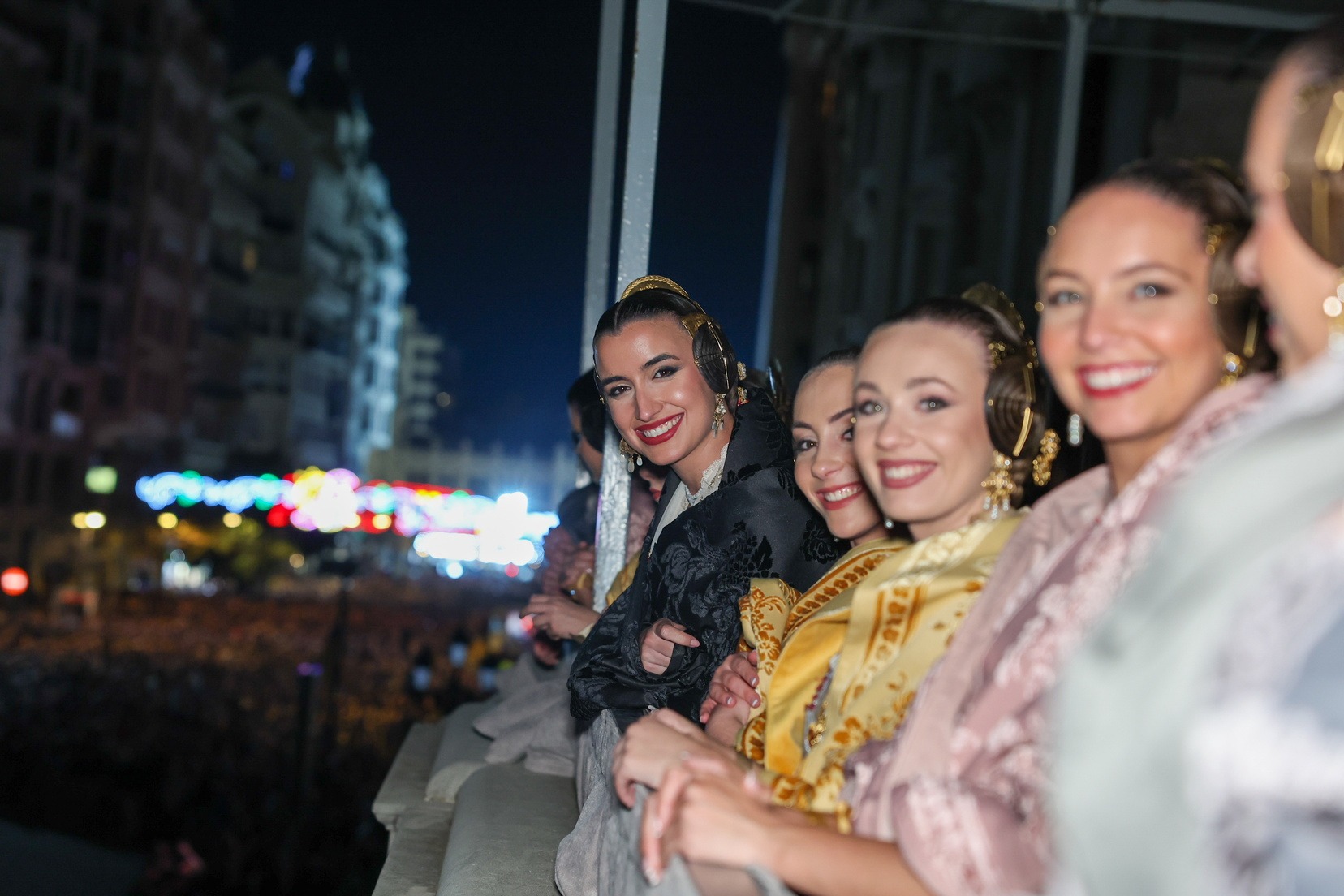 La Fallera Mayor de Valencia, Carmen Prades, acompañada de su Corte de Honor, ha sido la encargada de marcar desde el Balcón el inicio de este disparo nocturno previo a la esperada semana grande de las Fallas 2026.