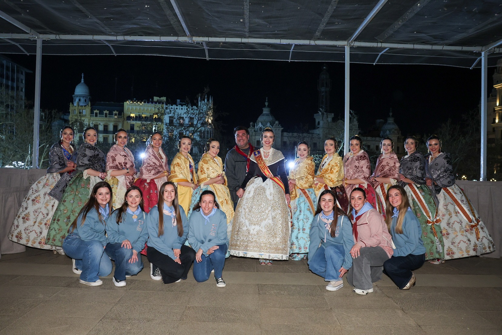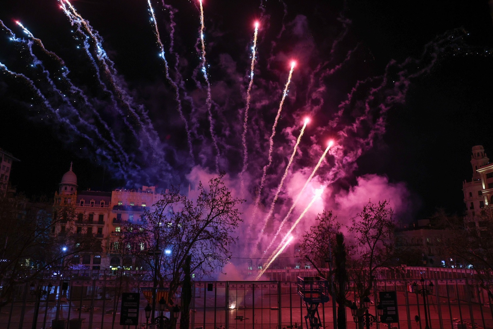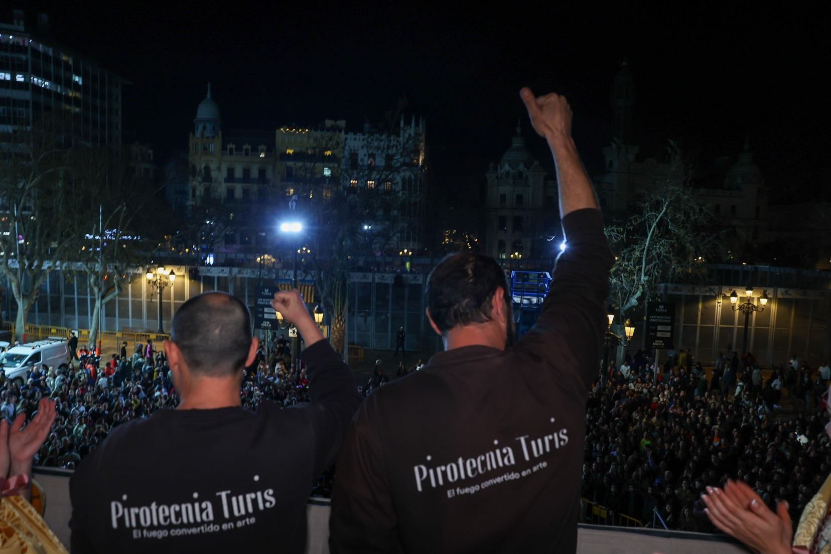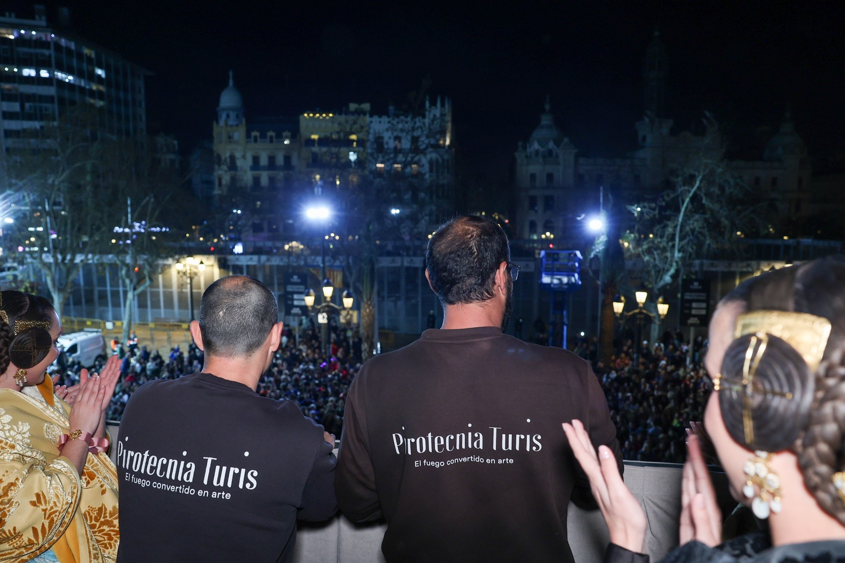 La Fallera Mayor de Valencia, Carmen Prades, acompañada de su Corte de Honor, ha sido la encargada de marcar desde el Balcón el inicio de este disparo nocturno previo a la esperada semana grande de las Fallas 2026.