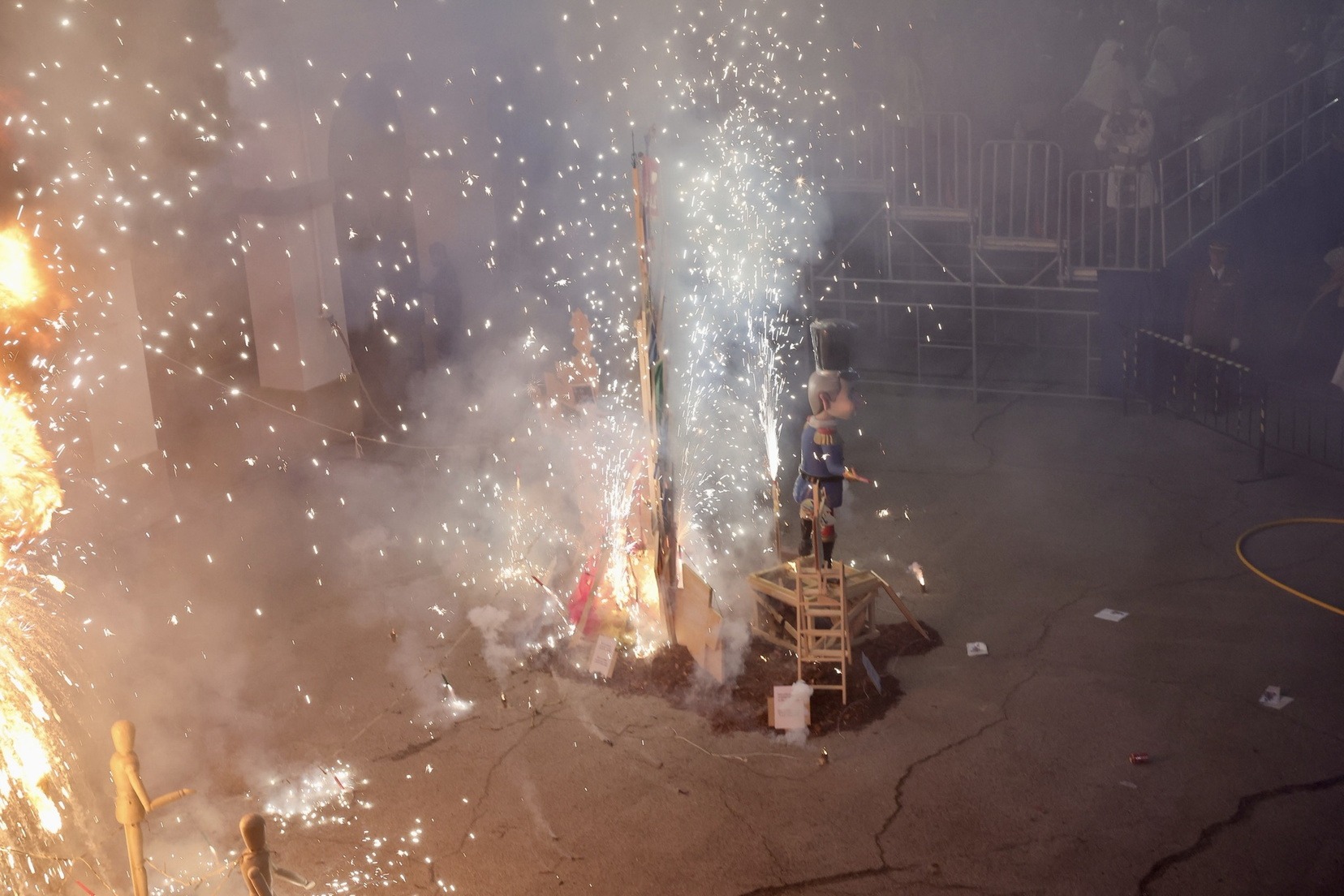 Finalmente, un pequeño espectáculo de fuegos artificiales ha dado paso a la Cremà de las fallas de las Fuerzas Armadas y Guardia Civil, creadas por Juanjo García y Jordi Palanca, poniendo el broche de oro a una de las jornadas más especiales del ejercicio.