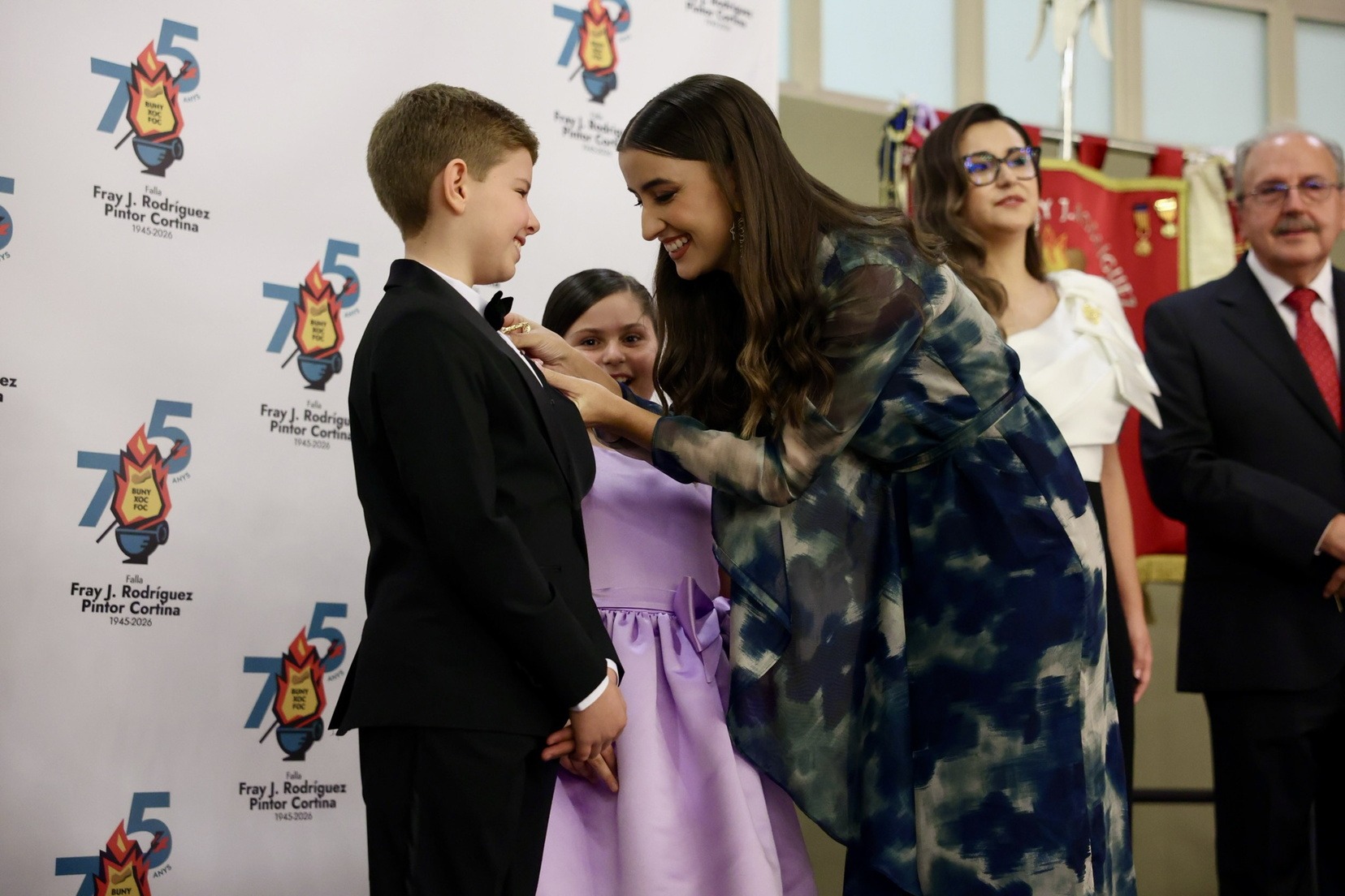 La Fallera Mayor de Valencia, Carmen Prades, quiso acompañar a los falleros de Fray J. en esta emotiva noche, expresando personalmente sus felicitaciones por esta destacada trayectoria.