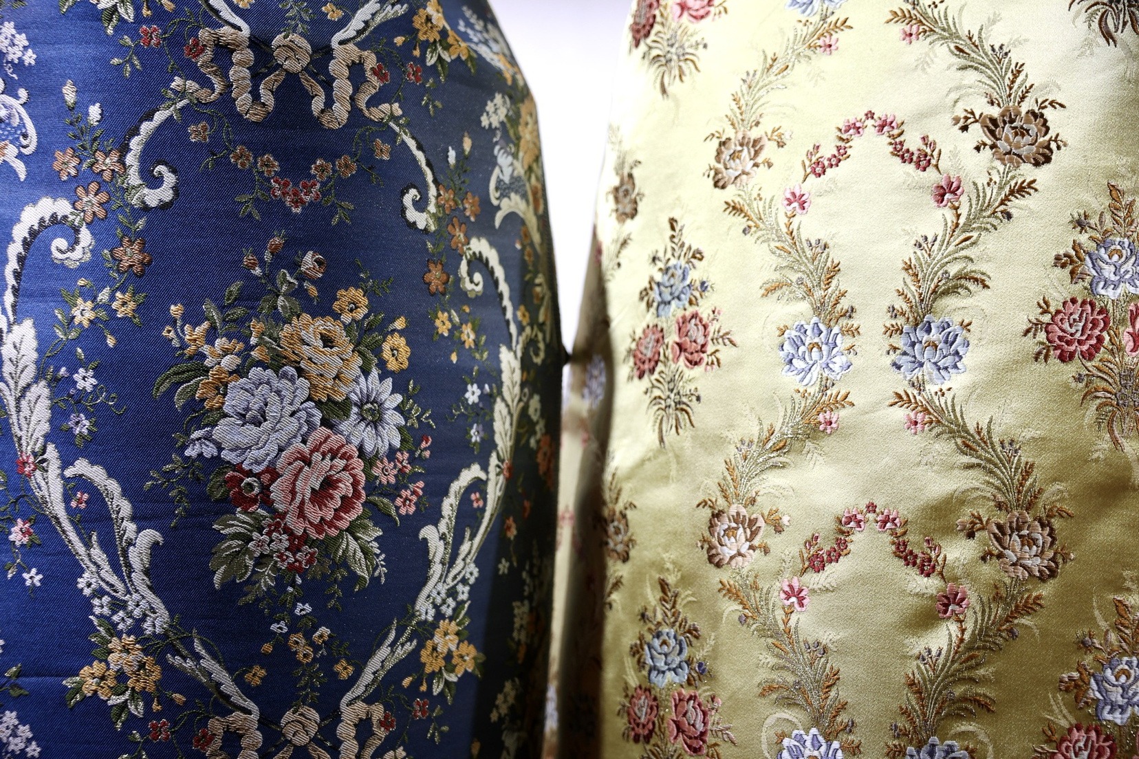 El tejido del segundo traje oficial reproduce un dibujo que lleva el nombre de «BRESCA», un rayón doble ancho también con motivos florales con mucha luz. Se trata de un dibujo muy elegante y lujoso por su diseño ornamental.