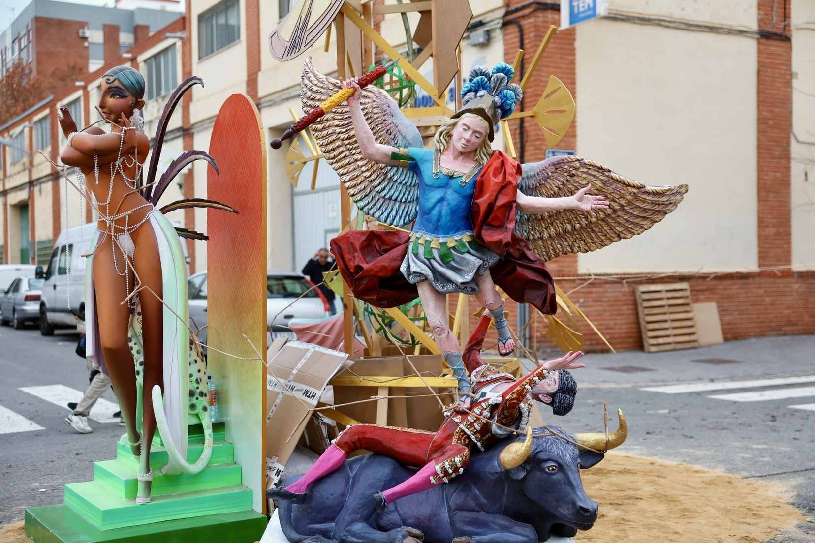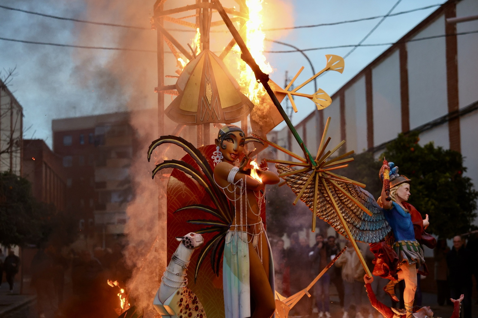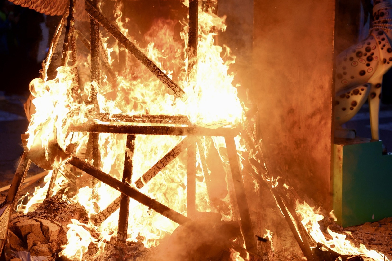 Hacia el mediodía, la celebración ha comenzado con la Plantà del Pi, una estructura construida por diversos artistas agremiados y que, como novedad, ha contado este año con un ninot, la figura de la bailarina y cantante Josephine Baker. Tras una comida de germanor, se ha llevado a cabo la Cremà.