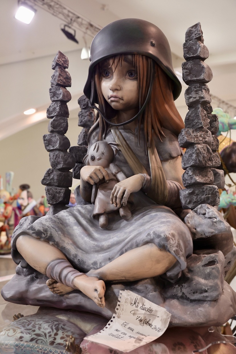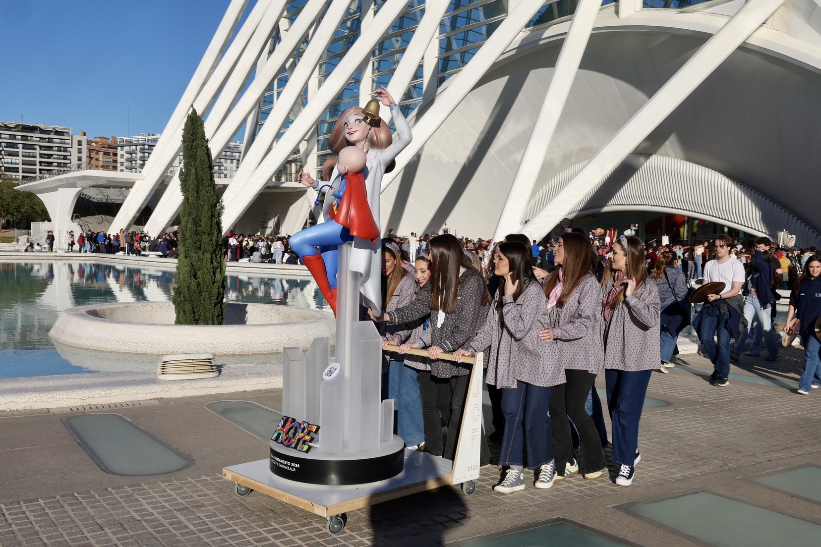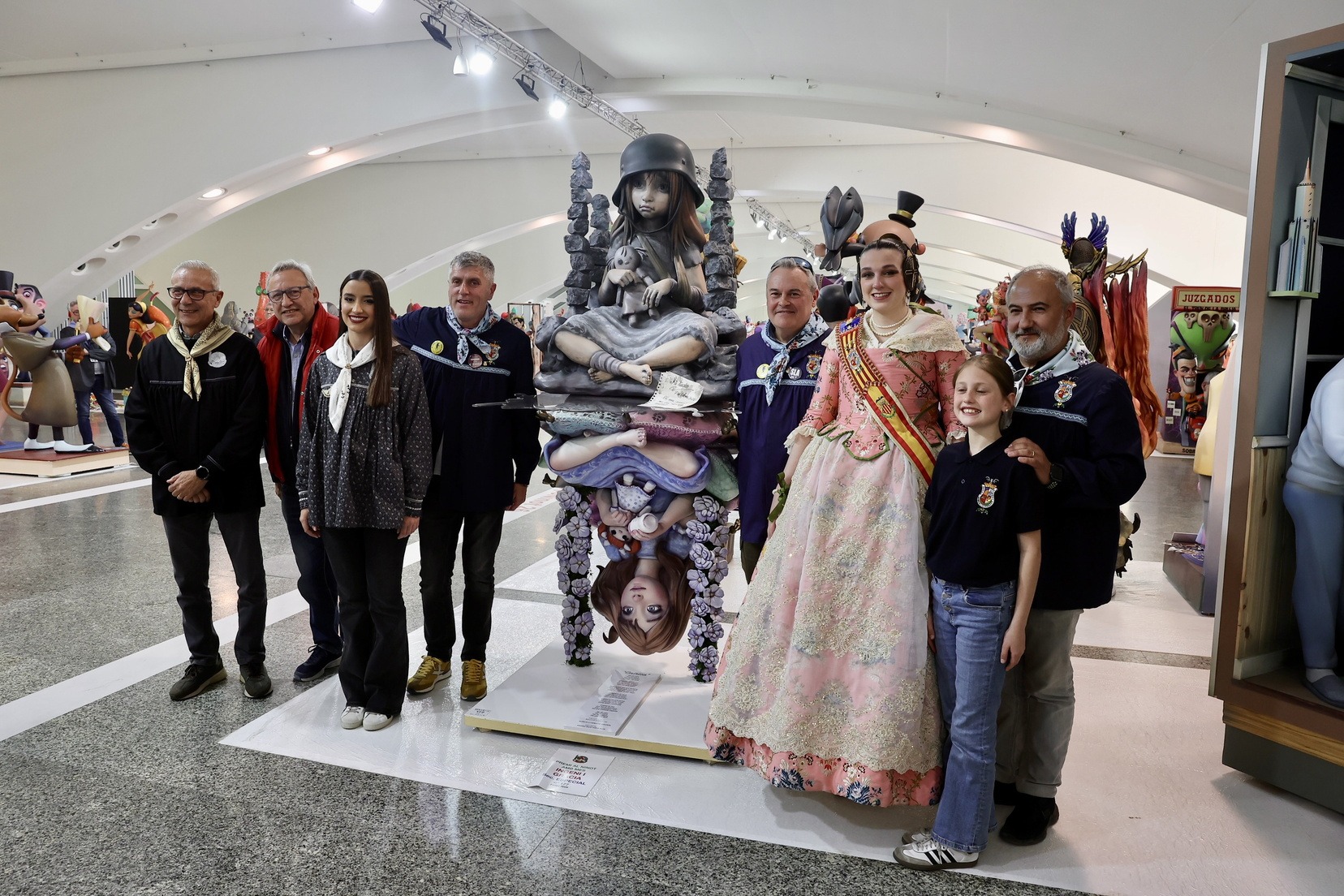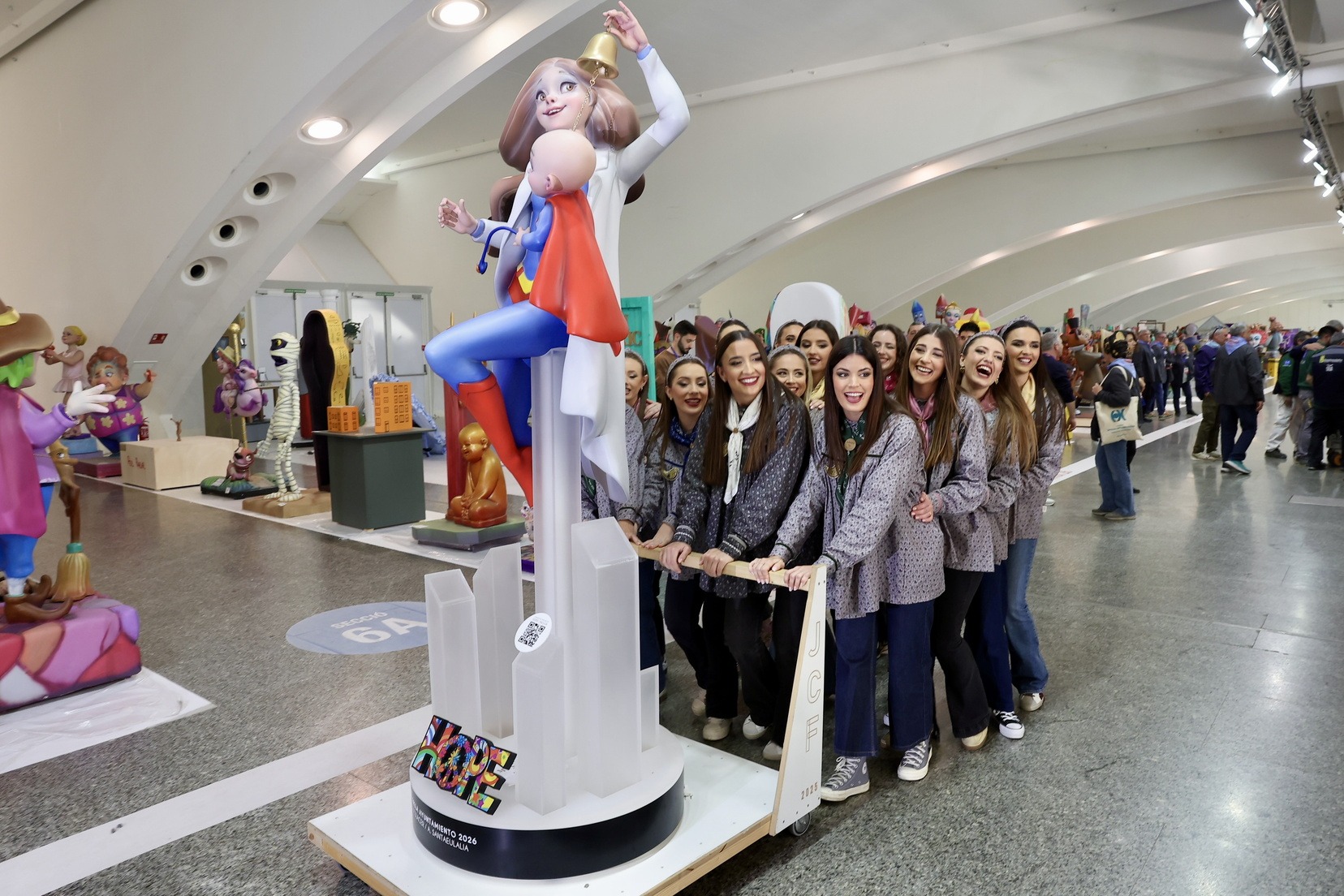Carmen Prades Gil y su Corte de Honor se han llevado también el ninot que forma parte de la falla municipal “Hope”, que en estos días preside la Plaza del Ayuntamiento, y que ya se integra en el conjunto de la falla municipal, obra de Vicente Llácer y Alejandro Santaeulalia.