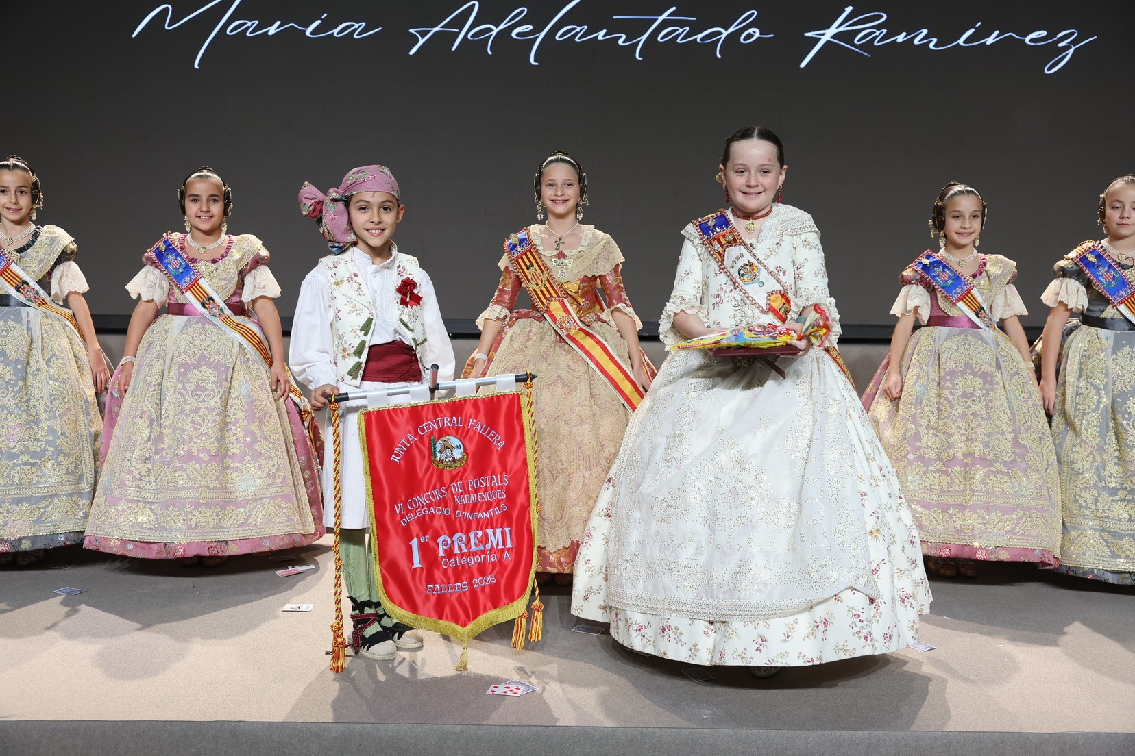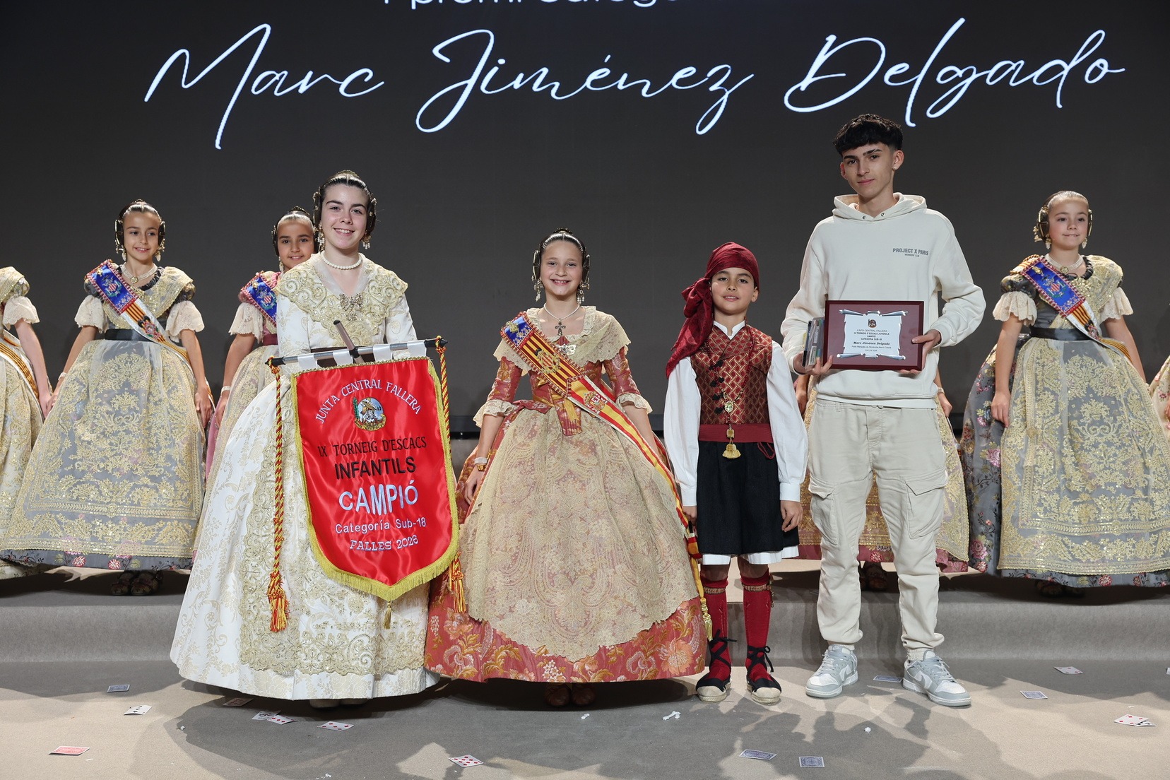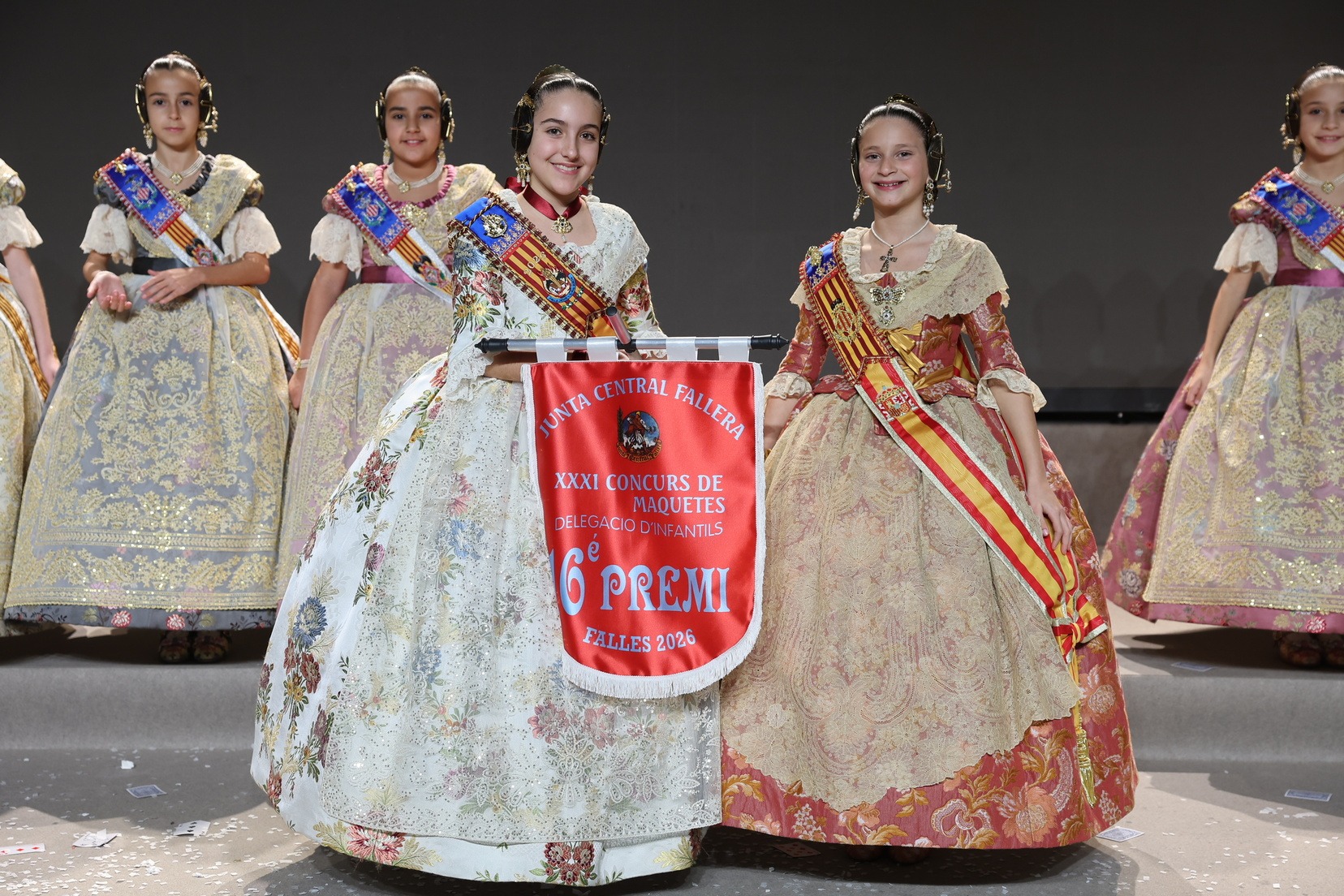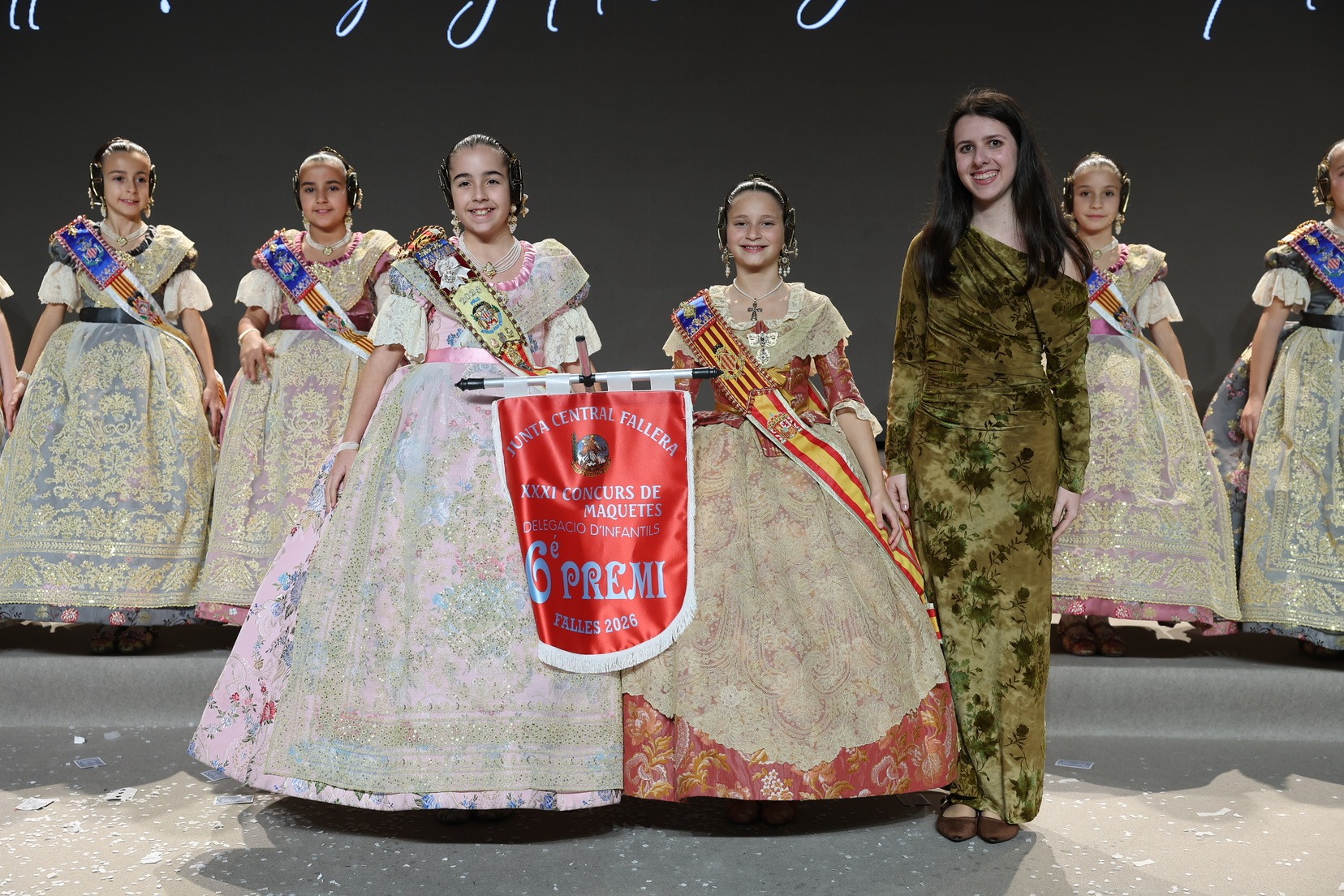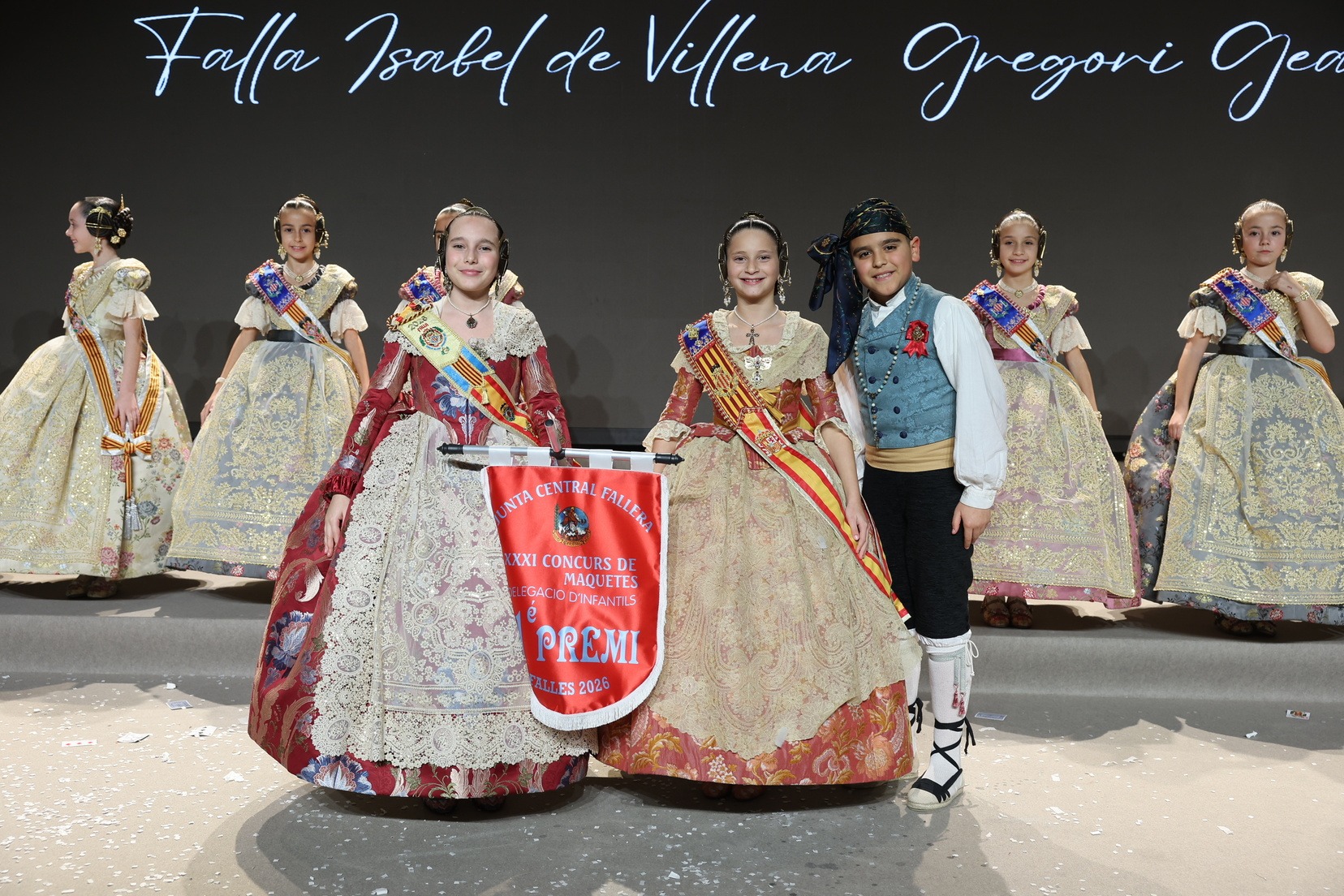 Durante el acto se han entregado los galardones de los concursos infantiles y juveniles organizados por Junta Central Fallera, entre ellos los correspondientes a los concursos de dibujo, maquetas, futbolín y postales. La gala ha servido para reunir sobre el escenario a los representantes de las comisiones distinguidas, reconociendo públicamente su esfuerzo, creatividad y participación.