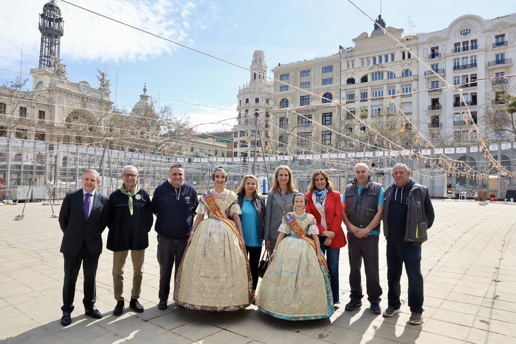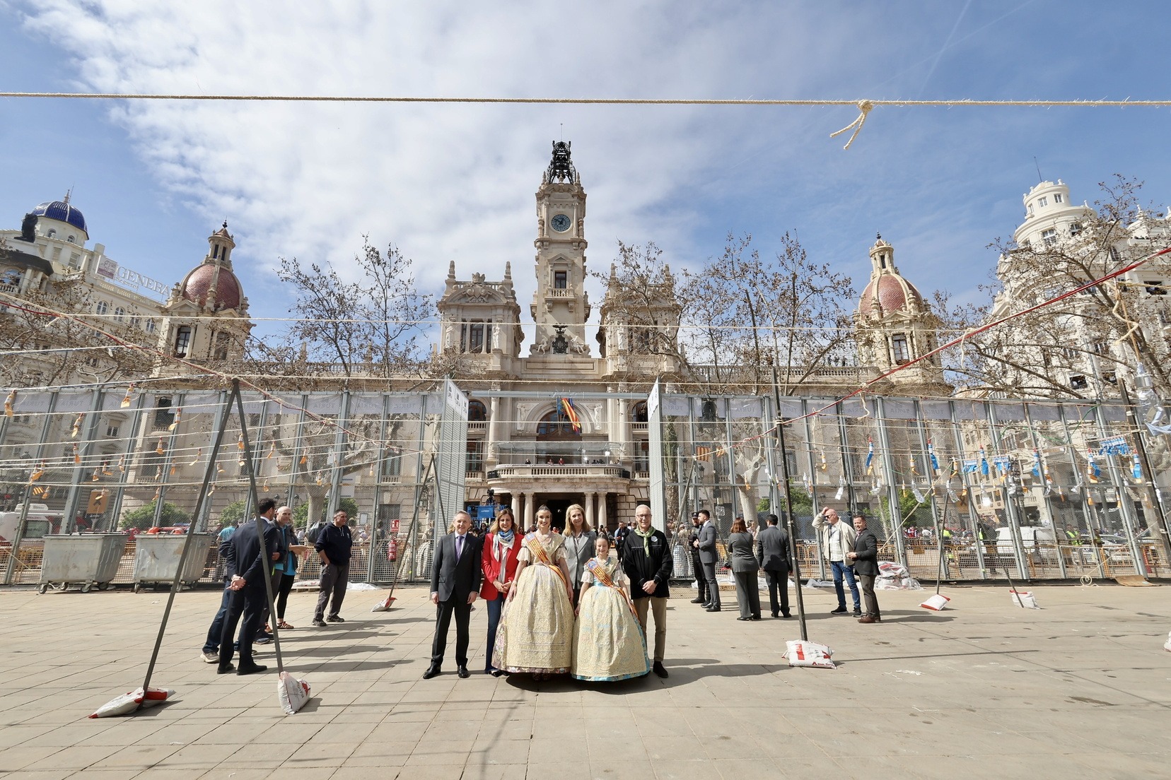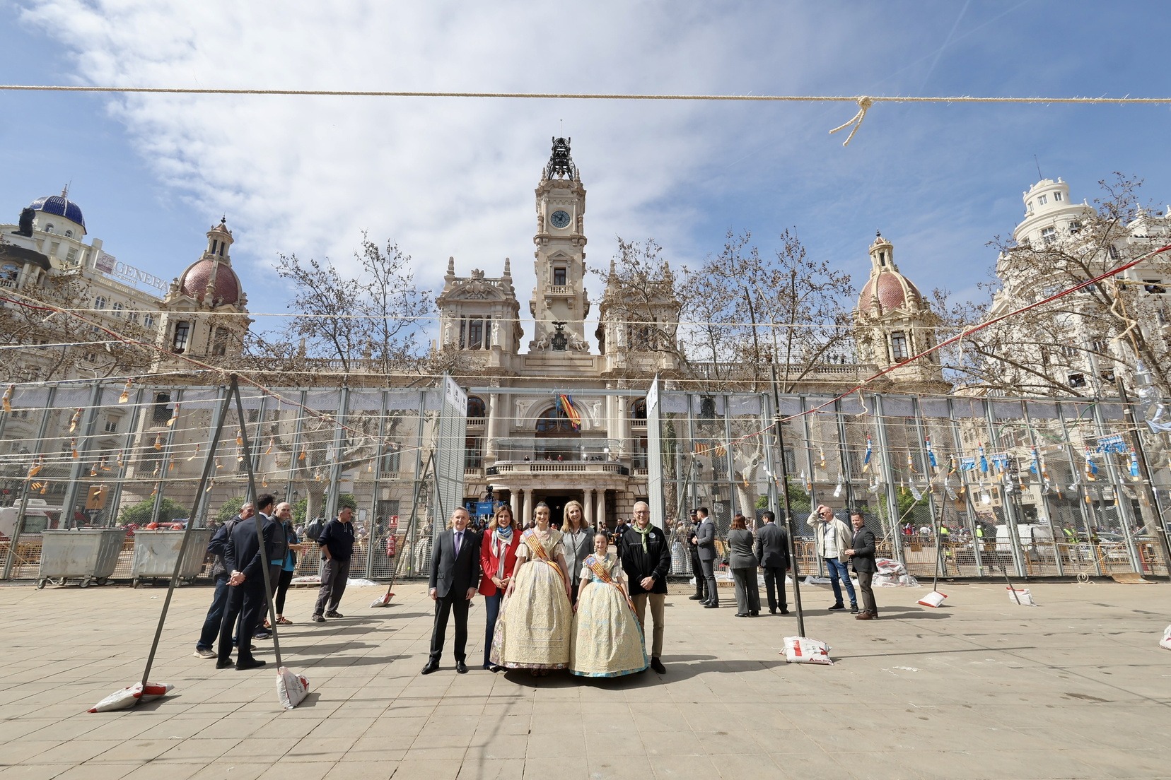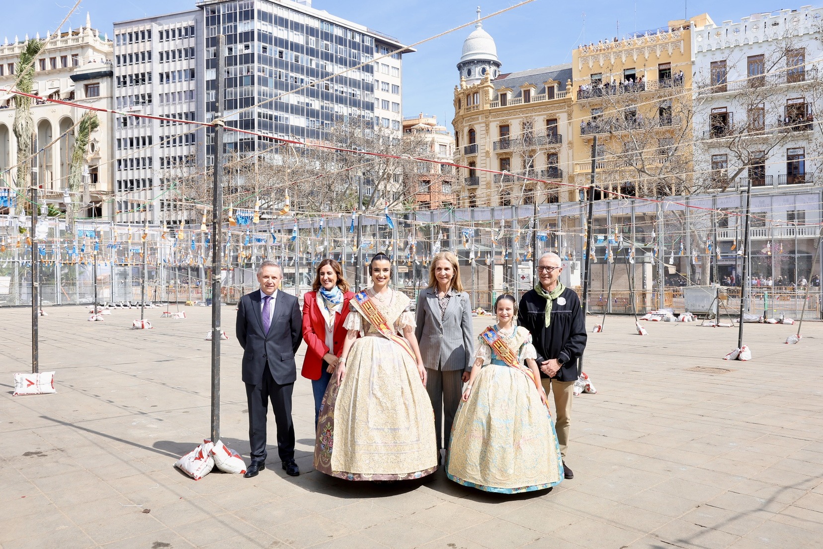 Posteriormente, doña Elena ha tenido la oportunidad de acceder a la zona de disparo para conocer de primera mano el trabajo previo al espectáculo pirotécnico. Allí ha podido ver cómo el equipo de Pirotecnia Tomás ultimaba los preparativos de la mascletà que se ha disparado en la Plaza del Ayuntamiento, una de las citas diarias más esperadas de las Fallas.