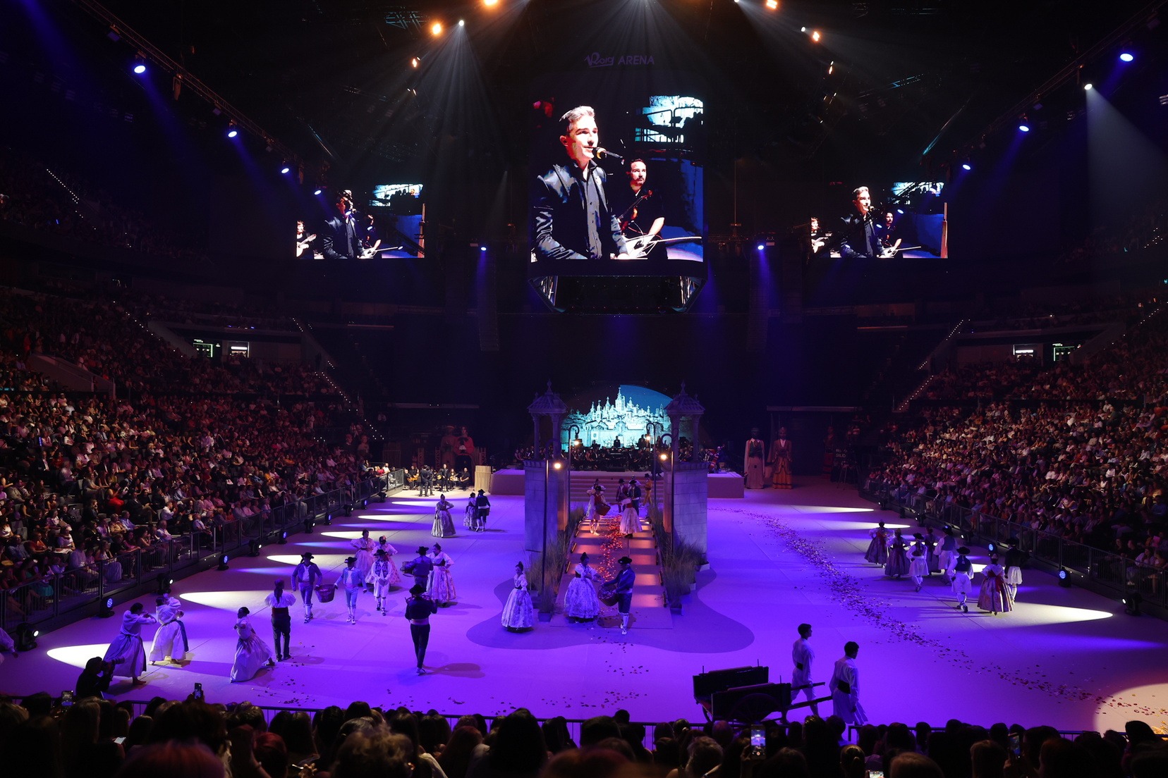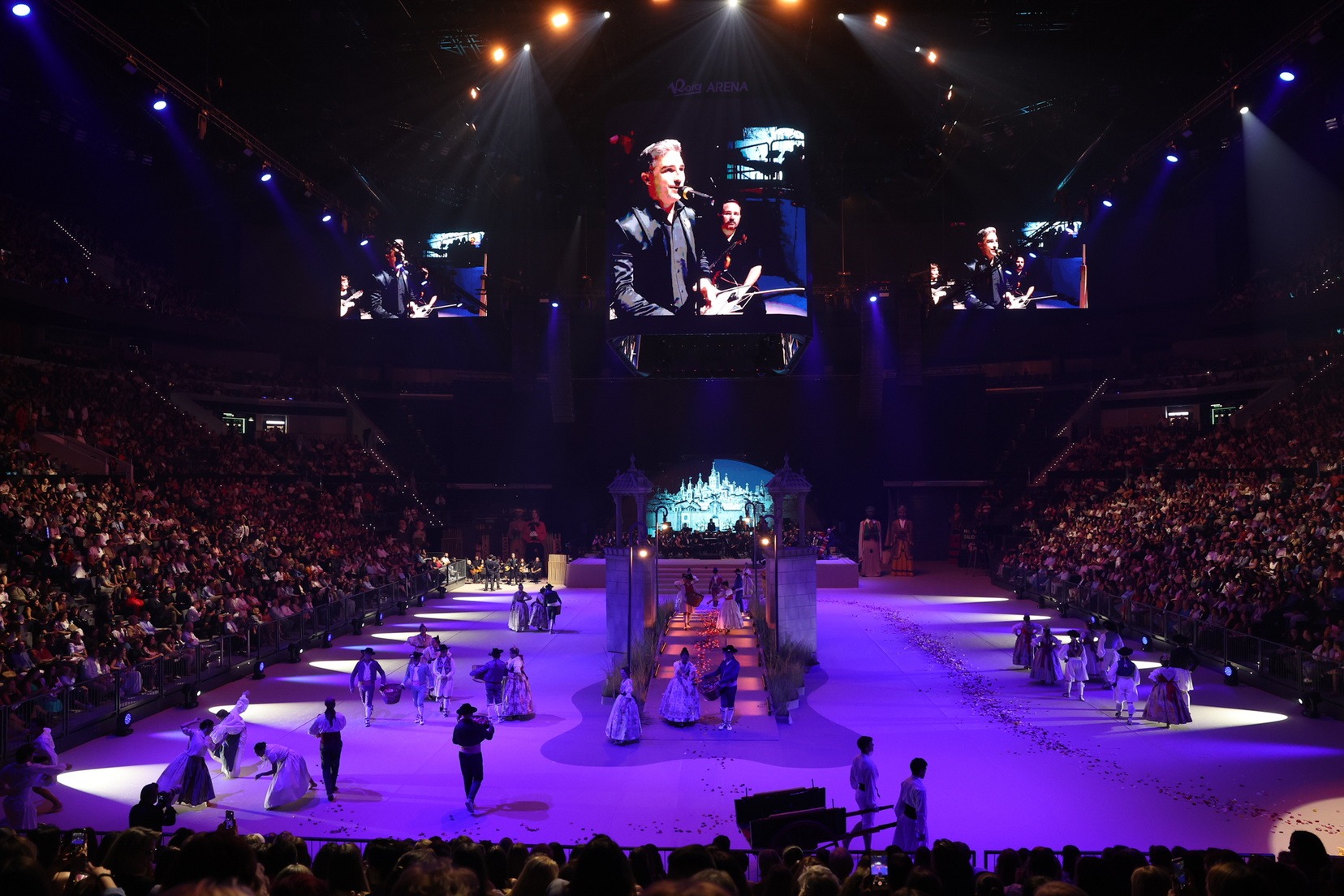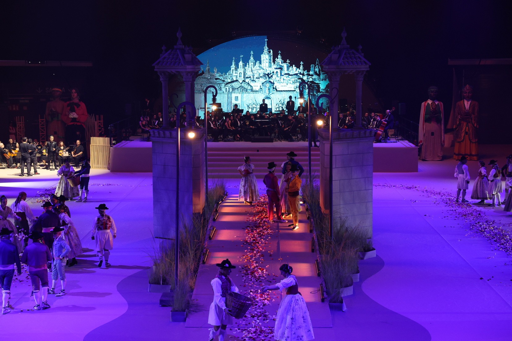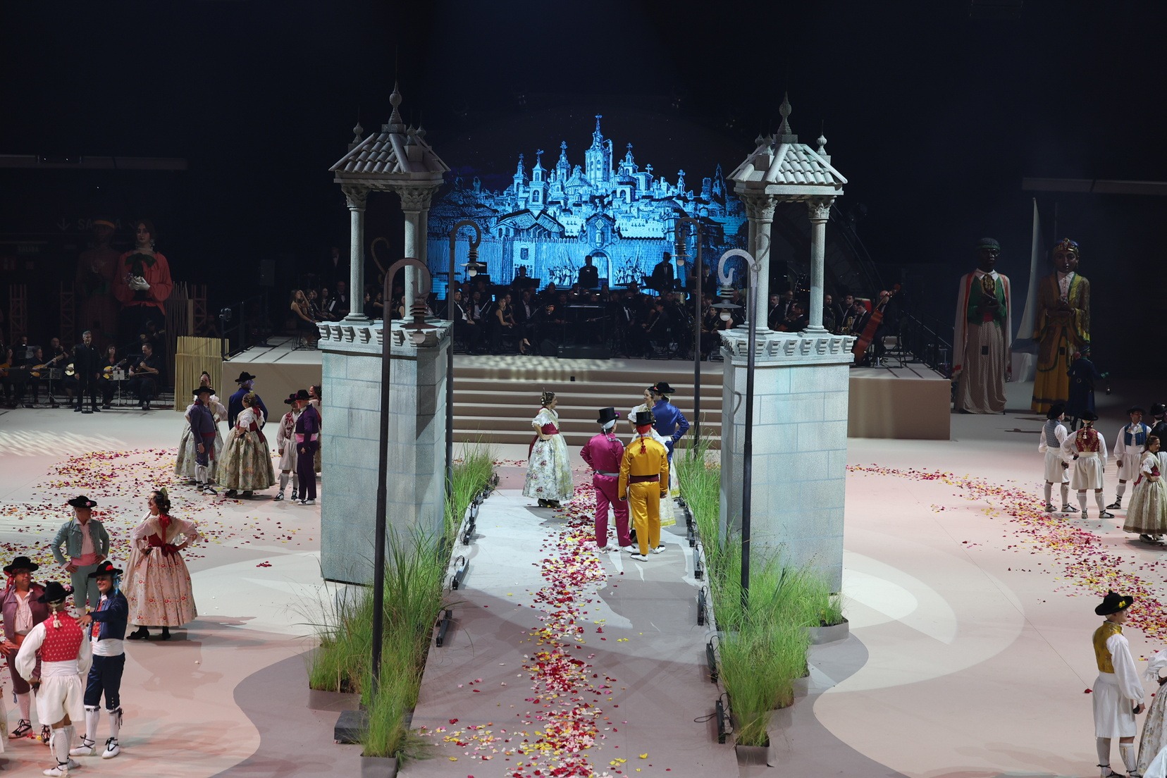 El inicio de este segundo acto ha estado marcado por la presencia del Micalet, que conmemora los 600 años de la finalización del Campanar Nou de la Catedral de Valencia. A continuación, la escena ha trasladado al público al ambiente de la víspera fallera, antes de dar paso a la actuación de Les Folies de Carcaixent y su rondalla, que han ofrecido su talento acompañados por la música tradicional en directo. Uno de los momentos más esperados de la noche ha llegado con el desfile de las 146 candidatas a Falleras Mayores de Valencia 2026, acompañada por una cuidada selección musical dirigida por el maestro Quique Montesinos.