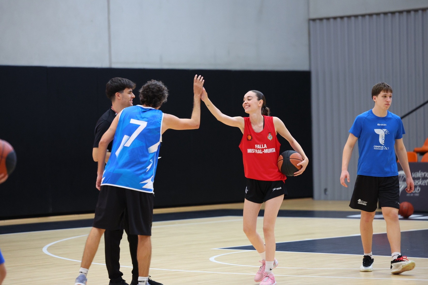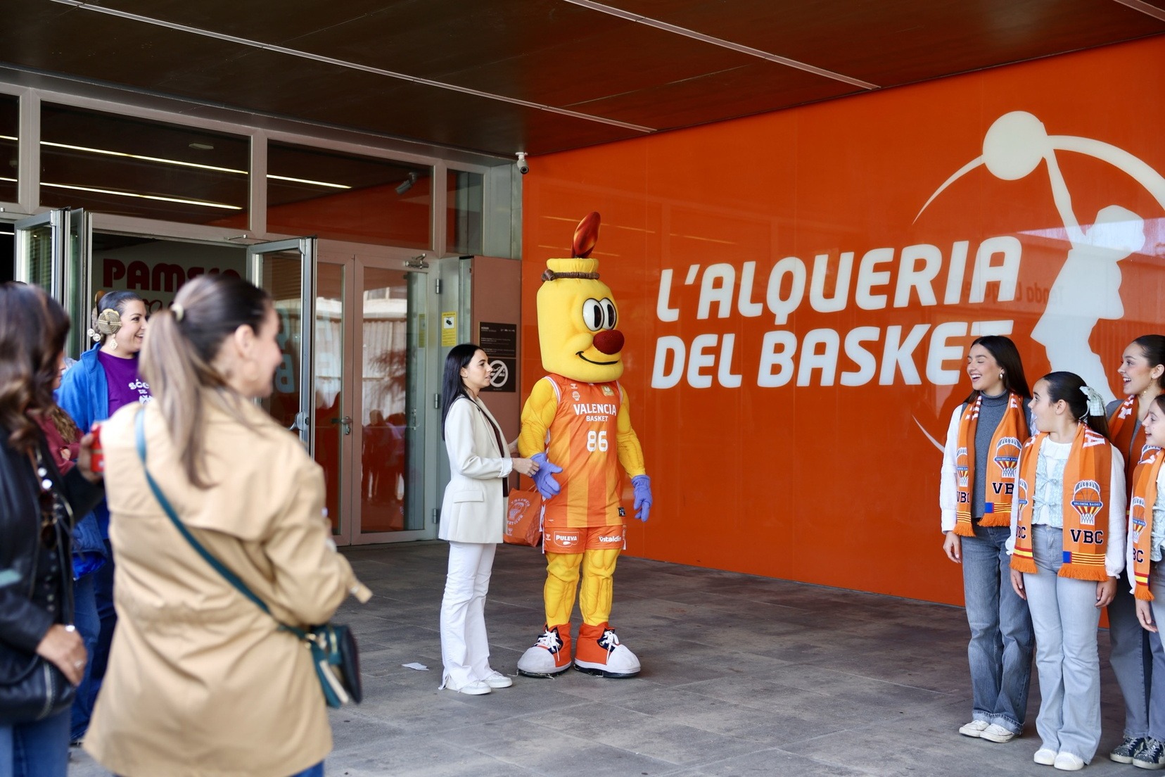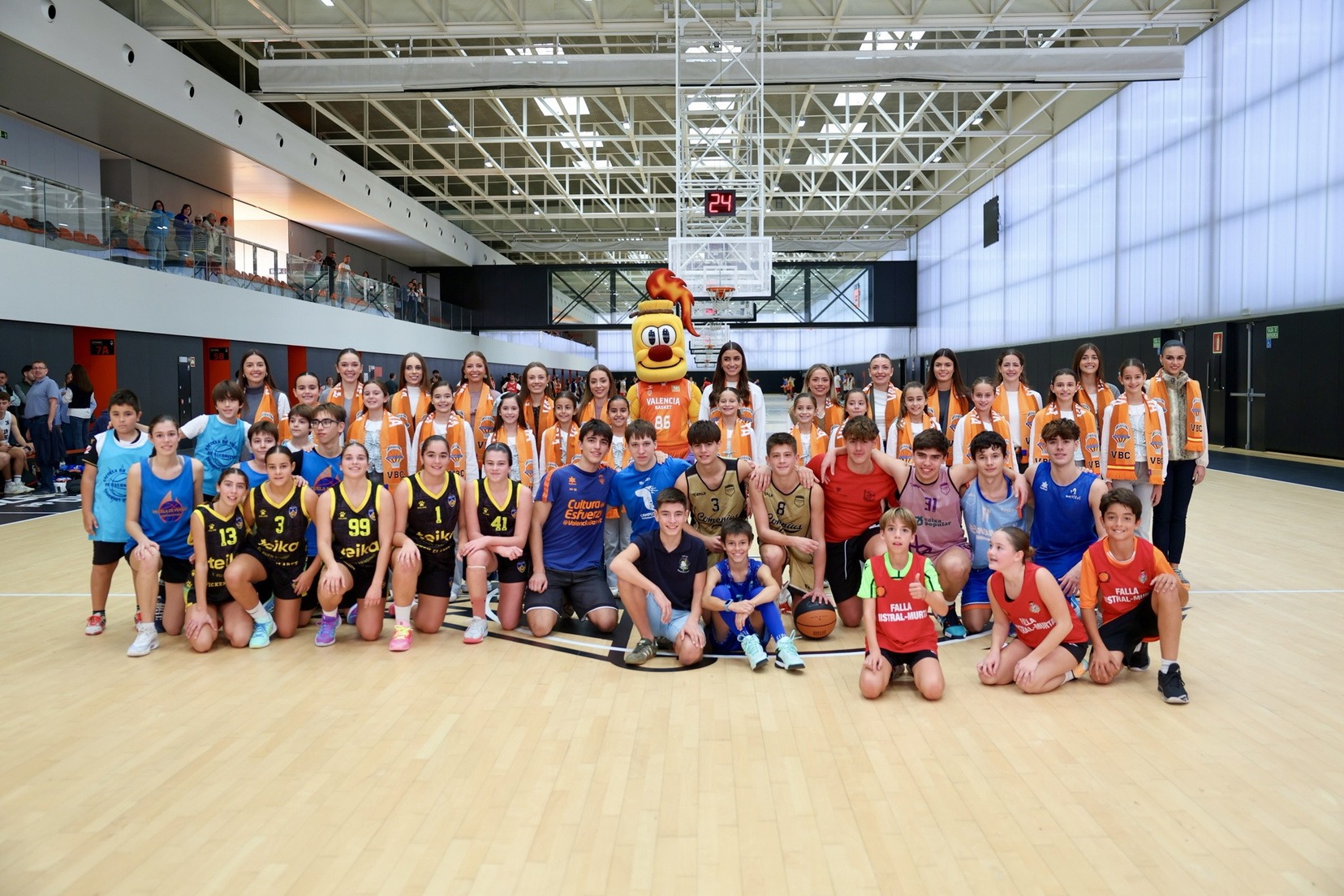 Las Falleras Mayores de Valencia, Marta Mercader y Carmen Prades, junto con sus respectivas Cortes de Honor, tampoco han querido perderse esta cita tan especial. A su llegada han sido recibidas por Pam, la mascota del Valencia Basket, quien les ha obsequiado con una bufanda oficial del club. Tanto Marta como Carmen, acompañadas por sus Cortes de Honor, han recorrido las instalaciones saludando a los equipos participantes, conversando con ellos y haciéndose fotografías que, sin duda, guardarán con mucho cariño.
