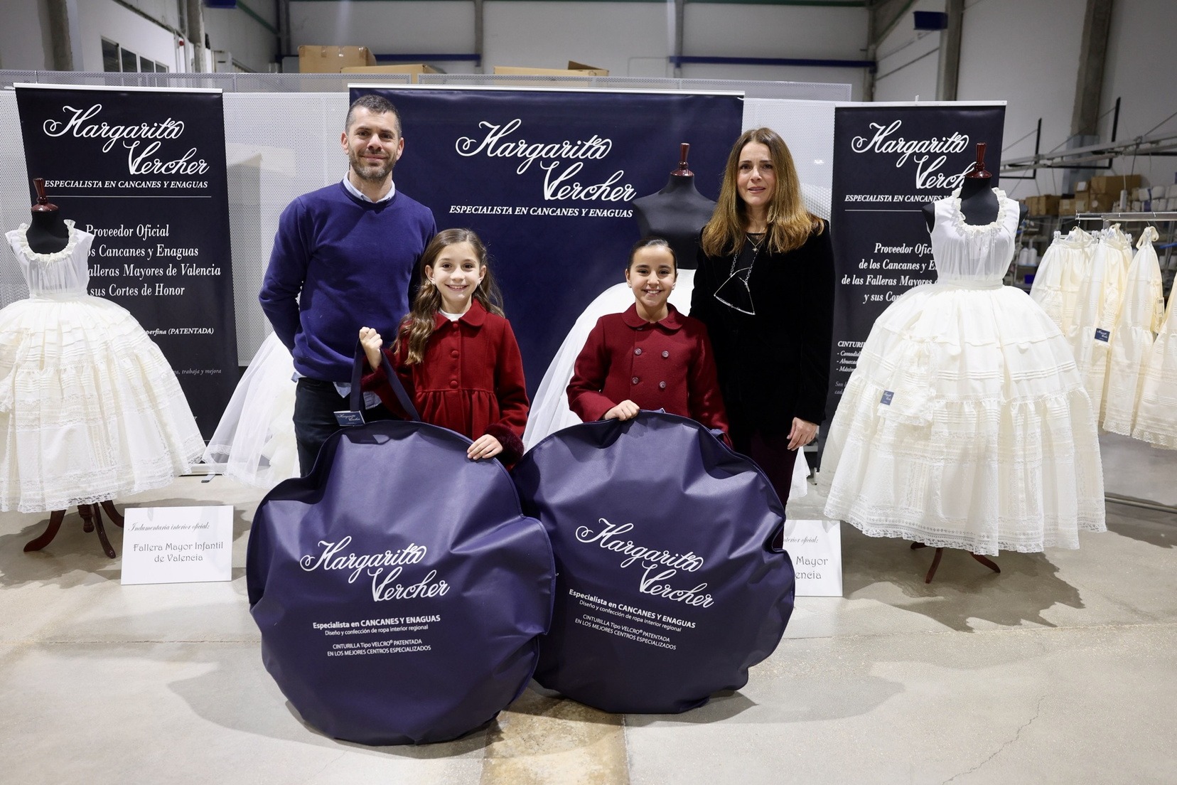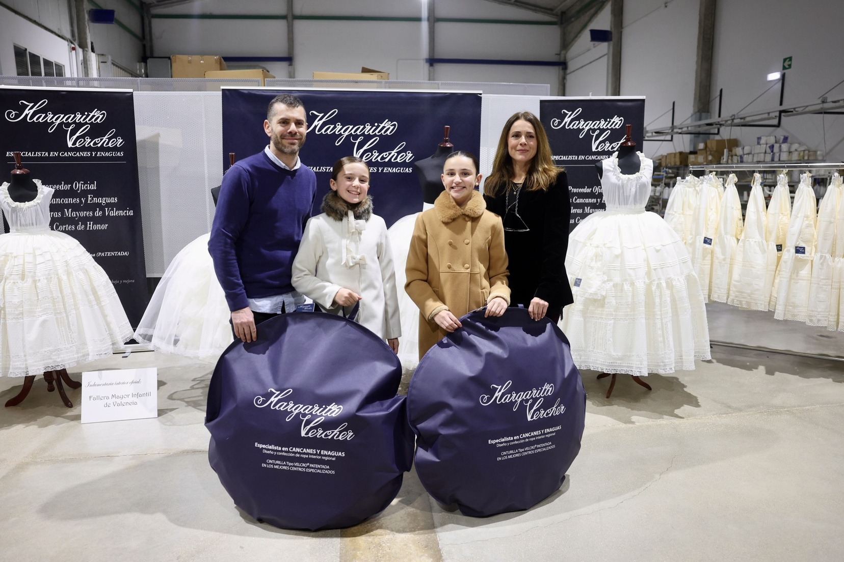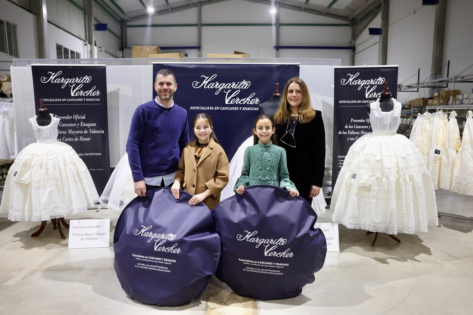 La firma Margarita Vercher ha realizado la entrega oficial de los cancanes del primer traje a las Falleras Mayores de Valencia, Carmen y Marta, junto a sus Cortes de Honor, en un acto que ha supuesto un paso fundamental en la preparación de la indumentaria que lucirán a lo largo de su mandato.