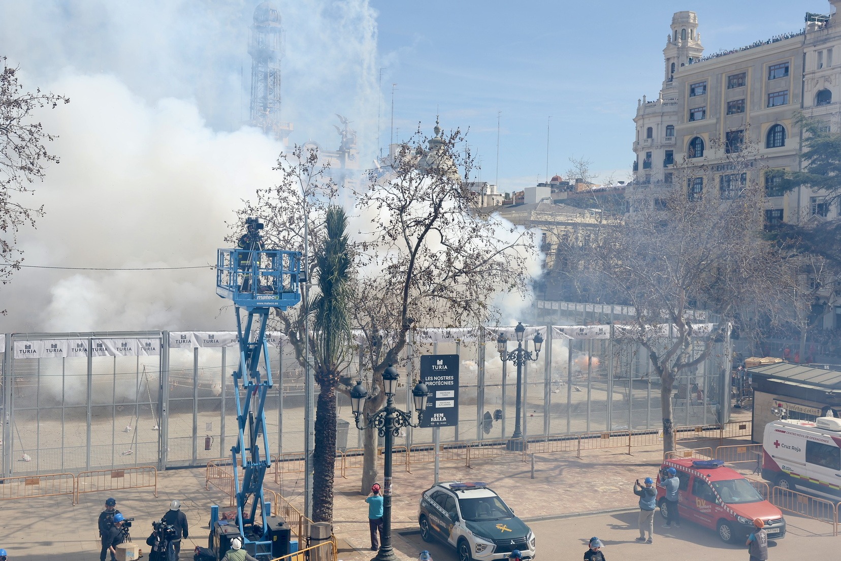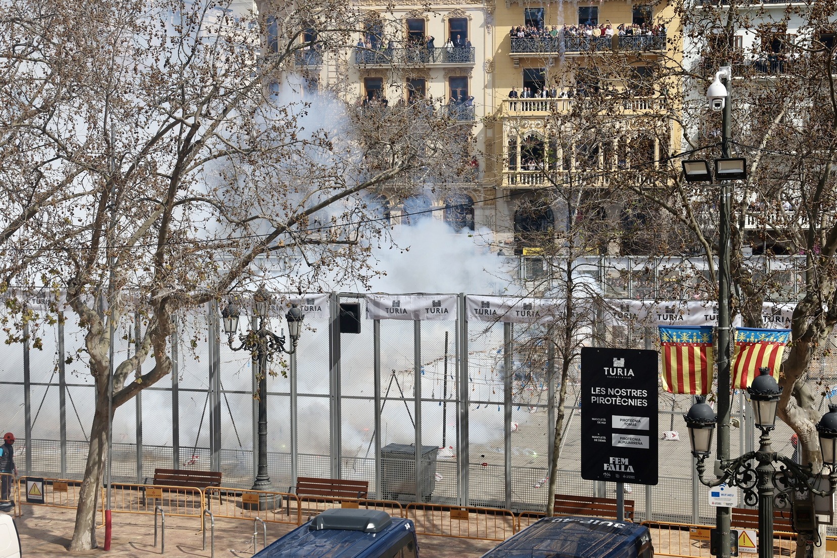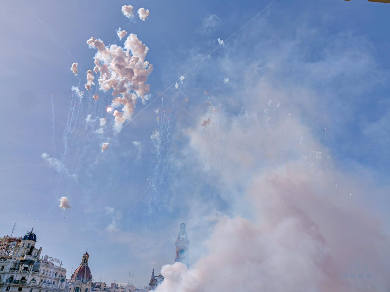 ‘Sentiment de tradició’ es el nombre de esta mascletà de 132Kg de material explosivo que ha comenzado con traca valenciana, truenos, volcanes y dos fases de fuego aéreo combinado.