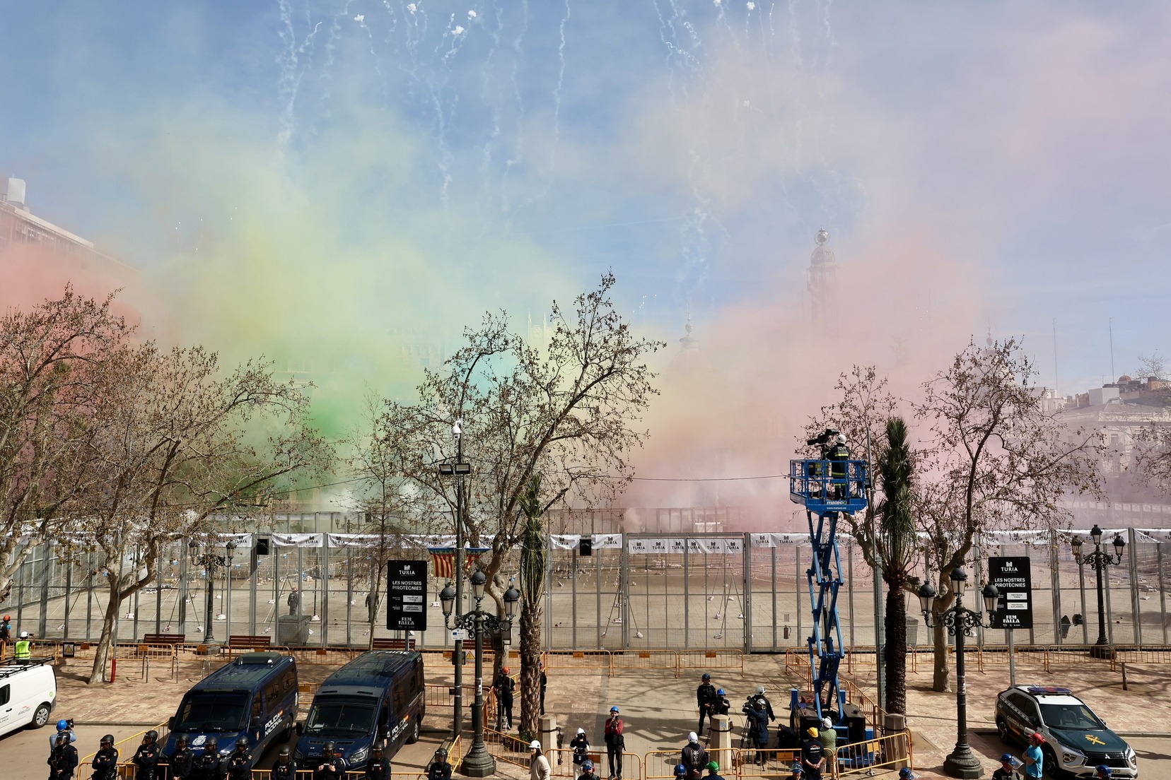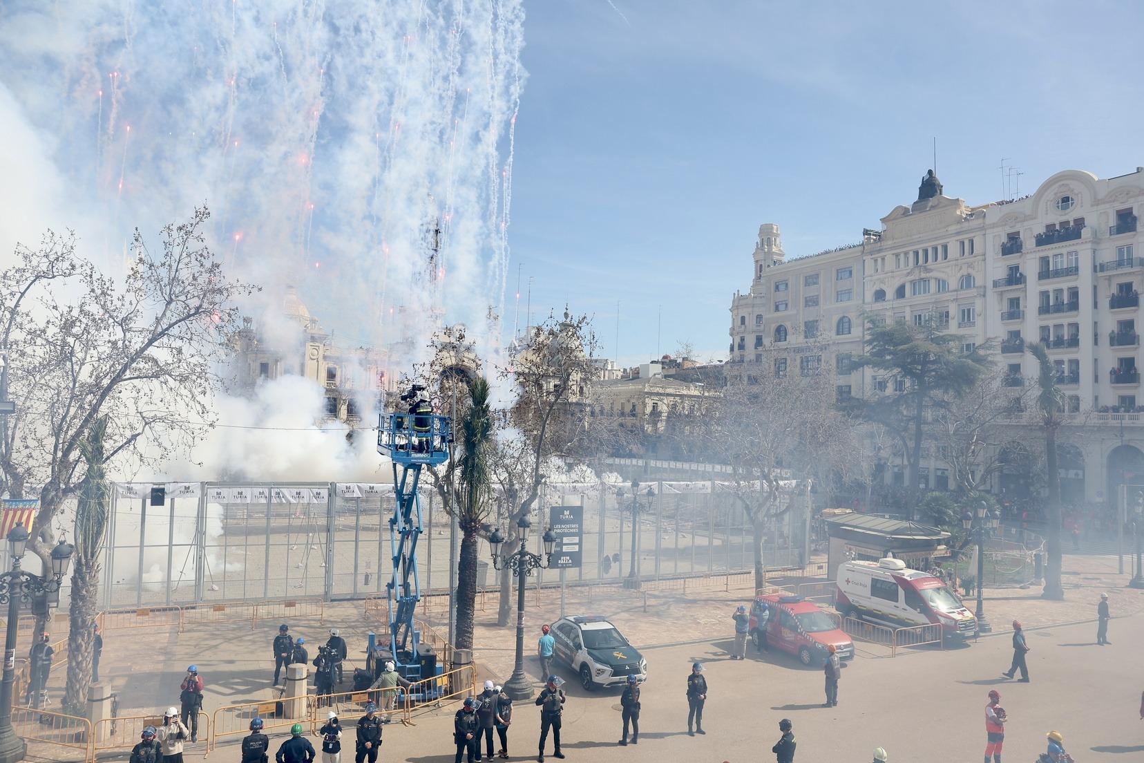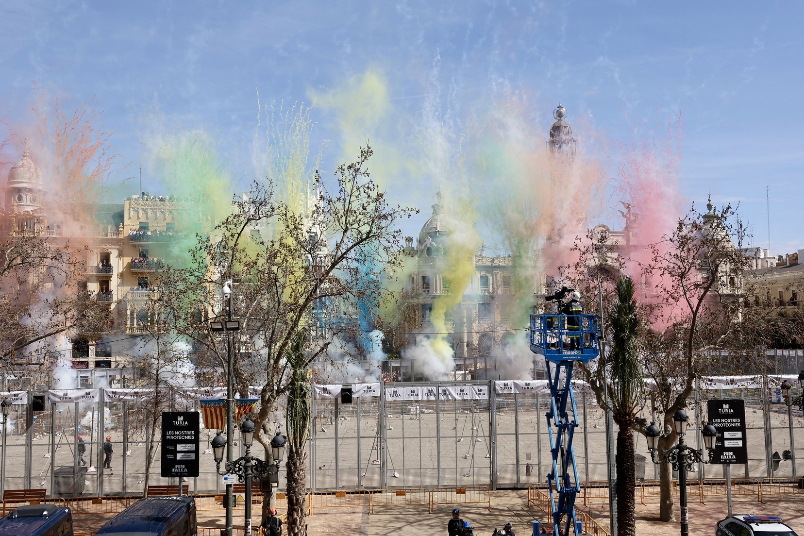 ‘Sentiment de tradició’ es el nombre de esta mascletà de 132Kg de material explosivo que ha comenzado con traca valenciana, truenos, volcanes y dos fases de fuego aéreo combinado.