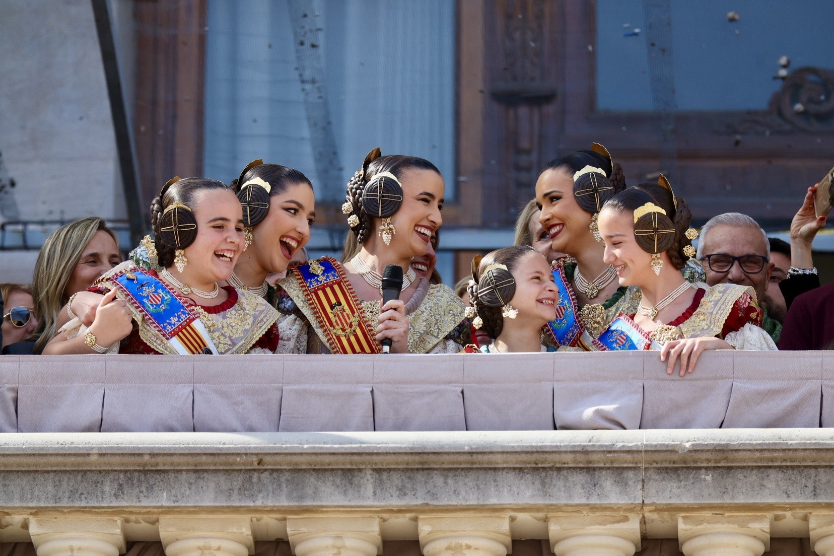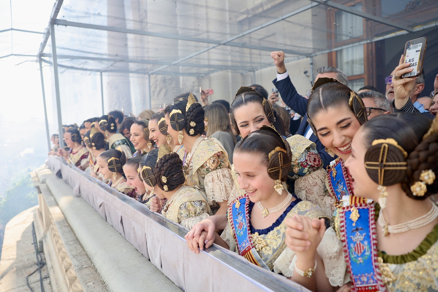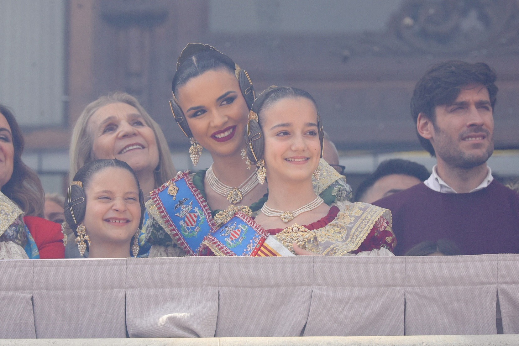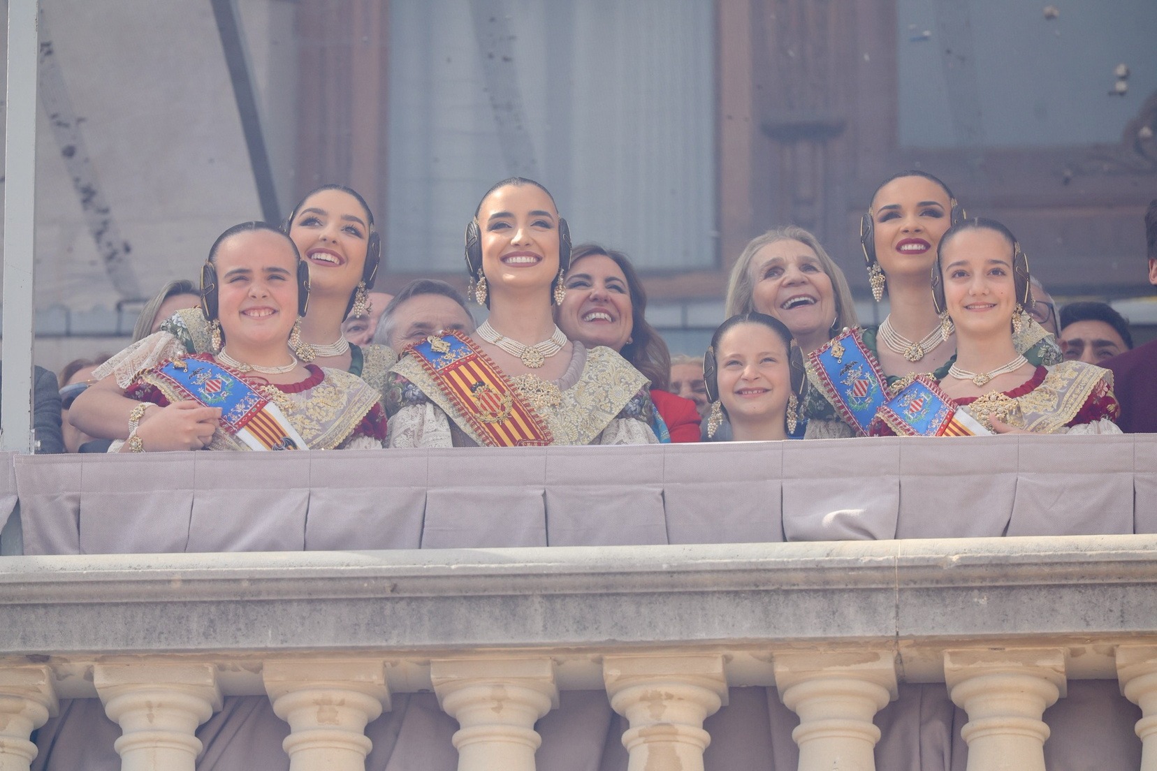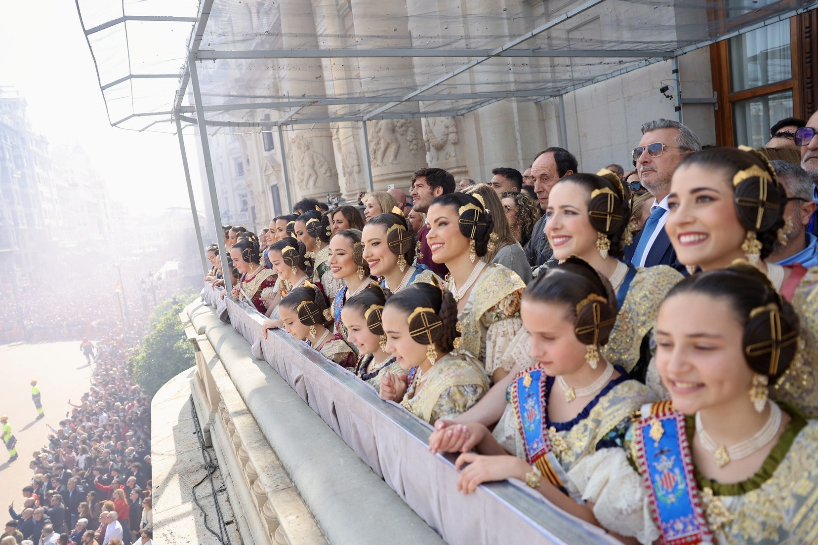 En el Balcón del Ayuntamiento, las Falleras Mayores de Valencia, Carmen Prades y Marta Mercader, acompañadas por sus Cortes de Honor, de la alcaldesa de nuestra ciudad, María José Catalá, y de Santiago Ballester, concejal de Fallas y presidente de Junta Central Fallera, han vivido con mucha intensidad este ‘Sentiment de tradició’ y, de nuevo, han disfrutado del arte de la pirotecnia.