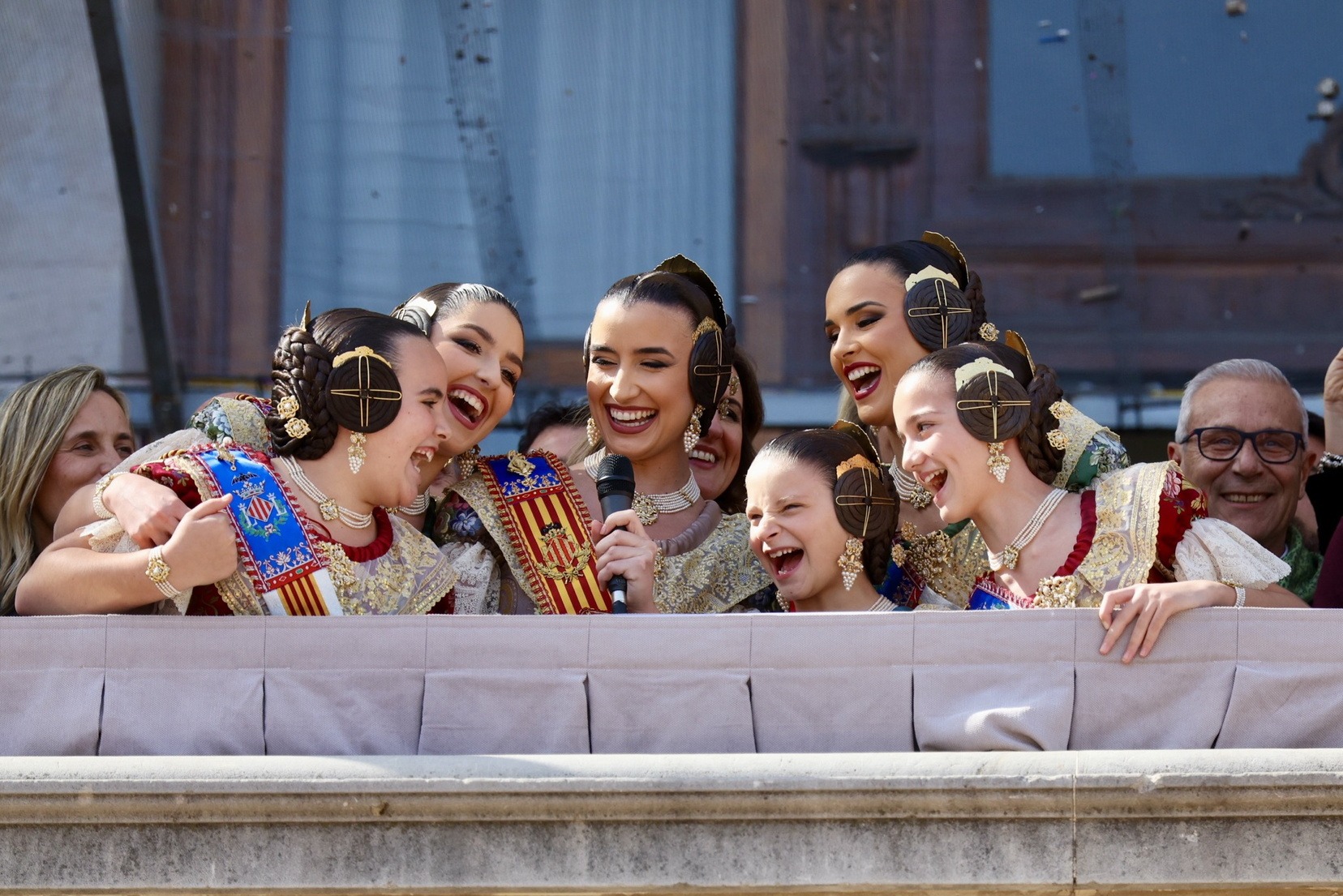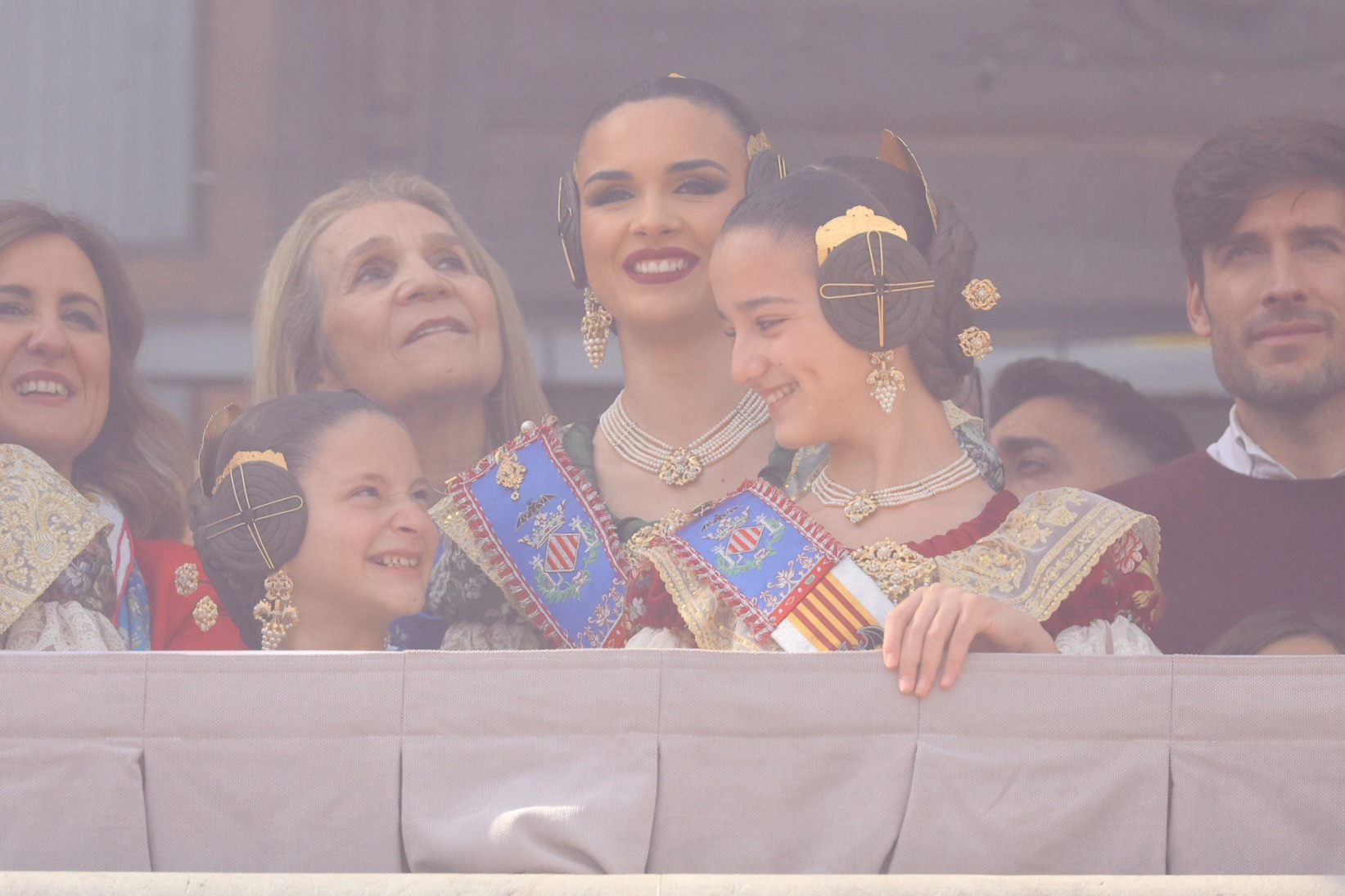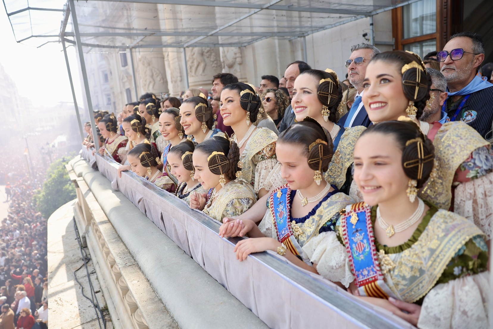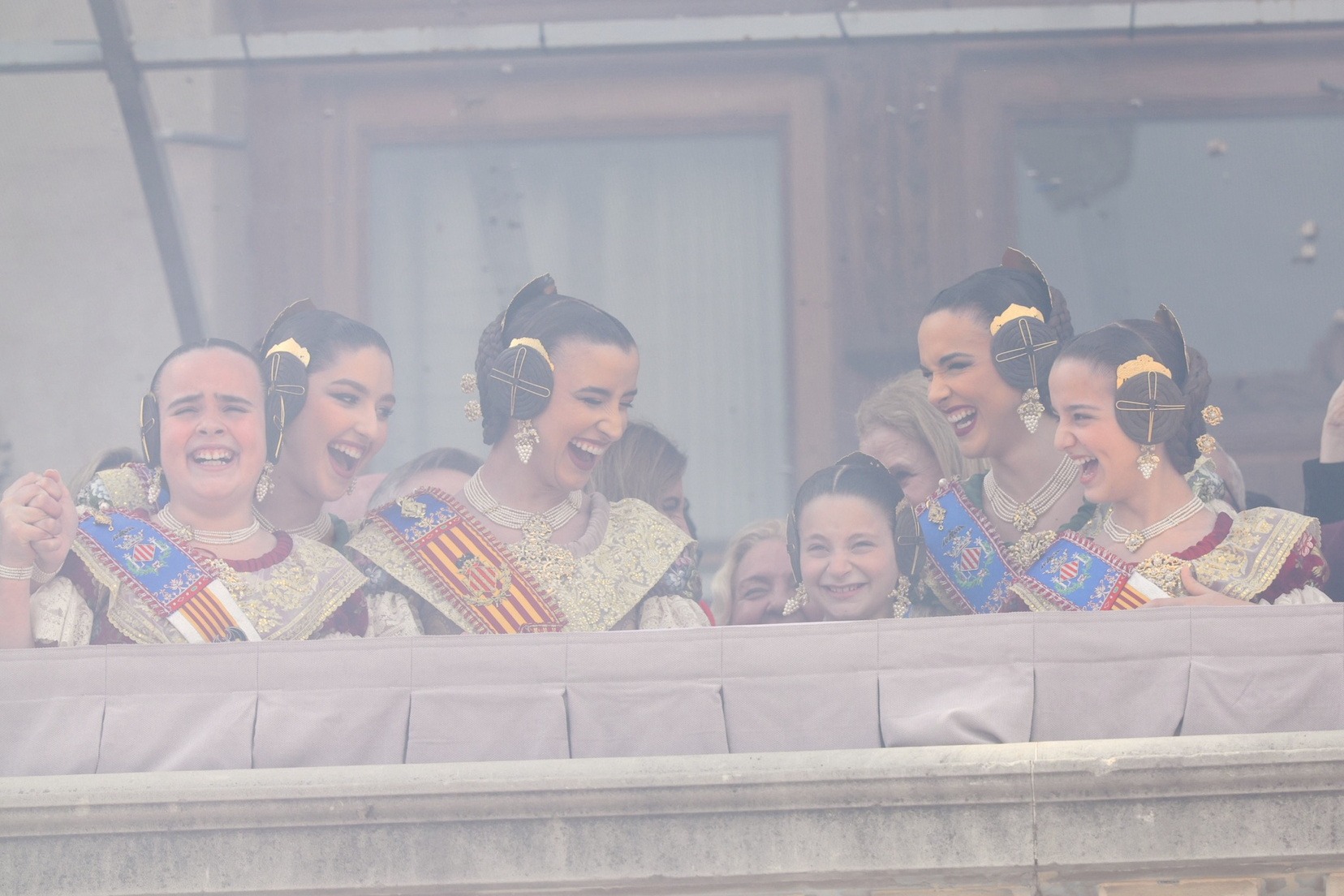 En el Balcón del Ayuntamiento, las Falleras Mayores de Valencia, Carmen Prades y Marta Mercader, acompañadas por sus Cortes de Honor, de la alcaldesa de nuestra ciudad, María José Catalá, y de Santiago Ballester, concejal de Fallas y presidente de Junta Central Fallera, han vivido con mucha intensidad este ‘Sentiment de tradició’ y, de nuevo, han disfrutado del arte de la pirotecnia.