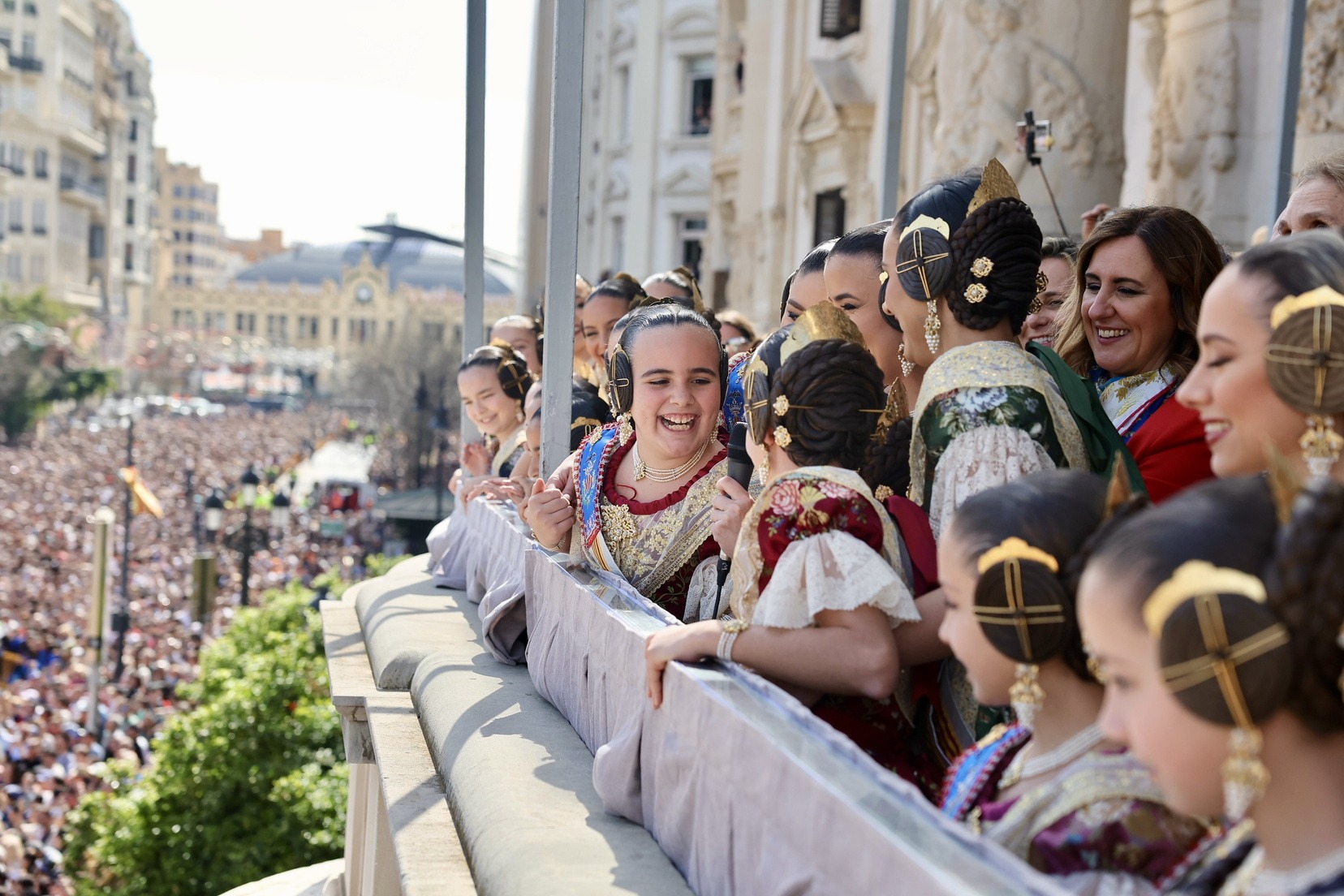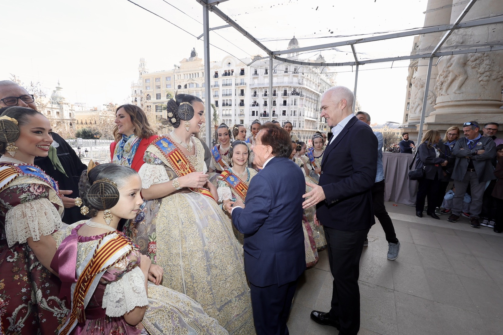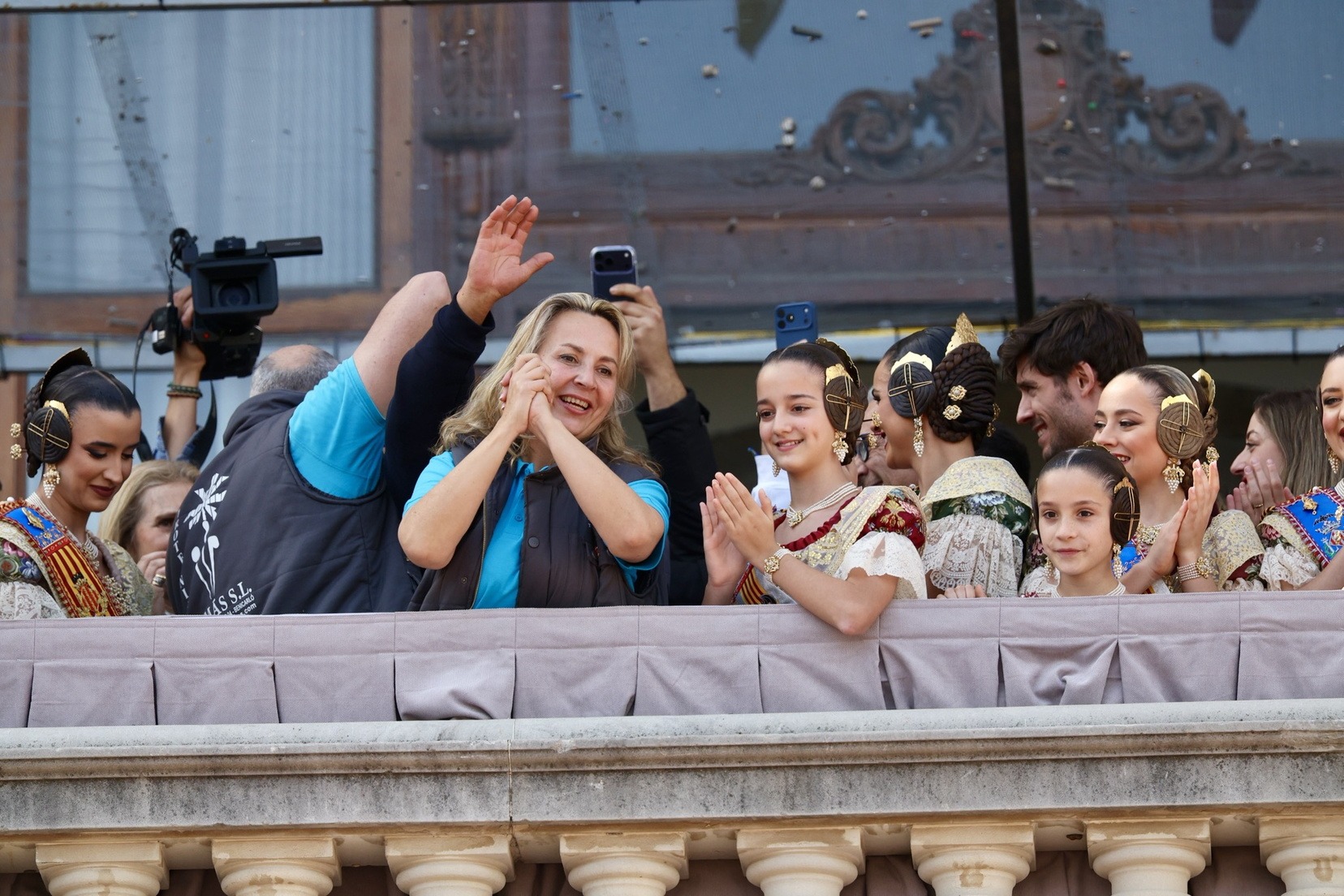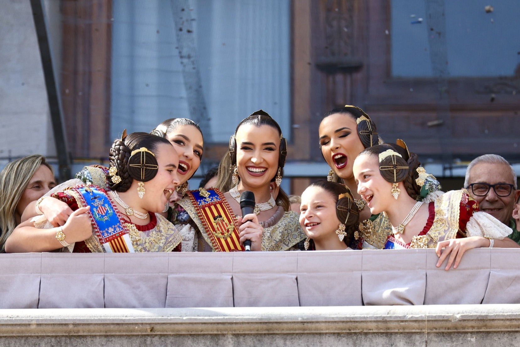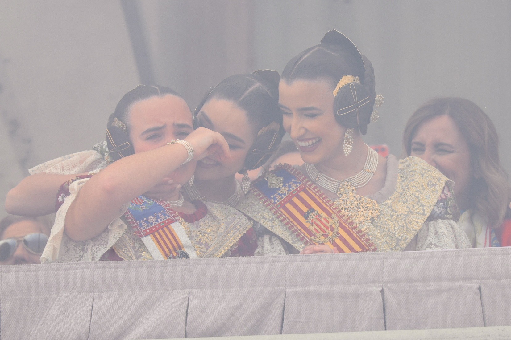 En el Balcón del Ayuntamiento, las Falleras Mayores de Valencia, Carmen Prades y Marta Mercader, acompañadas por sus Cortes de Honor, de la alcaldesa de nuestra ciudad, María José Catalá, y de Santiago Ballester, concejal de Fallas y presidente de Junta Central Fallera, han vivido con mucha intensidad este ‘Sentiment de tradició’ y, de nuevo, han disfrutado del arte de la pirotecnia.