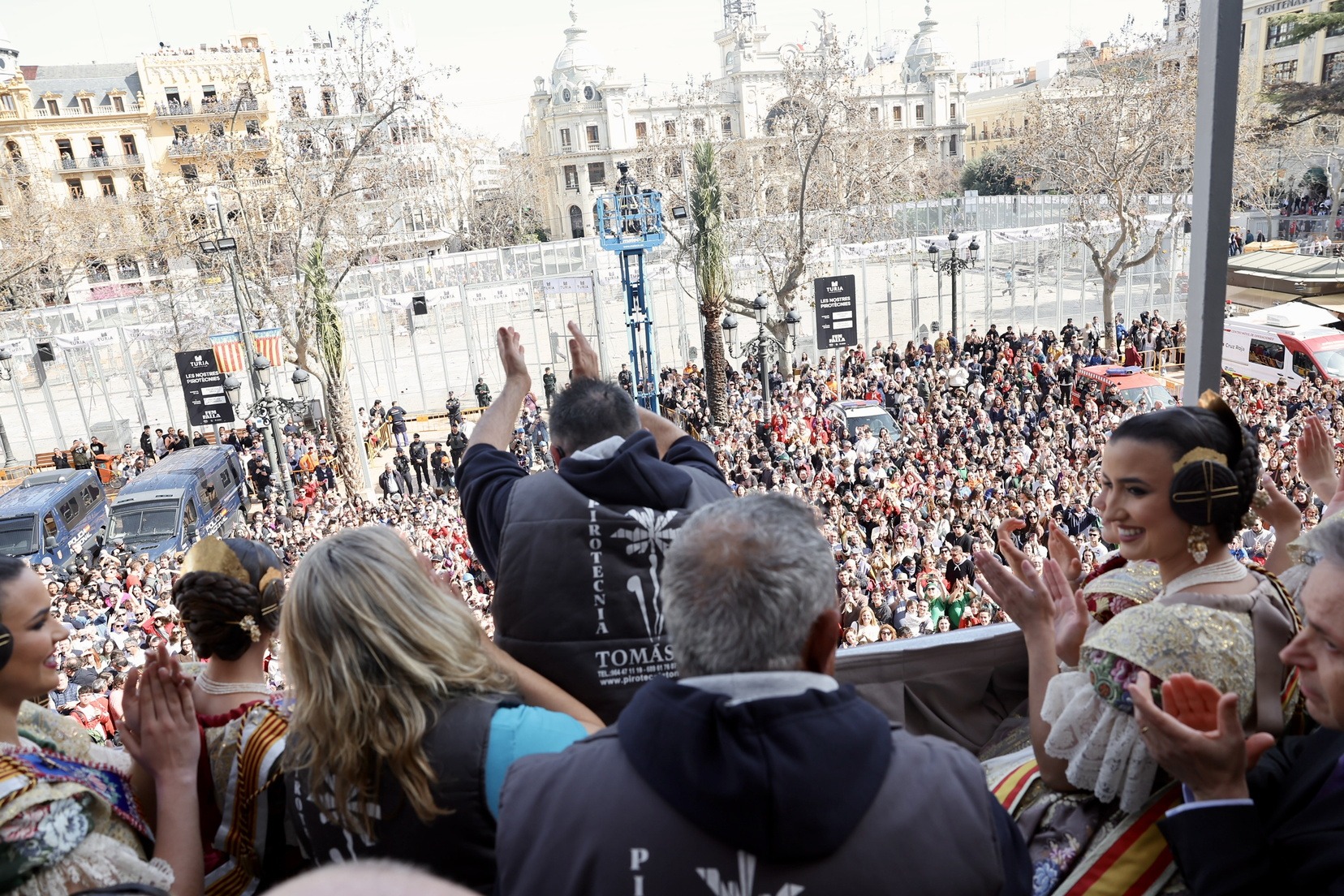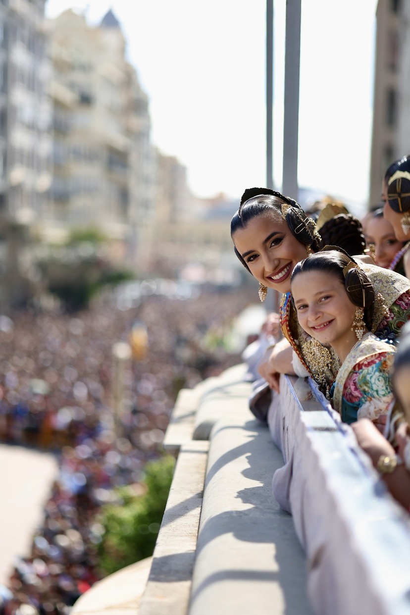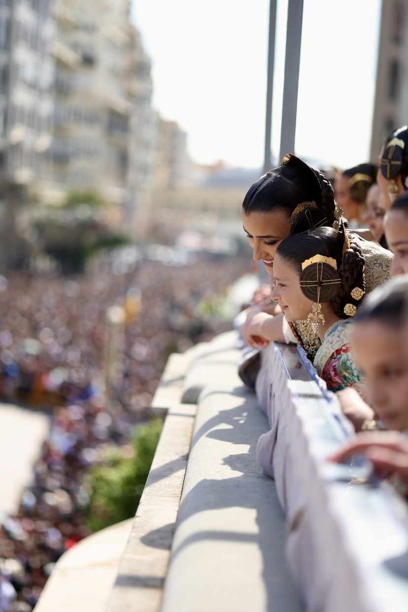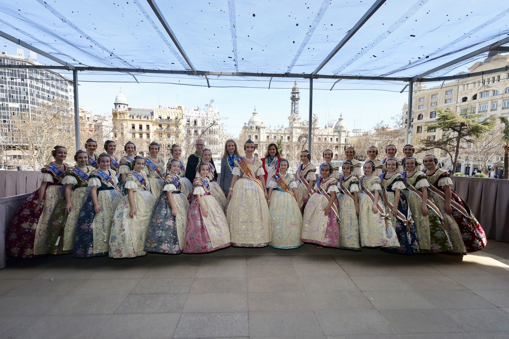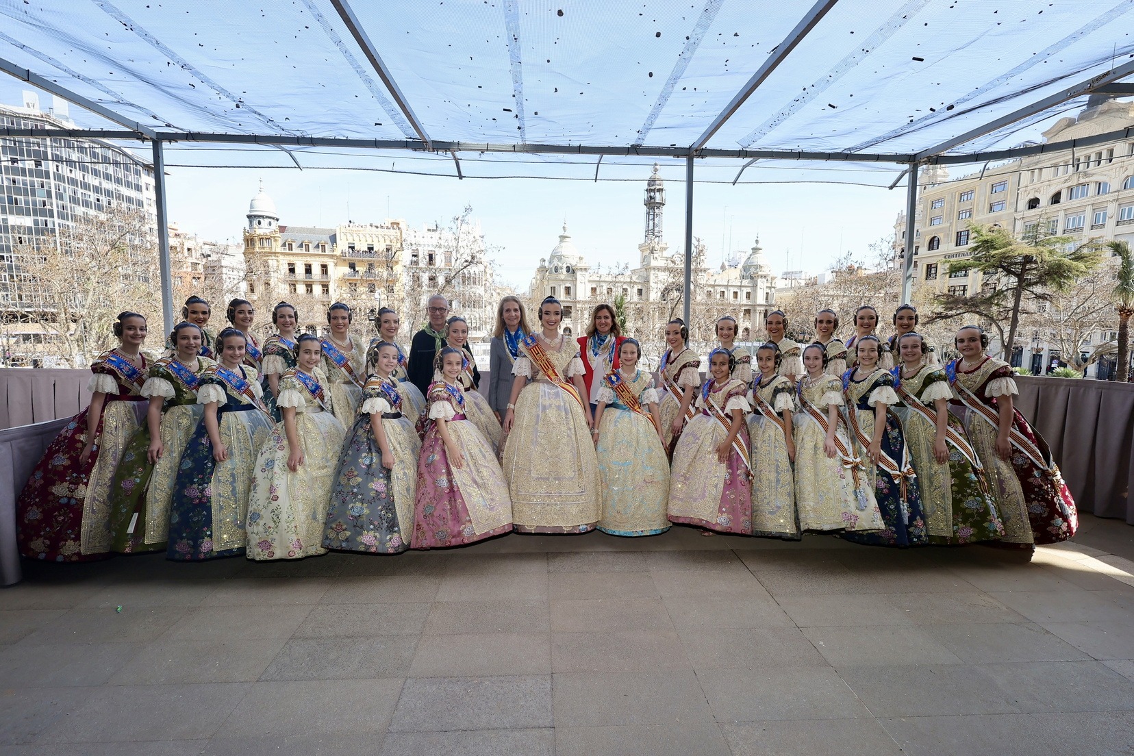 En el Balcón del Ayuntamiento, las Falleras Mayores de Valencia, Carmen Prades y Marta Mercader, acompañadas por sus Cortes de Honor, de la alcaldesa de nuestra ciudad, María José Catalá, y de Santiago Ballester, concejal de Fallas y presidente de Junta Central Fallera, han vivido con mucha intensidad este ‘Sentiment de tradició’ y, de nuevo, han disfrutado del arte de la pirotecnia.