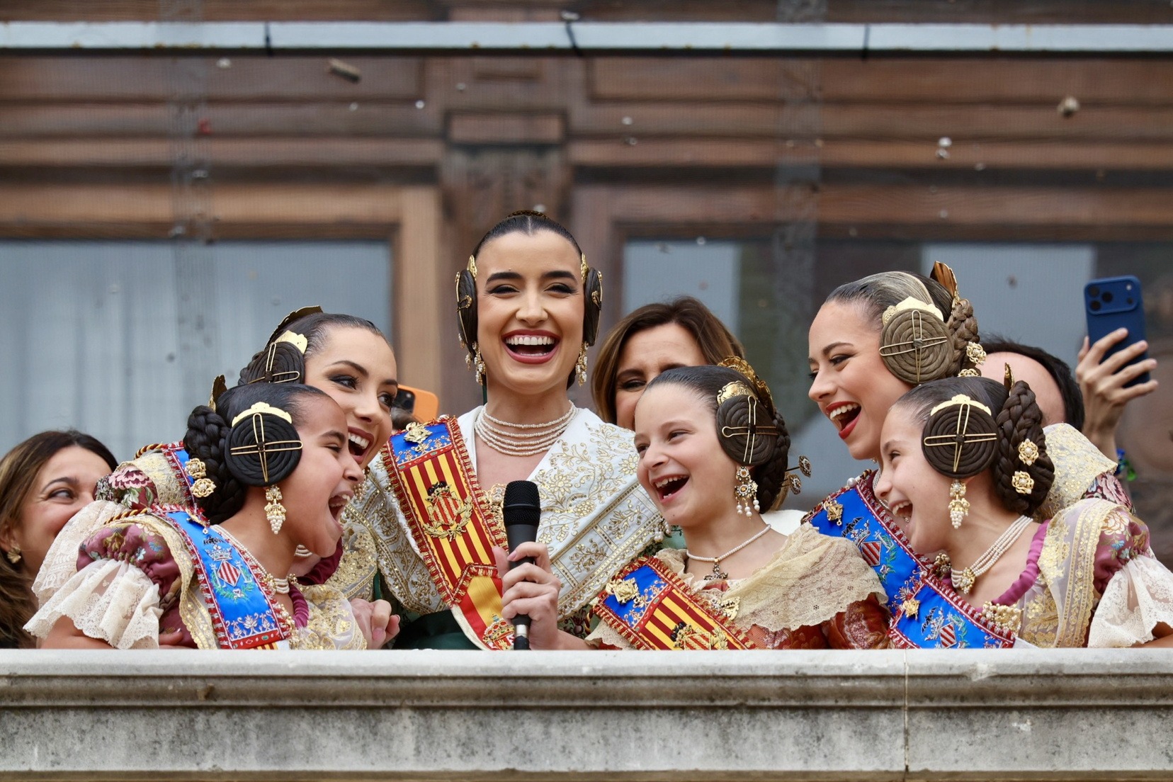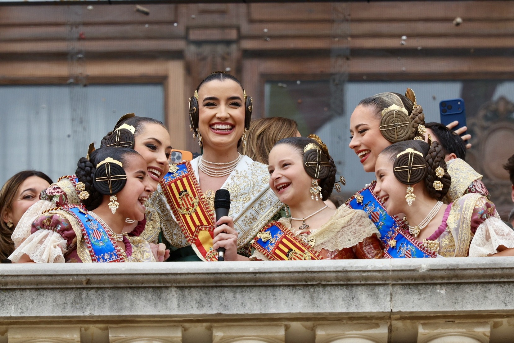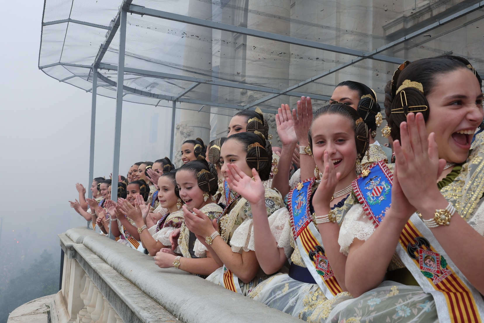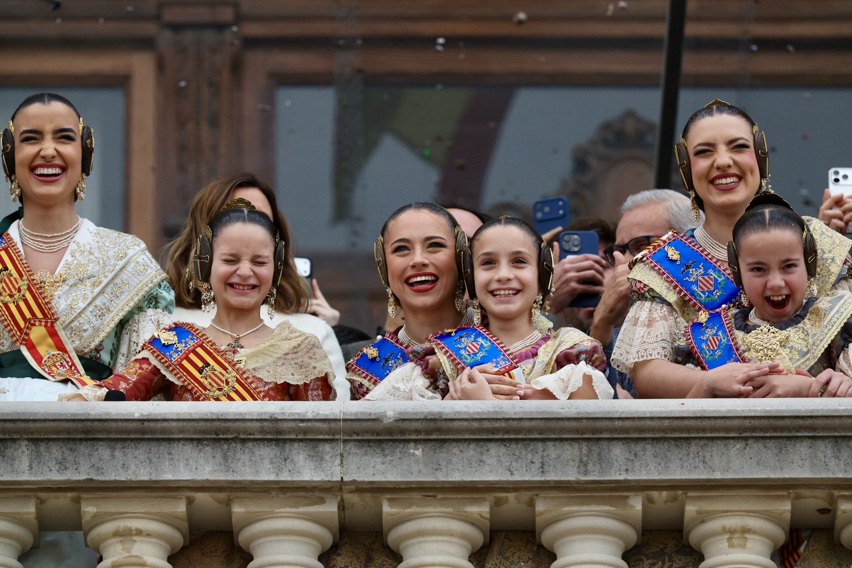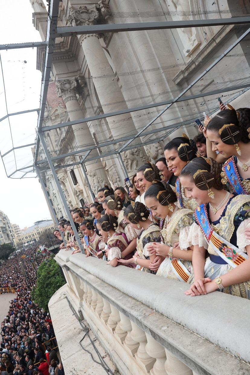 En el Balcón del Ayuntamiento, las Falleras Mayores de Valencia, Carmen Prades y Marta Mercader, han vivido con mucha emoción esta cuarta mascletà de marzo, acompañadas por sus Cortes de Honor y de la alcaldesa de nuestra ciudad, María José Catalá, y Santi Ballester, concejal de Fallas y presidente de Junta Central Fallera.