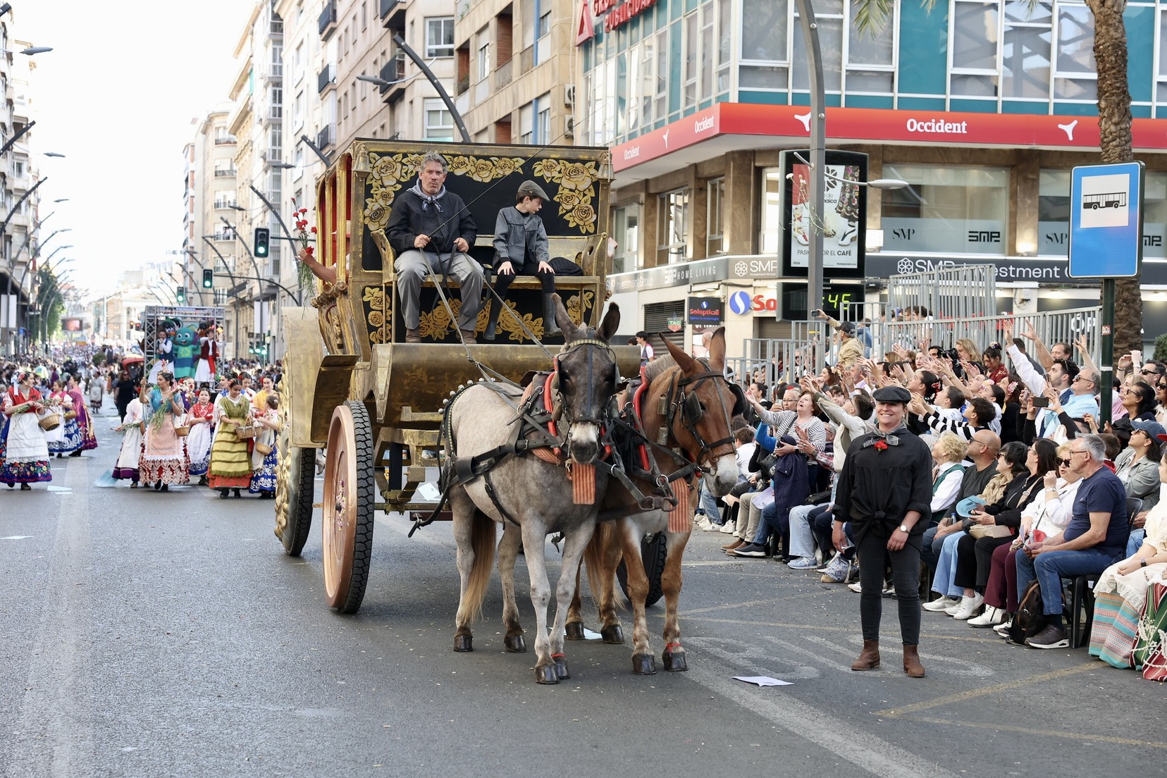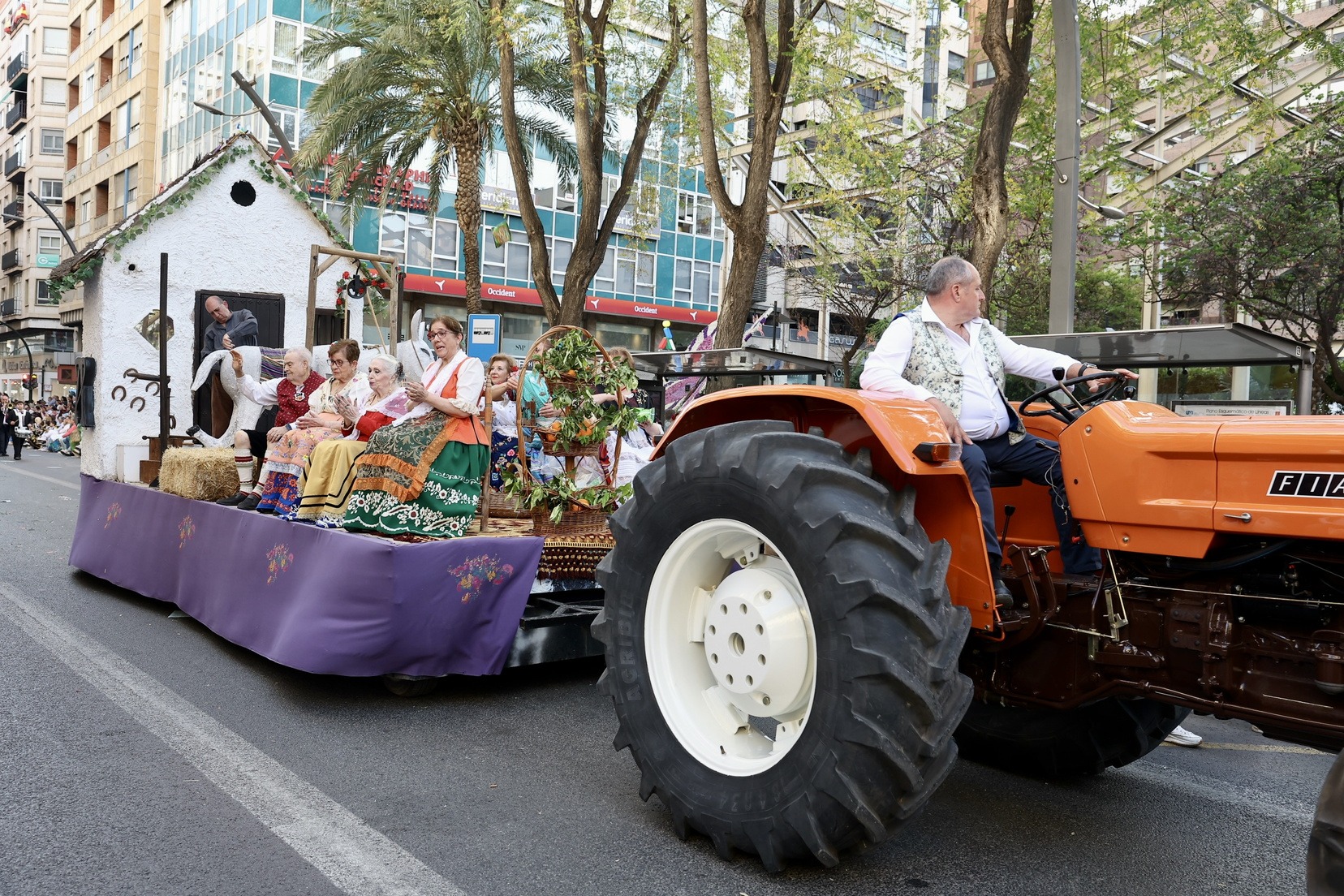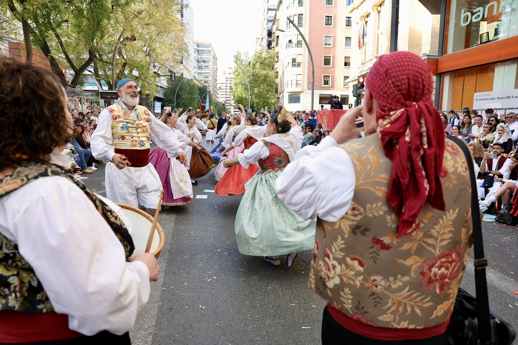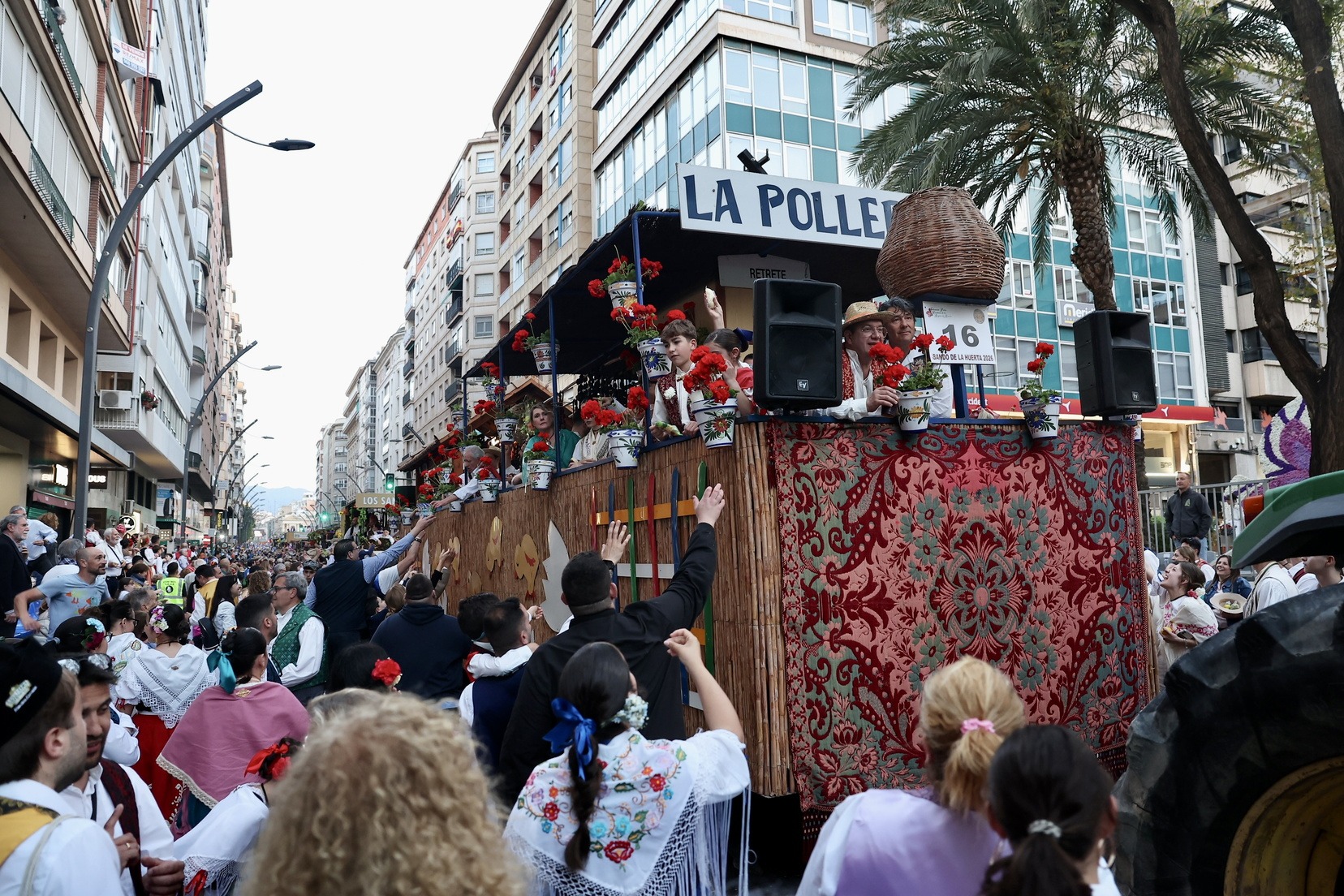 La apertura del desfile ha corrido a cargo de la Unidad de Música del Mando Aéreo vinculada a la Academia General del Aire y del Espacio. A continuación, bandas de música, gigantes y cabezudos, grupos de danzas y todas las carrozas que, como cada año, han llenado las calles de la ciudad de folklore, cultura y tradición, mostrando escenas cotidianas de la huerta y sus oficios típicos.
