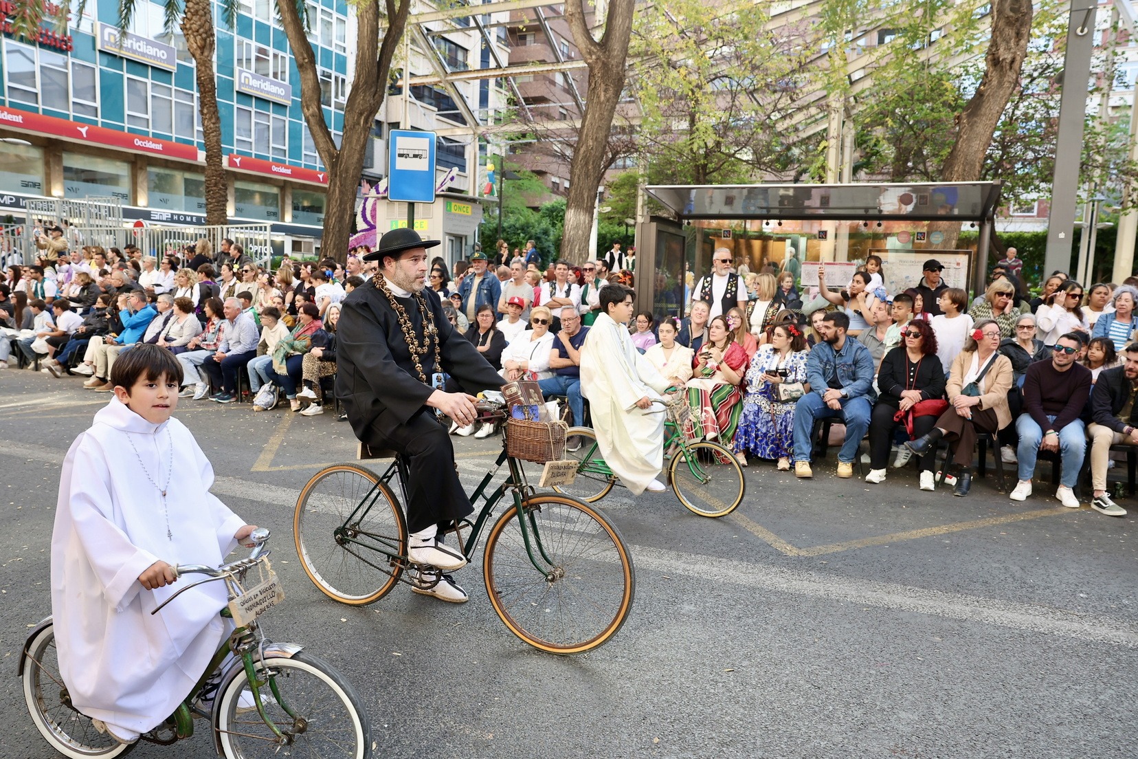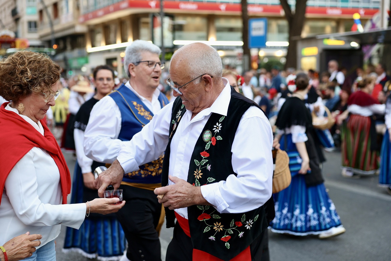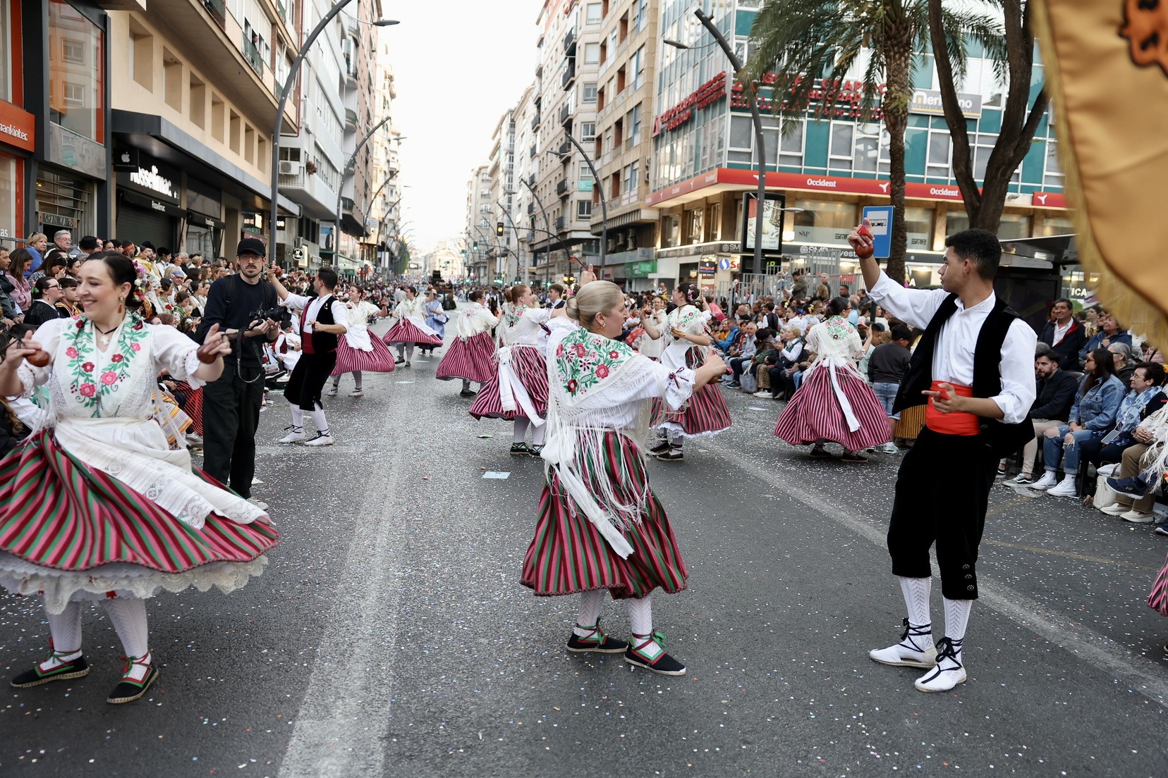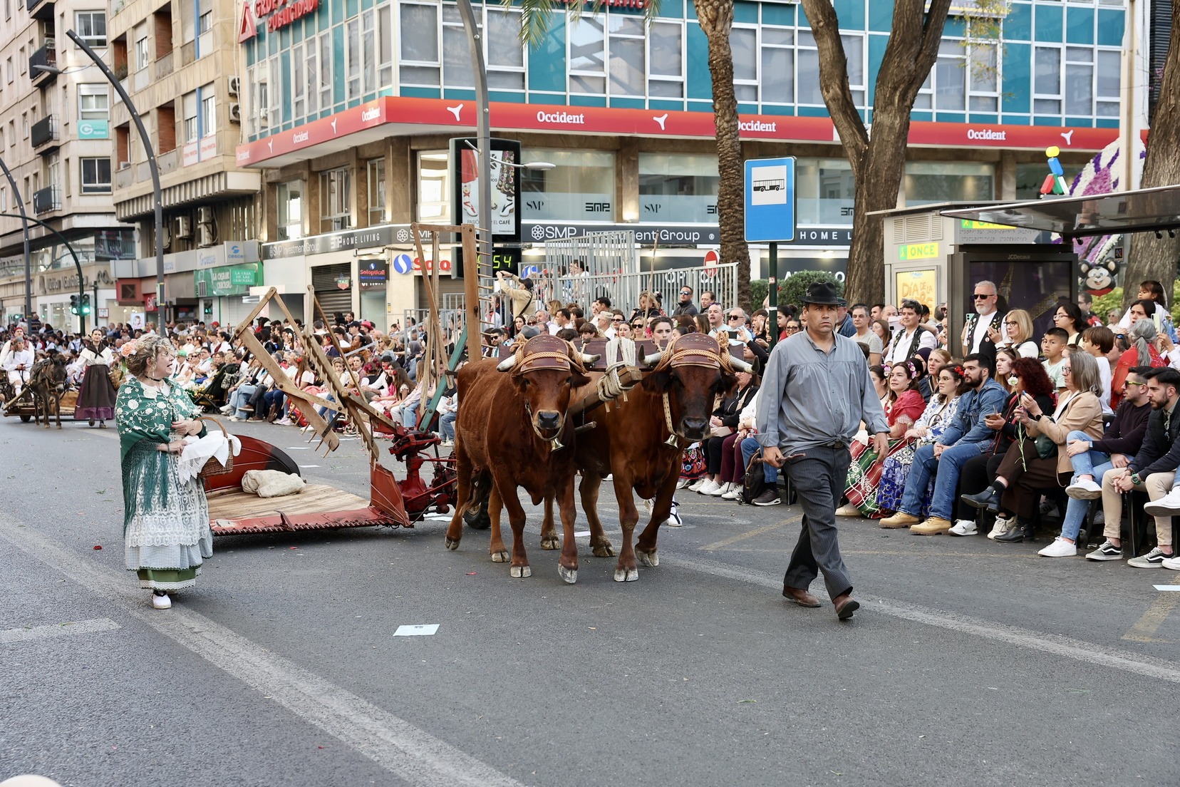 La apertura del desfile ha corrido a cargo de la Unidad de Música del Mando Aéreo vinculada a la Academia General del Aire y del Espacio. A continuación, bandas de música, gigantes y cabezudos, grupos de danzas y todas las carrozas que, como cada año, han llenado las calles de la ciudad de folklore, cultura y tradición, mostrando escenas cotidianas de la huerta y sus oficios típicos.