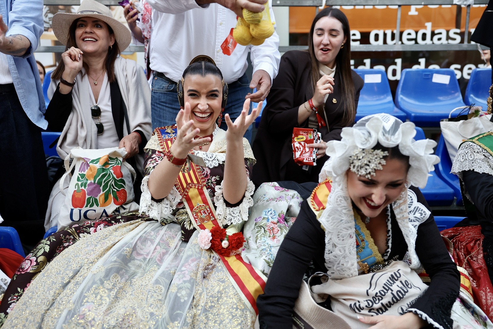 Murcia continúa con las celebraciones de sus Fiestas de la Primavera y nuestras Falleras Mayores de Valencia, Carmen Prades y Marta Mercader, siguen disfrutando de ellas y acompañando a sus Reinas, Ángela Muñoz y Leonor Antón.