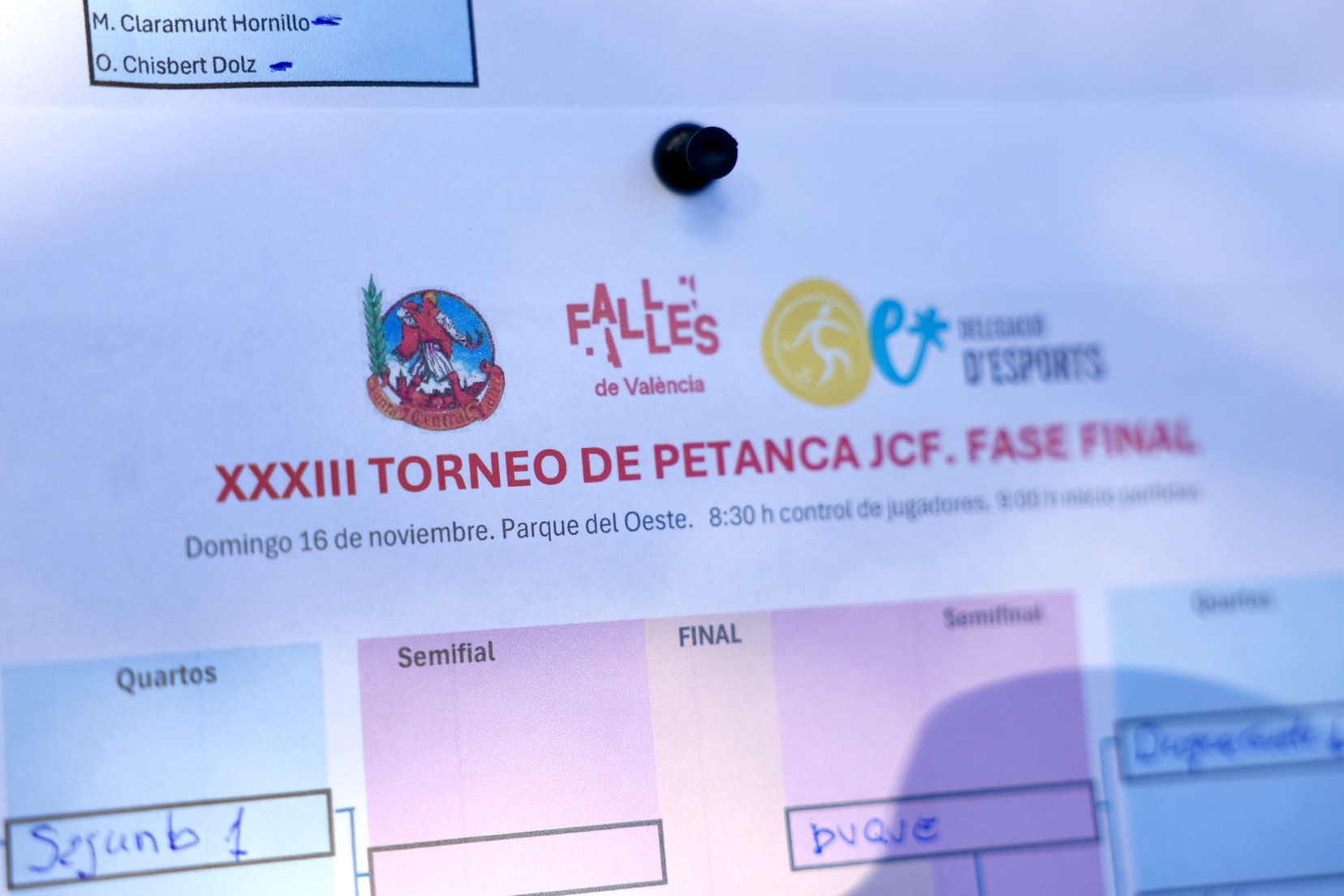 La fase final del XXXIII Torneo de Petanca de JCF se ha celebrado este domingo en el Parque del Oeste, en una jornada que ha combinado deportividad y germanor entre aficionados y equipos participantes. El acto ha contado con la presencia de Carmen Prades, Fallera Mayor de Valencia, acompañada por su Corte de Honor.