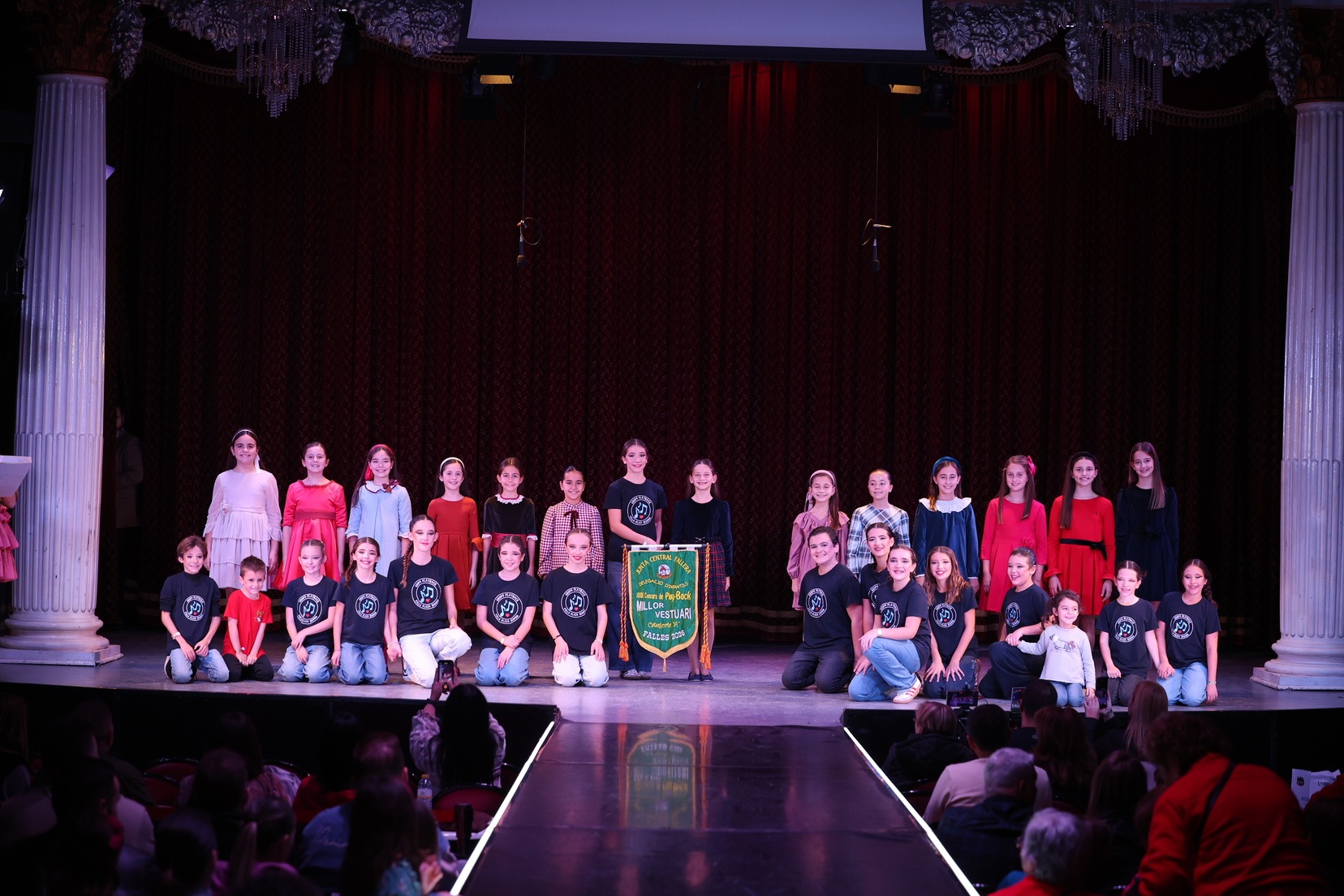 Tras la actuación de las ocho comisiones participantes, hemos podido conocer el veredicto del jurado y la Fallera Mayor Infantil de Valencia, Marta Mercader, acompañada de su Corte de Honor, ha podido recibir a los participantes y hacerles entrega de los “palets”.