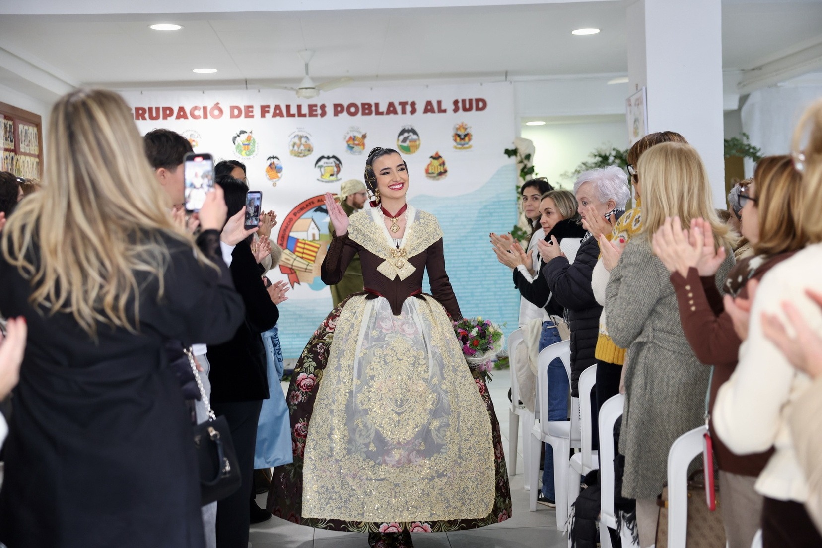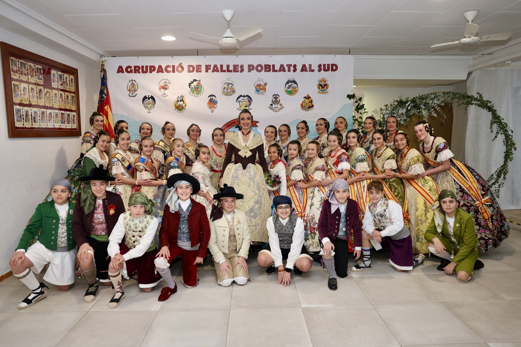 La presentación ha contado con la presencia de la Fallera Mayor de Valencia, acompañada por su Corte de Honor, que ha querido respaldar con su asistencia a las comisiones de Poblats al Sud en esta cita colectiva. El acto ha tenido un significado especial para Anabel Calero, componente de la Corte de Honor y fallera perteneciente a este sector, que ha compartido la jornada con las comisiones de su demarcación.