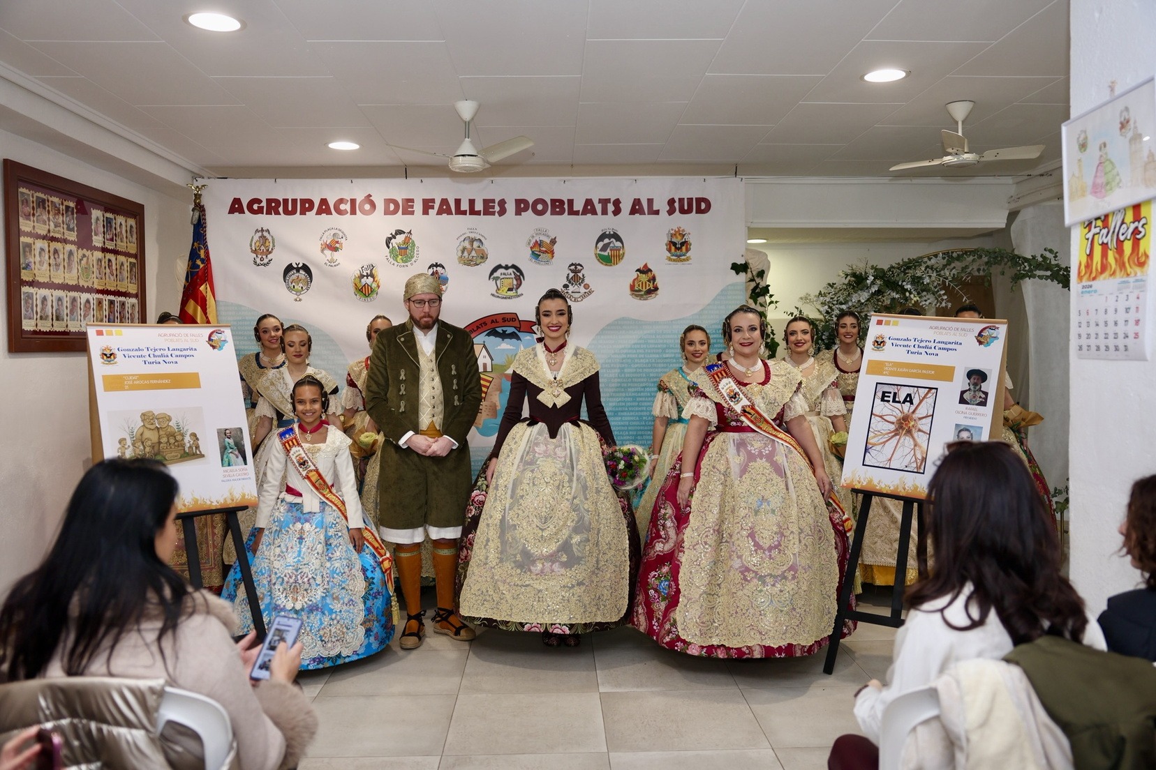 La Agrupación de fallas de Poblats al Sud ha celebrado la presentación de los bocetos de las 13 fallas que conforman el sector, en un acto que ha tenido lugar en Horno de Alcedo, reuniendo a las comisiones que integran esta demarcación fallera.
