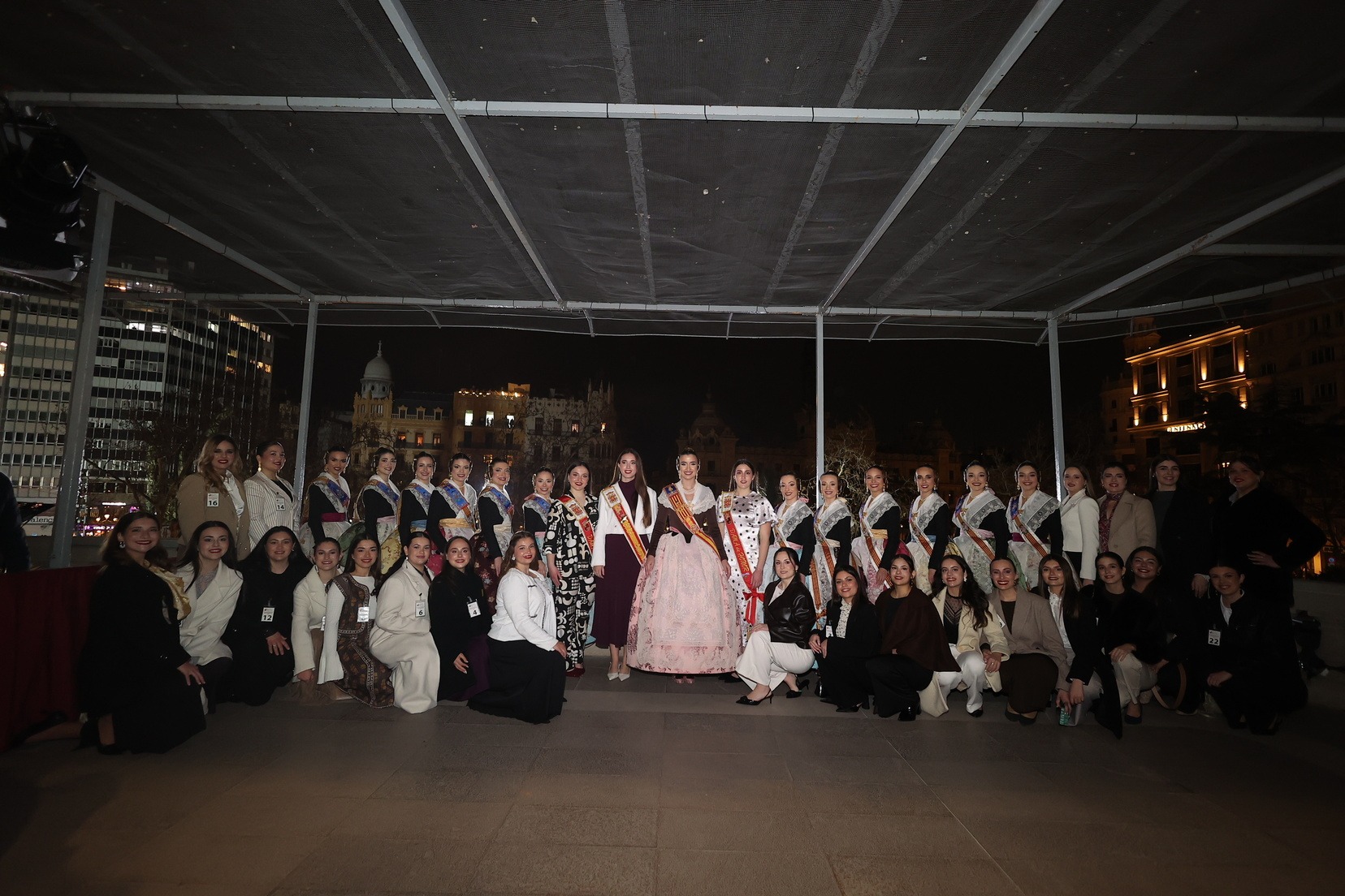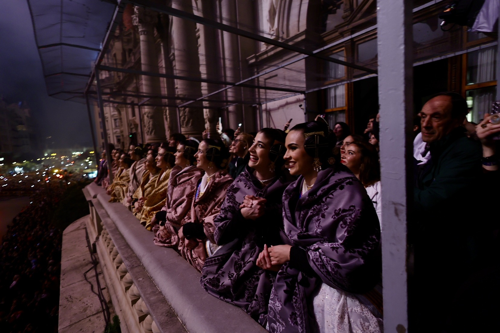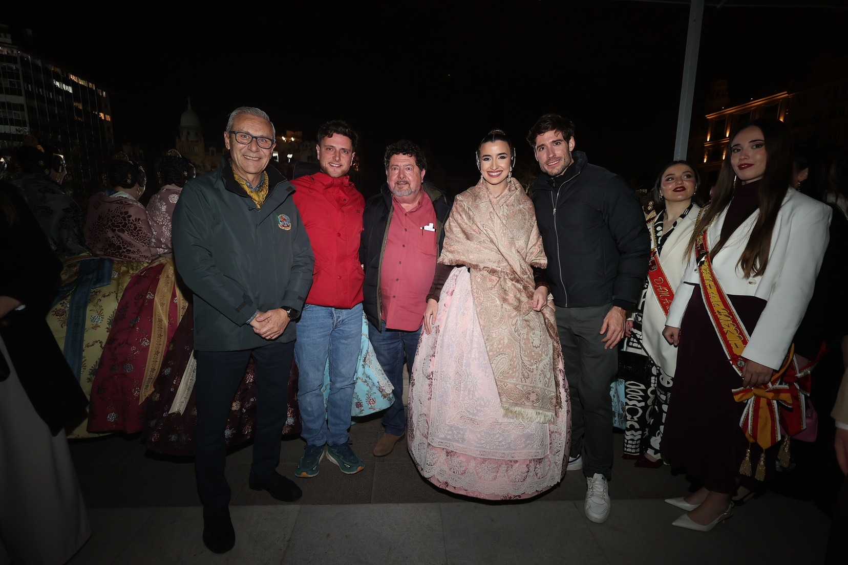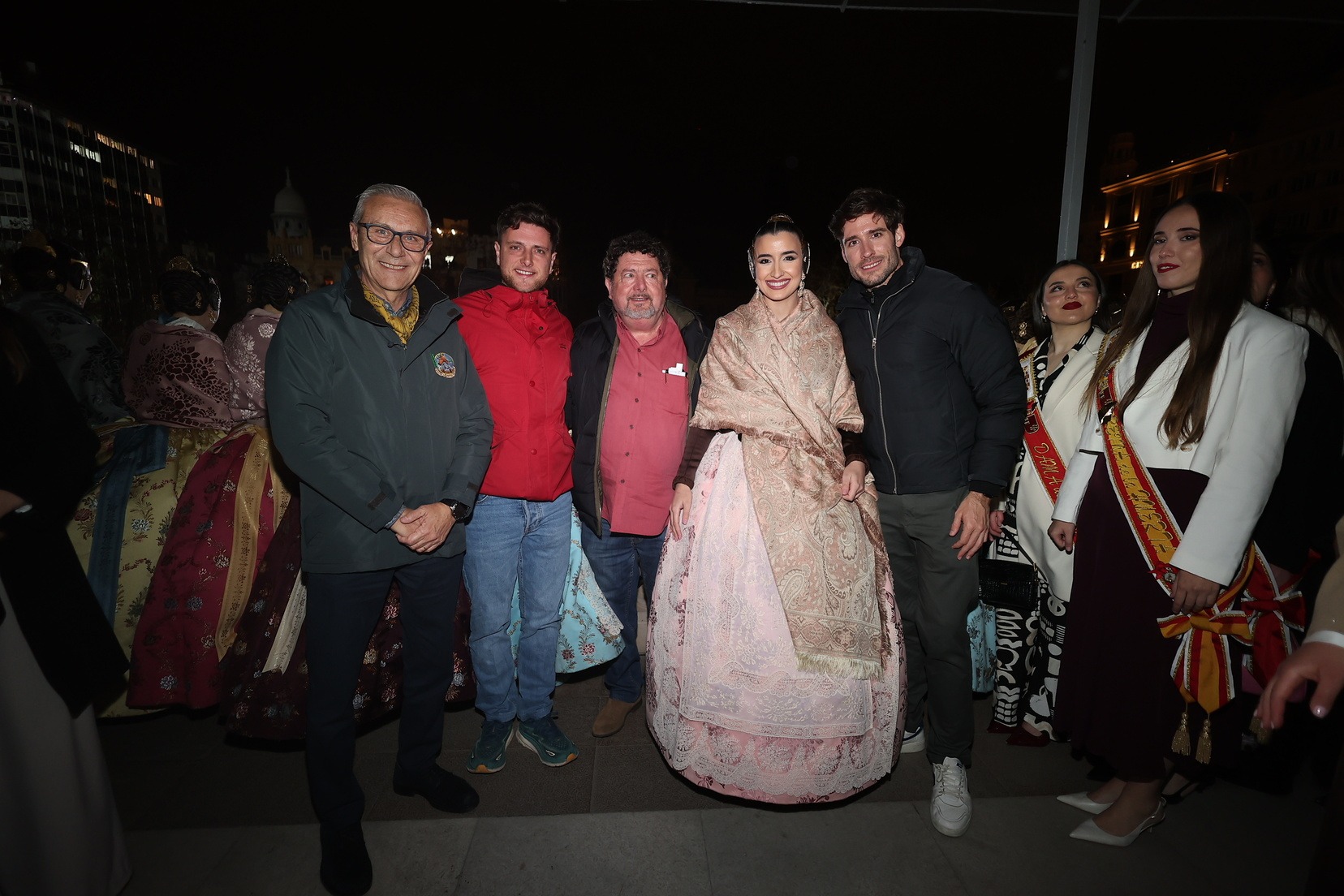 La Fallera Mayor de Valencia, Carmen Prades, acompañada de su Corte de Honor, ha sido la encargada de marcar desde el Balcón del Ayuntamiento el inicio de este primer disparo nocturno que ha hecho vibrar a la Catedral de la Pólvora.