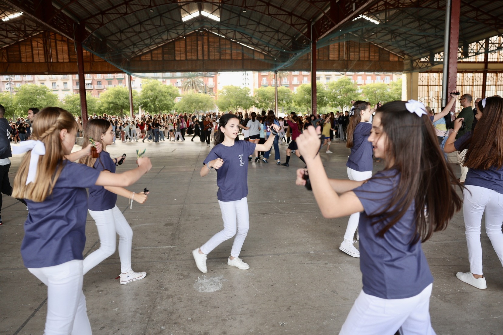 Todos los cuadros que participarán en la Dansà se han dado cita este miércoles de mayo en el Tinglado nº2 del Puerto de Valencia, donde se ha celebrado el ensayo general en el que se han perfilado los últimos detalles y han podido ensayar todos juntos.  A esta convocatoria tan especial  también han asistido las Falleras Mayores de Valencia, Berta Peiró y Lucía García, y sus Cortes de Honor.
