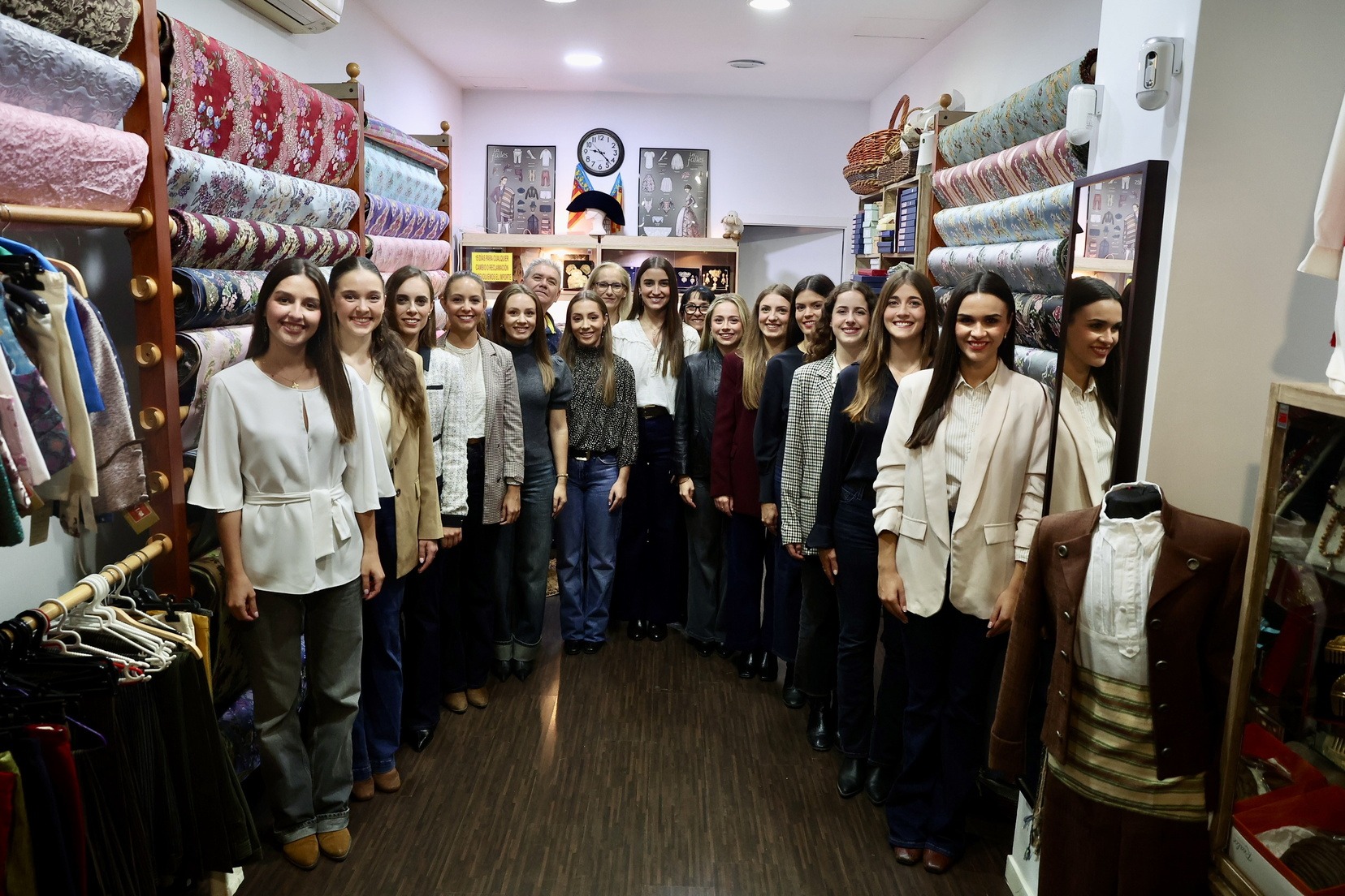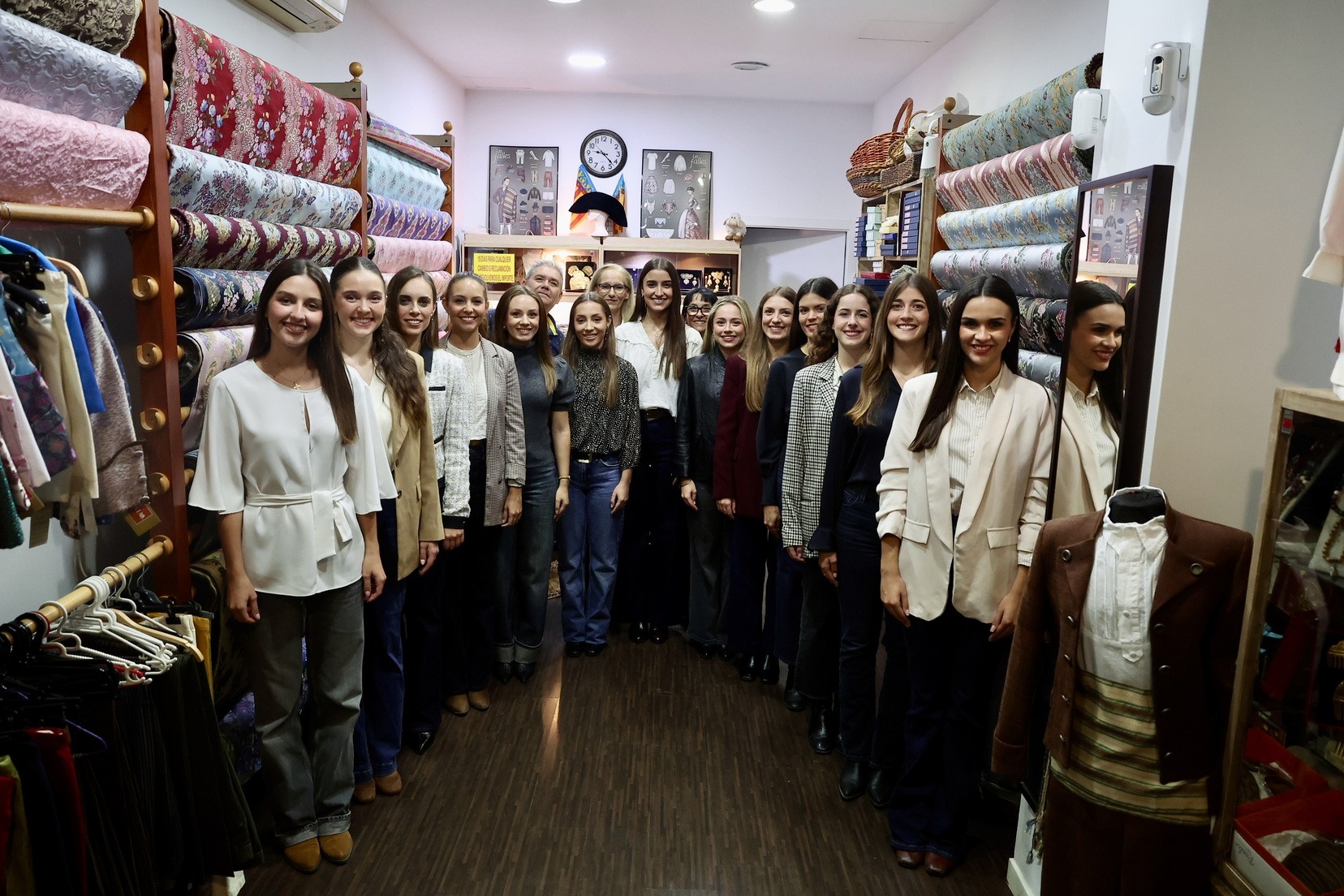 Las Falleras Mayores de Valencia, Carmen Prades y Marta Mercader, acompañadas de sus Cortes de Honor, acuden estos días a los talleres y establecimientos de los indumentaristas oficiales para la toma de medidas de cara a la creación de las distintas prendas y complementos que lucirán durante todo el año.