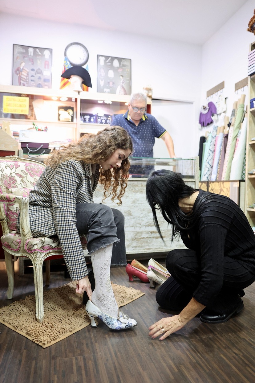Carmen y Marta, y las 24 componentes de las Cortes de Honor, muy ilusionadas de ir conociendo cada detalle de la indumentaria que de su reinado, contarán con la comodidad de los zapatos de esta empresa valenciana que por segundo año consecutivo se encarga de la realización de los zapatos de nuestras máximas representantes.