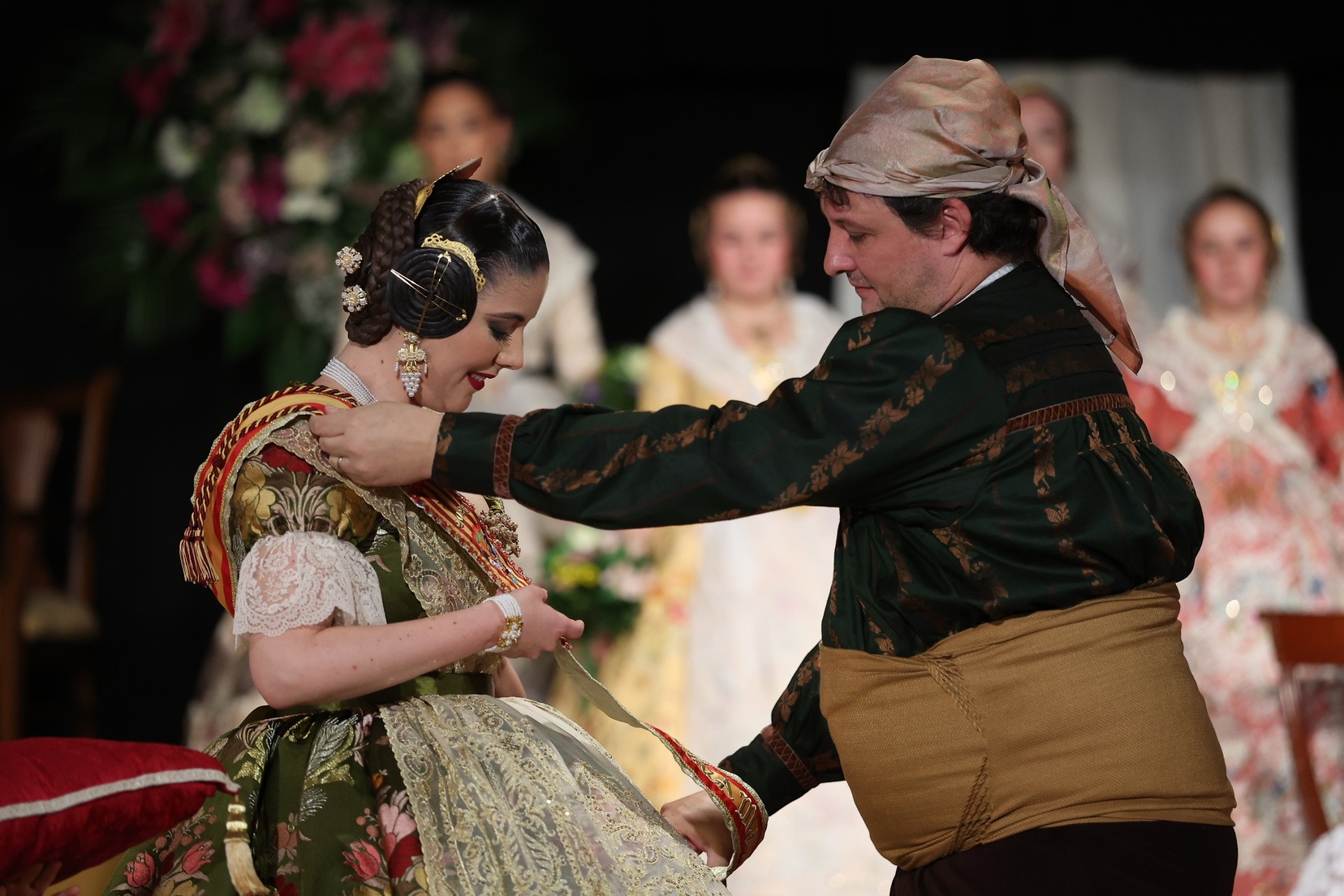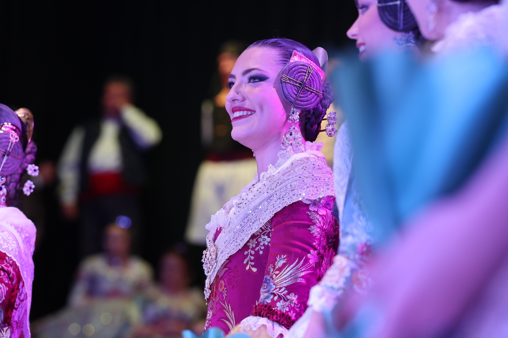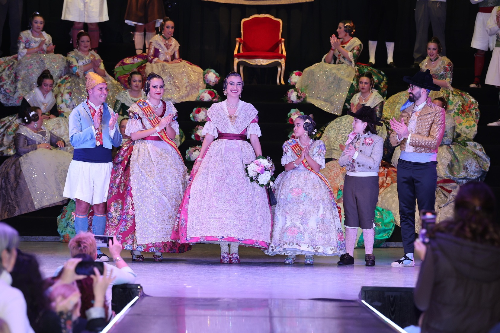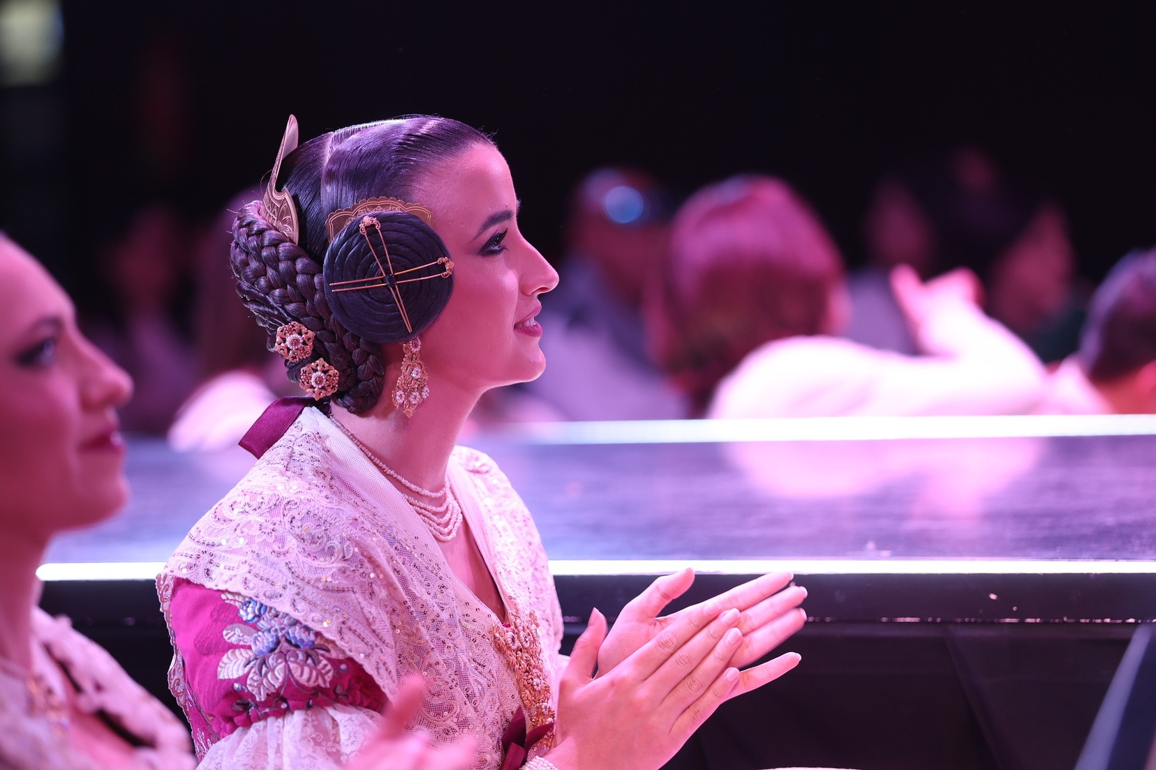 En primer lugar, la falla Virgen de la Fuensanta contó con la presencia de la Fallera Mayor de Valencia y su Corte de Honor para disfrutar de su exaltación. Un acto muy esperado para Zoe Molino, componente de la Corte de Honor de la FMV, que lo vivió con especial ilusión al reencontrarse con su familia fallera.