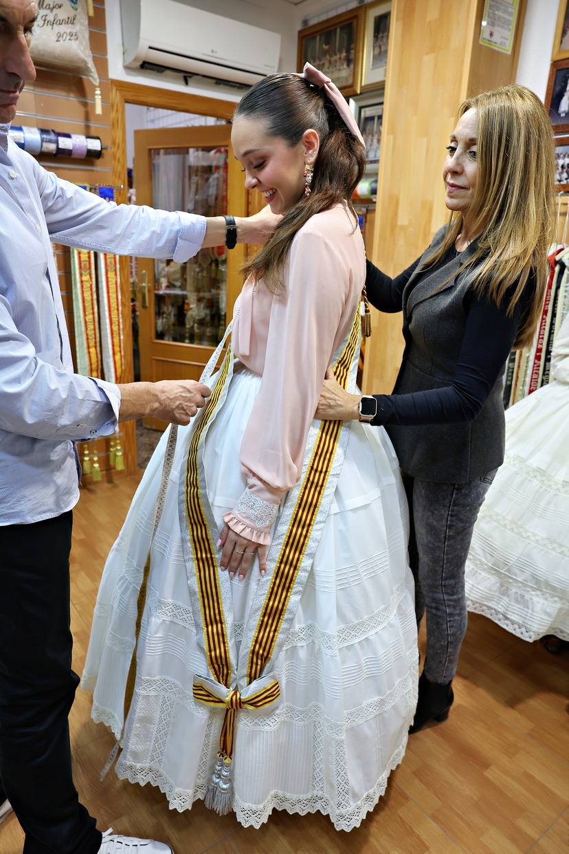Continuen les preses de mides de les nostres màximes representants en els tallers i establiments dels distints indumentaristes oficials 2026, i esta vesprada ha sigut el torn d’un dels complements més especials del regnat: les bandes.
