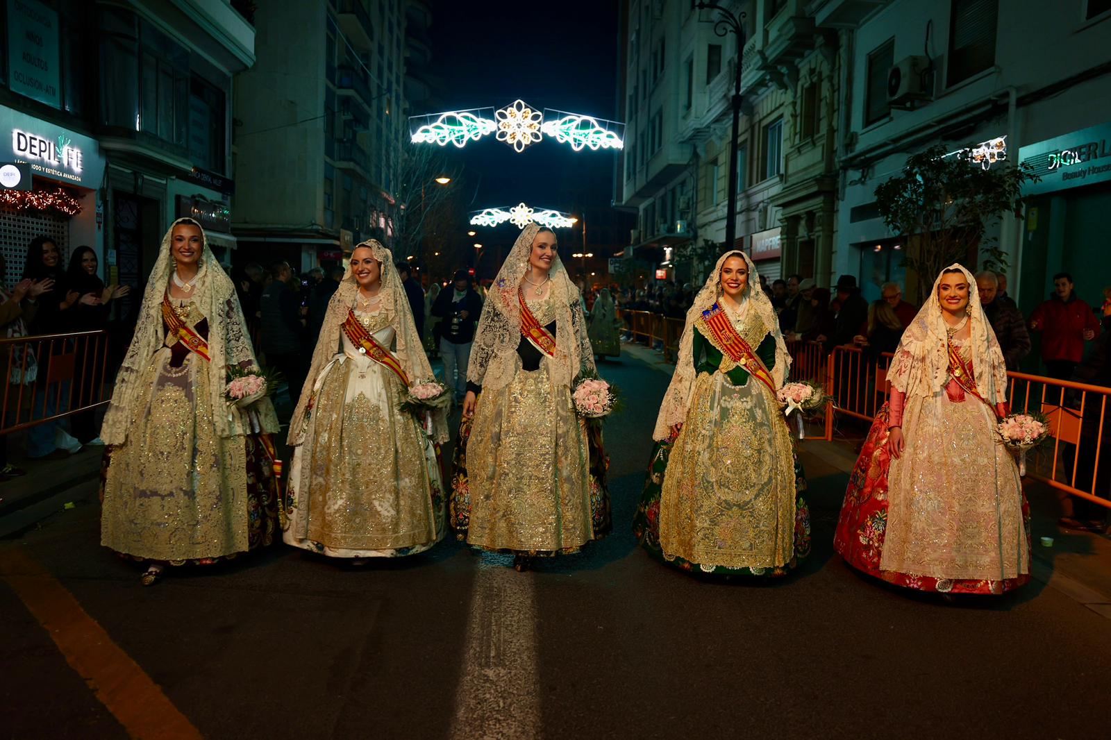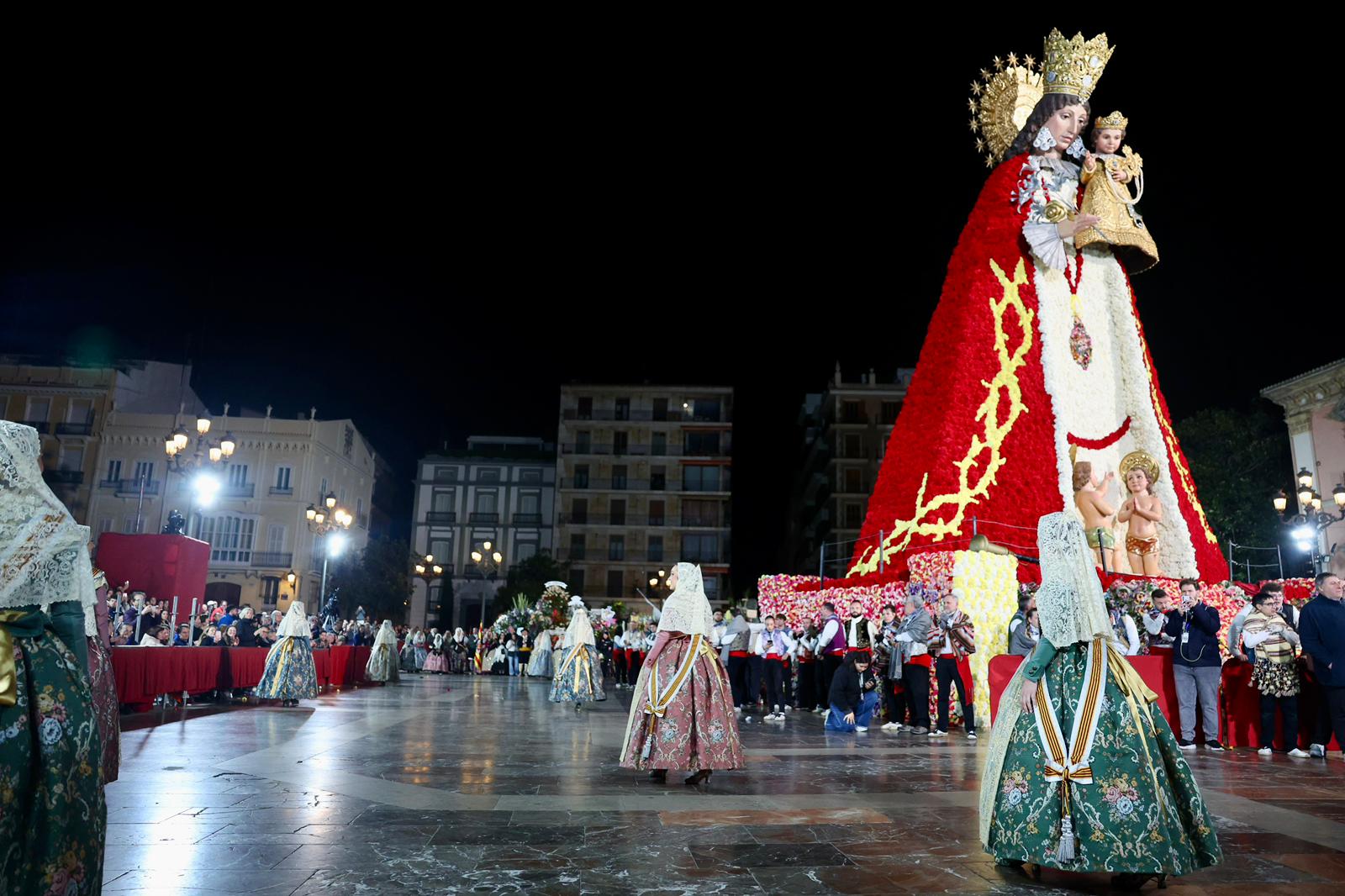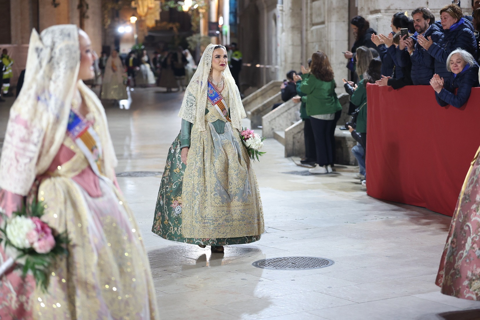 Amb els seus vestits oficials i visiblement emocionades, han recorregut el centre de la ciutat entre aplaudiments i mostres d’estimadel públic fins a arribar a la Plaça de la Mare de Déu, on han depositat els seus rams de flors a l’altar de la Basílica.