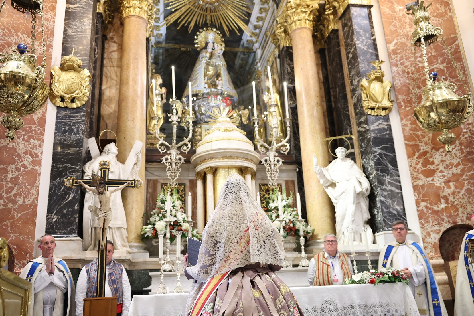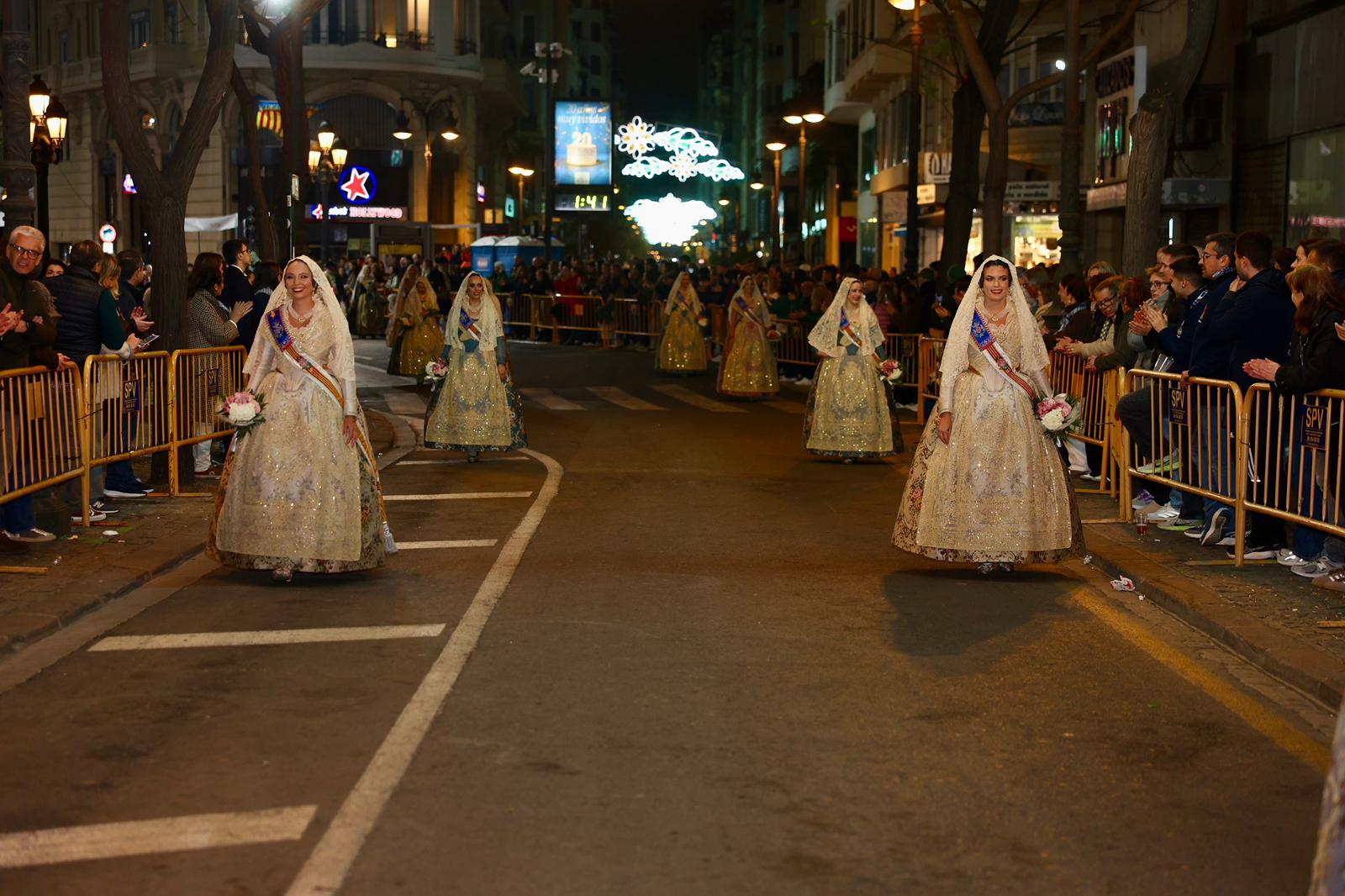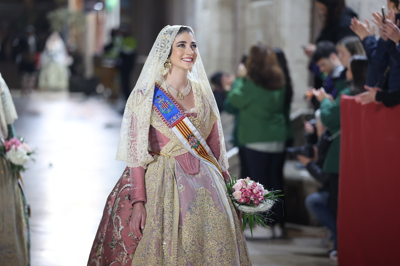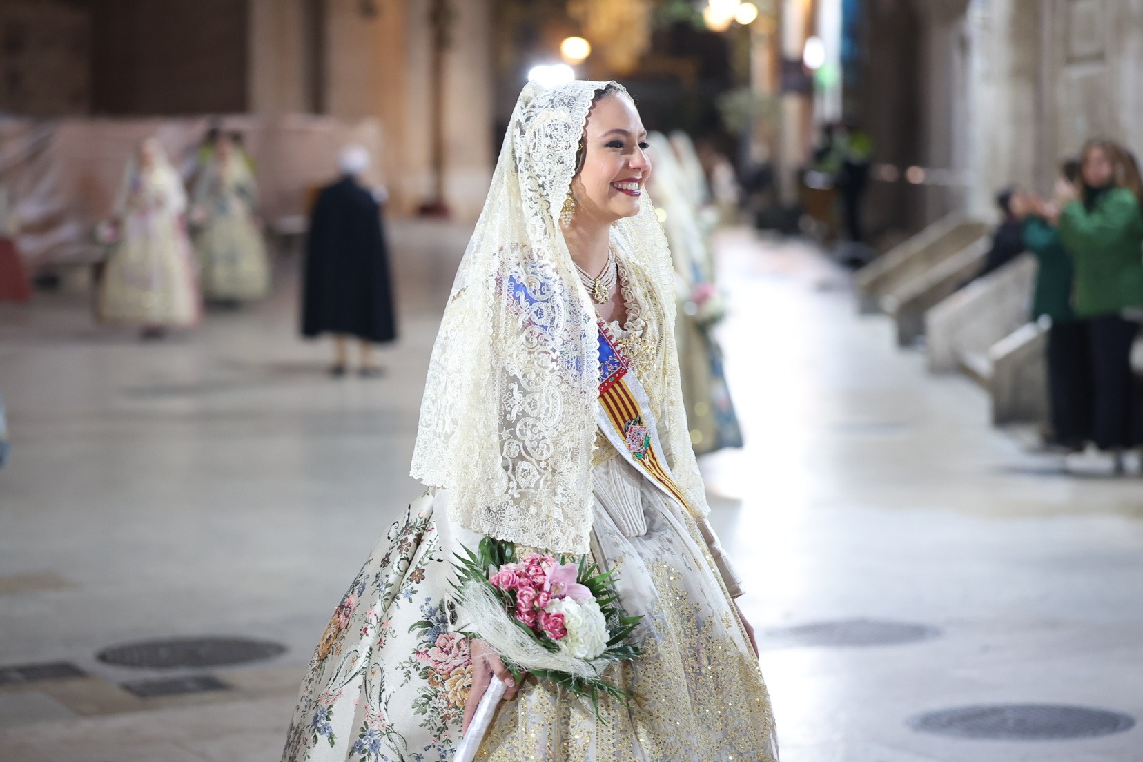Amb els seus vestits oficials i visiblement emocionades, han recorregut el centre de la ciutat entre aplaudiments i mostres d’estimadel públic fins a arribar a la Plaça de la Mare de Déu, on han depositat els seus rams de flors a l’altar de la Basílica.