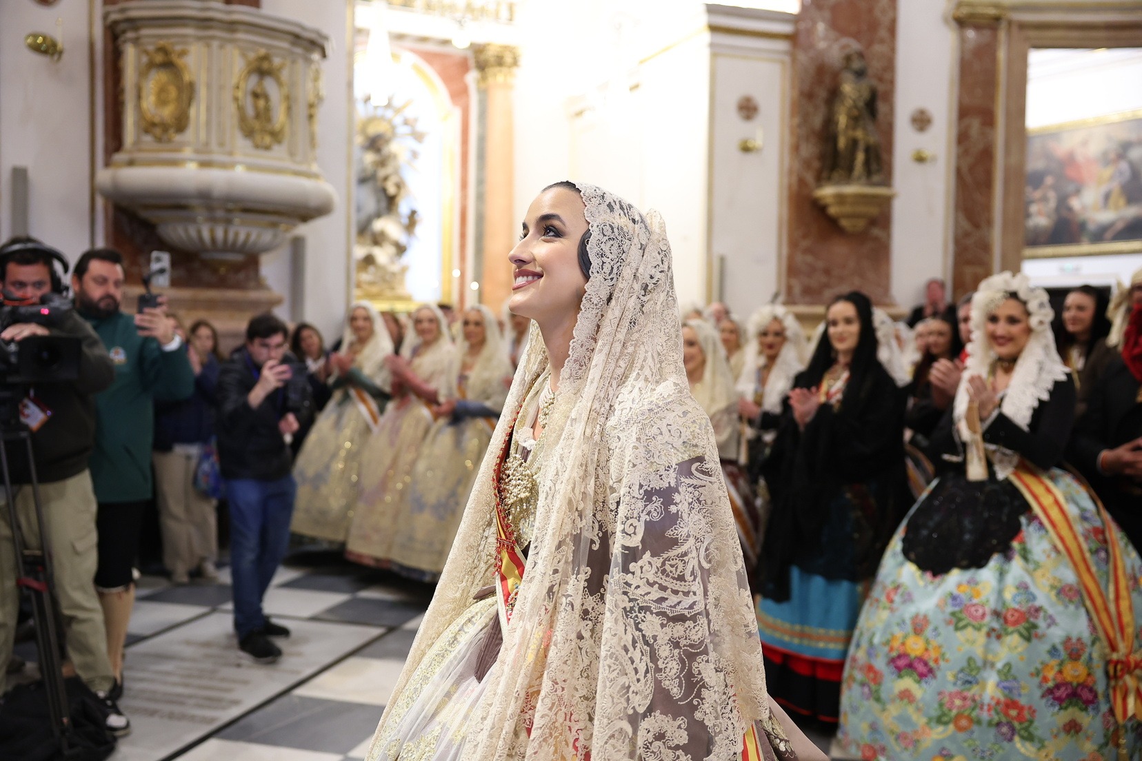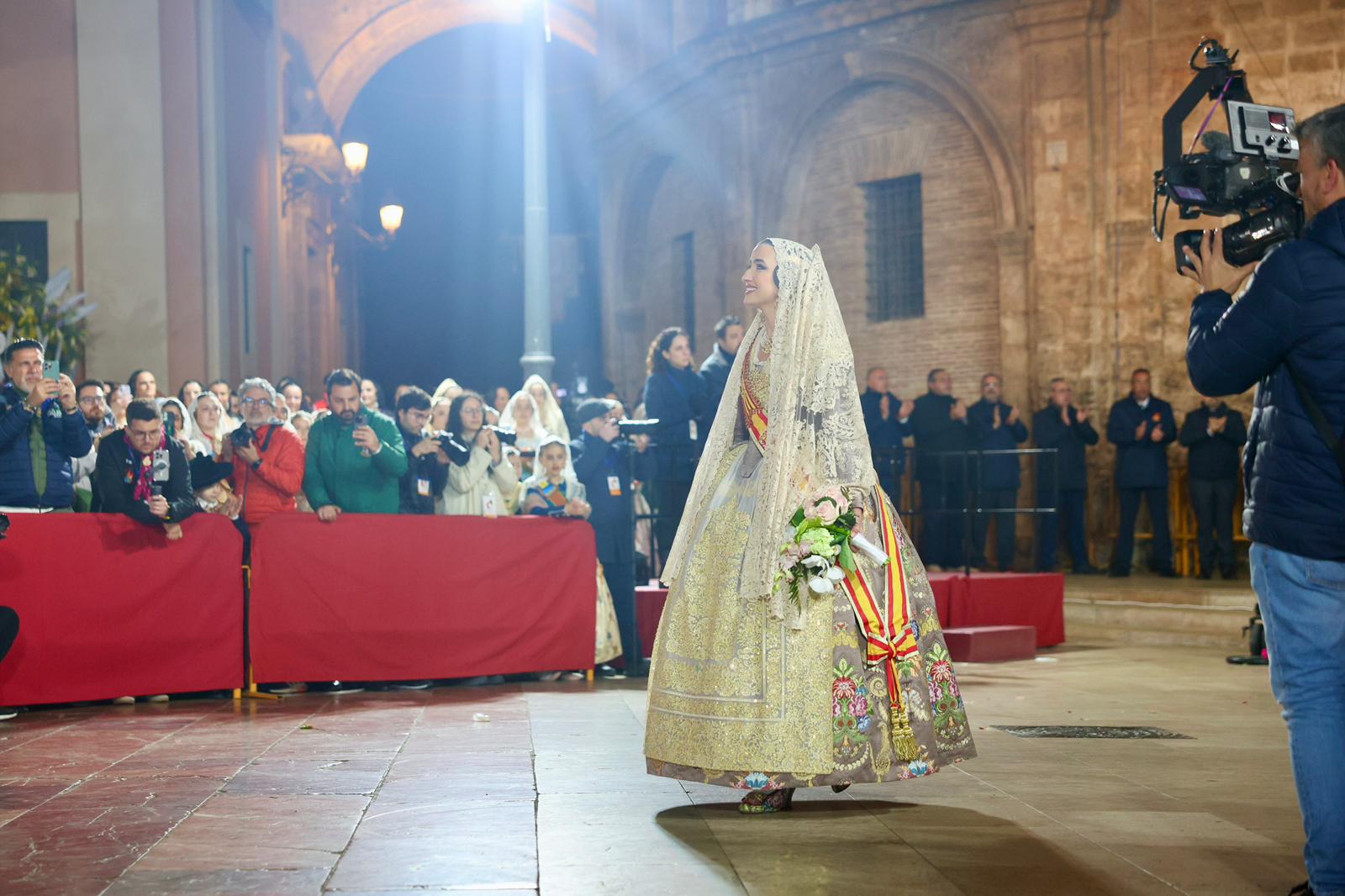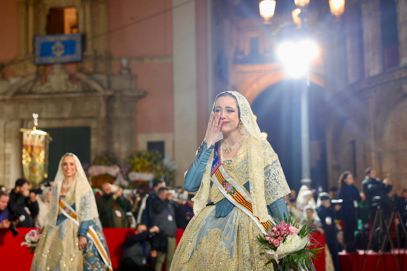 La Fallera Major de València, Carmen Prades Gil, al costat de la seua Cort d’Honor, ha protagonitzat este 18 de març un dels moments més emotius de les Falles de València durant la tradicional Ofrena a la Mare de Déu.