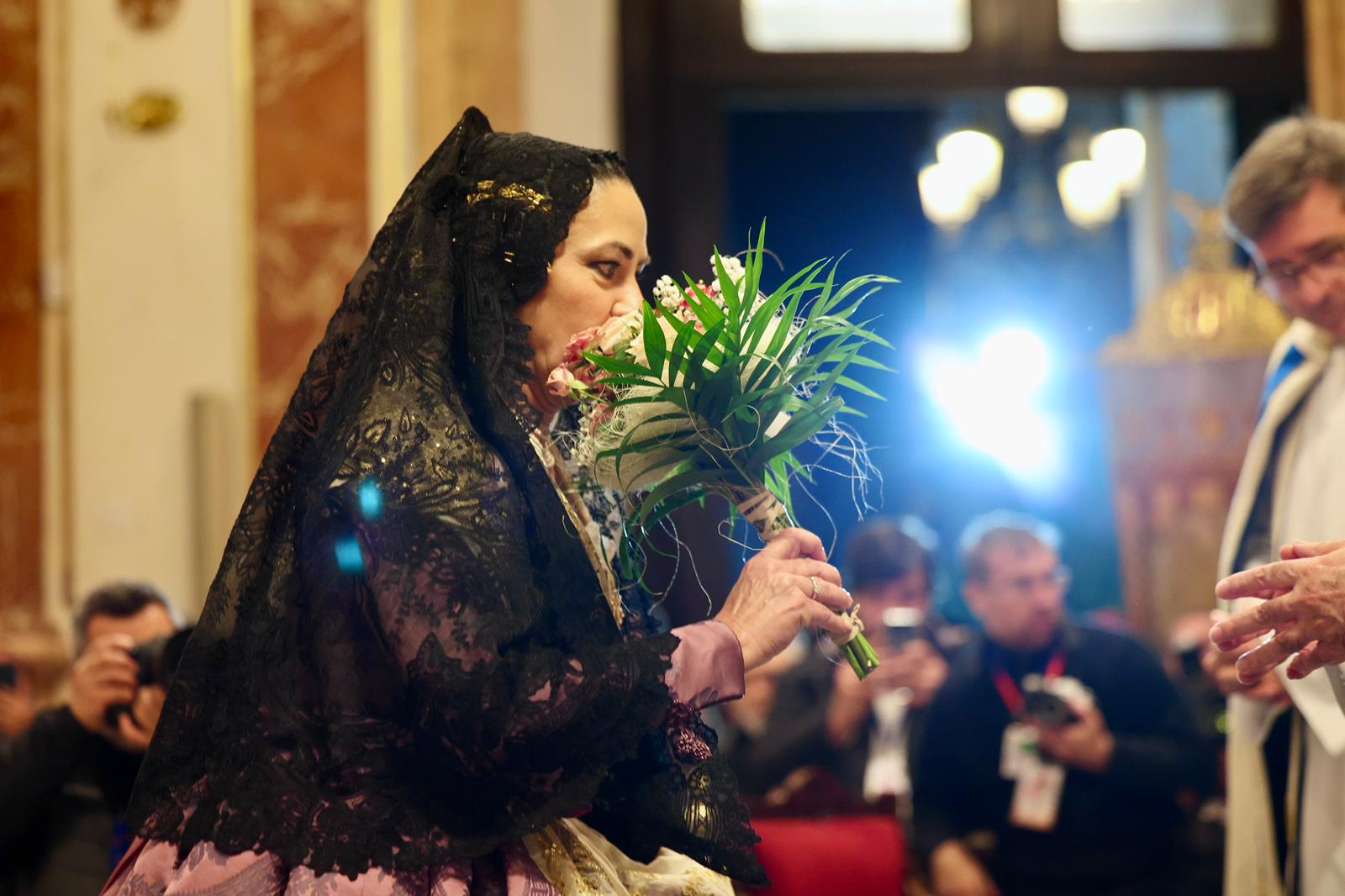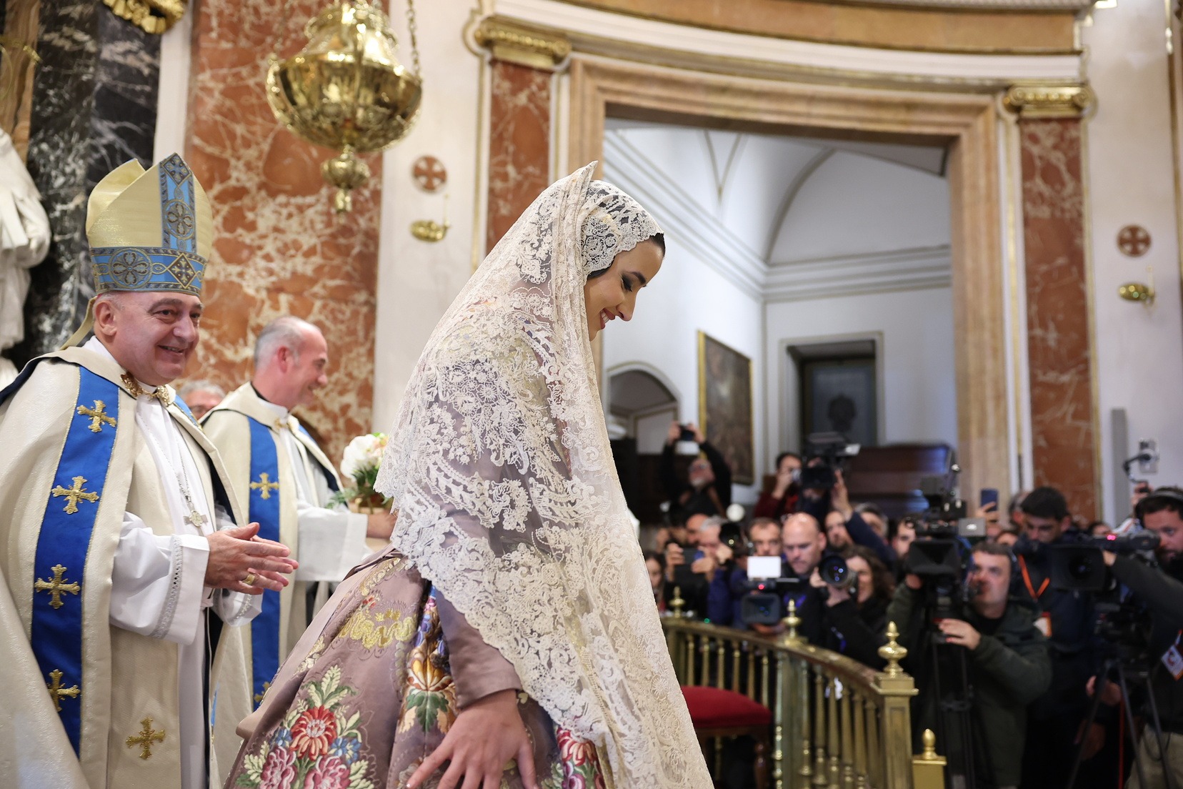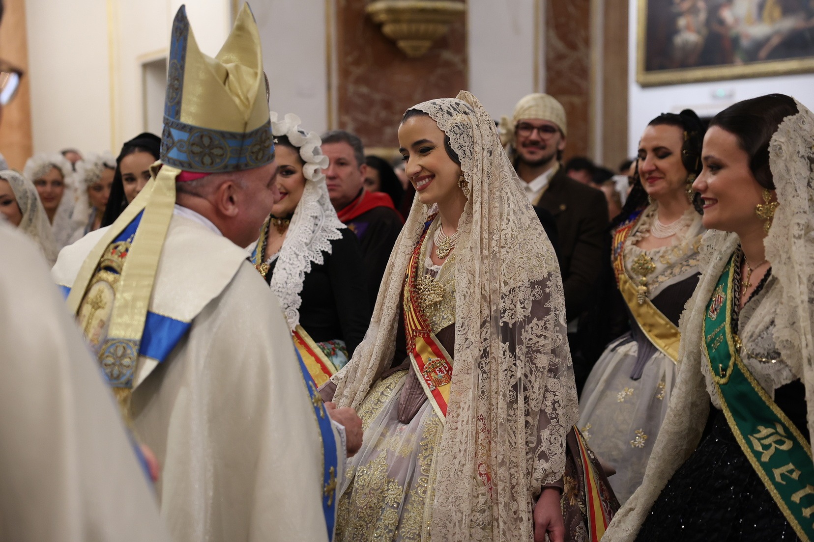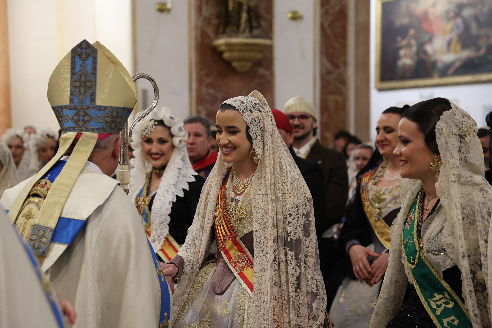 La Fallera Major de València, Carmen Prades Gil, al costat de la seua Cort d’Honor, ha protagonitzat este 18 de març un dels moments més emotius de les Falles de València durant la tradicional Ofrena a la Mare de Déu.
